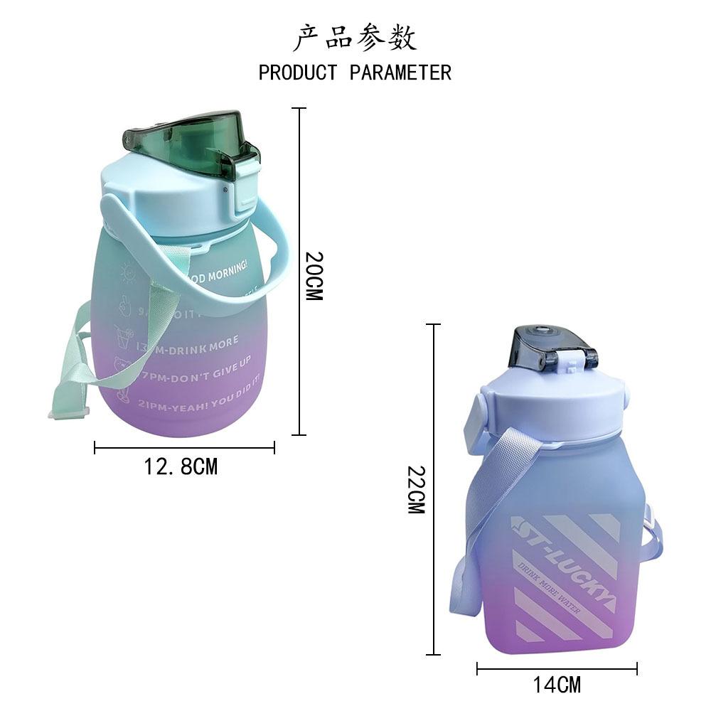 Bolsa de Fitness para Hogar y Exterior Botella de Agua de Plástico con Degradado Bolsa Escarchada Botella de Agua Deportiva Gran Capacidad Tapa Pop-Up Pajita