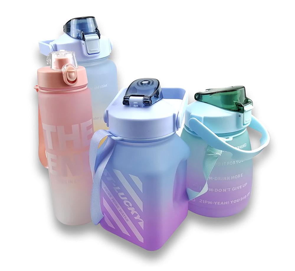 Compra Bolsa de Fitness para Hogar y Exterior Botella de Agua de Plástico con Degradado Bolsa Escarchada Botella de Agua Deportiva Gran Capacidad Tapa Pop-Up Pajita al por mayor en Joom.pro