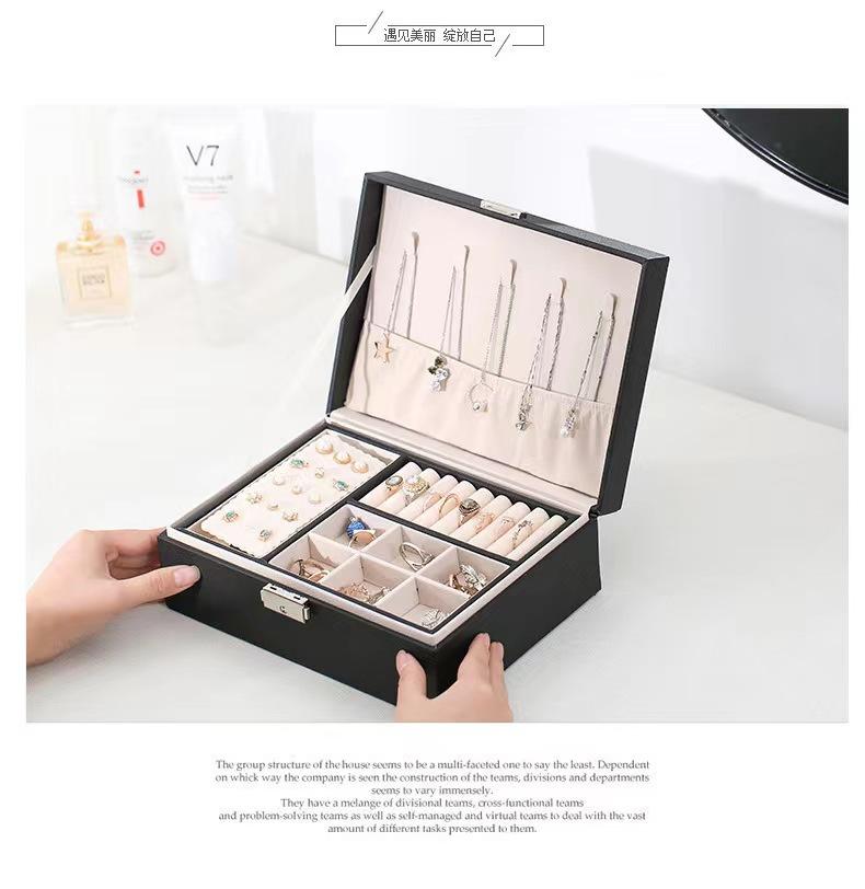 Caja de almacenamiento para joyas con anillo de bloqueo, caja de almacenamiento para joyas, caja multifuncional para aretes, collares y joyas.