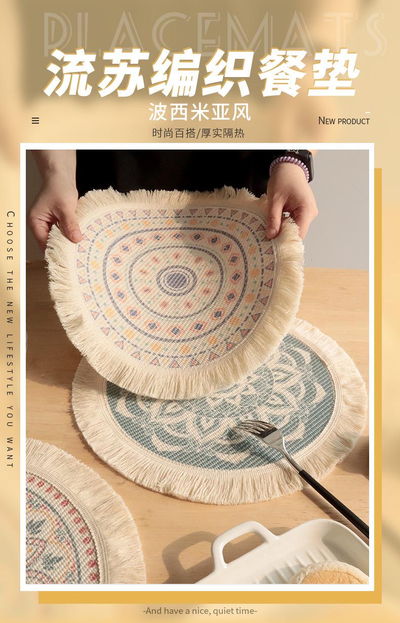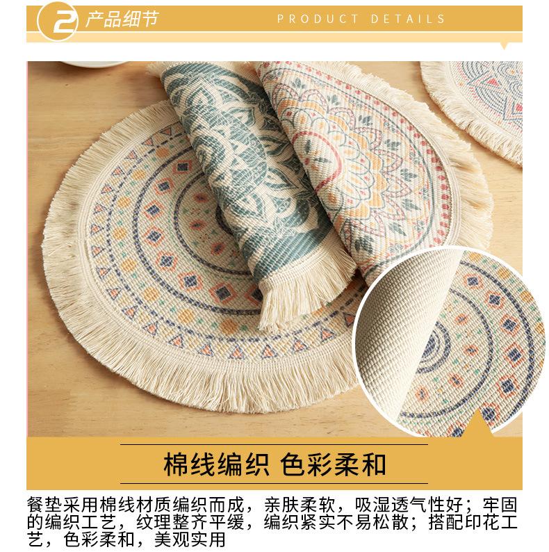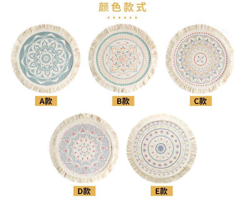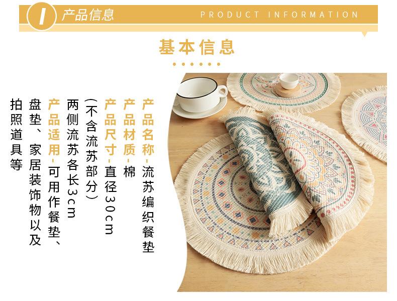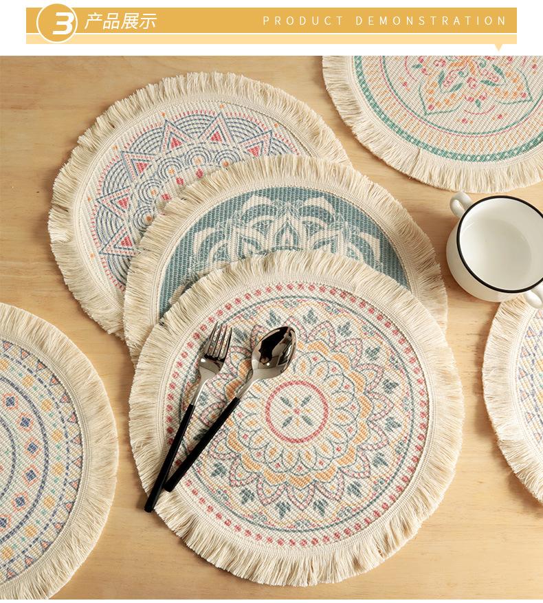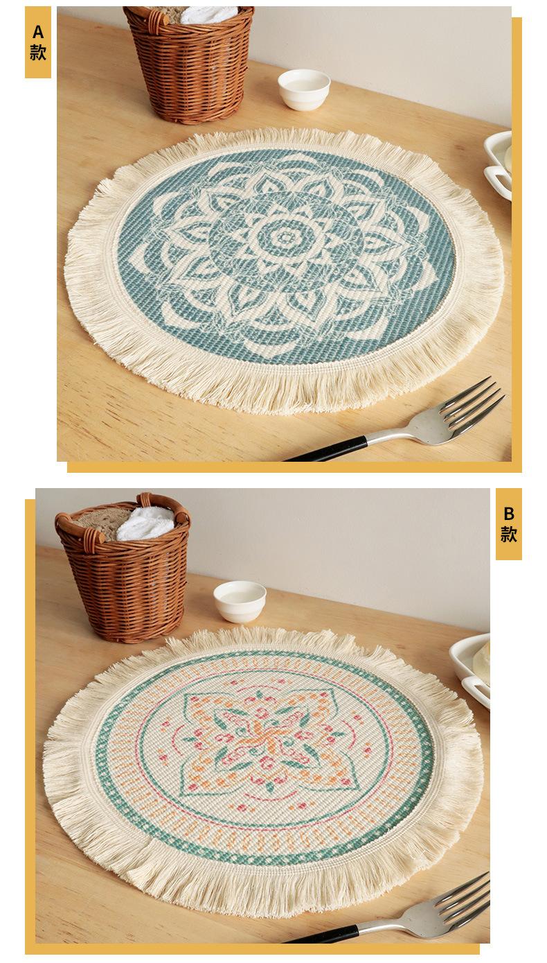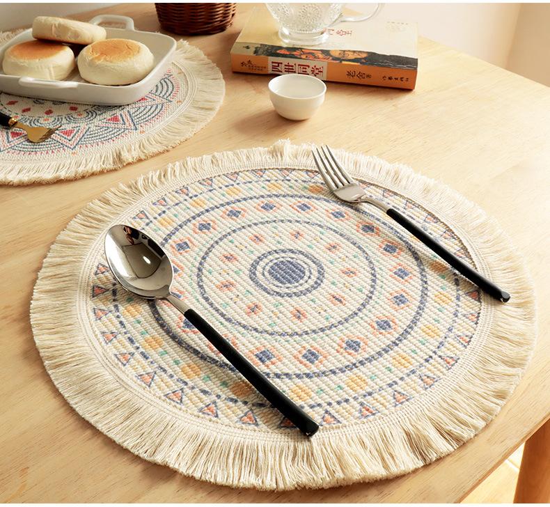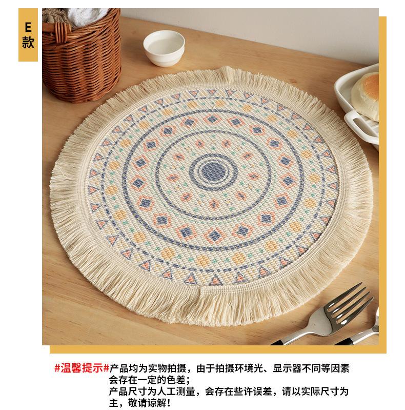 Mantel Individual Tejido Estilo Nórdico con Borlas Estampadas Tapete Aislamiento Térmico Tapete Decorativo para Hogar Cocina Posavasos para Mesa de Comedor Fondo para Fotos