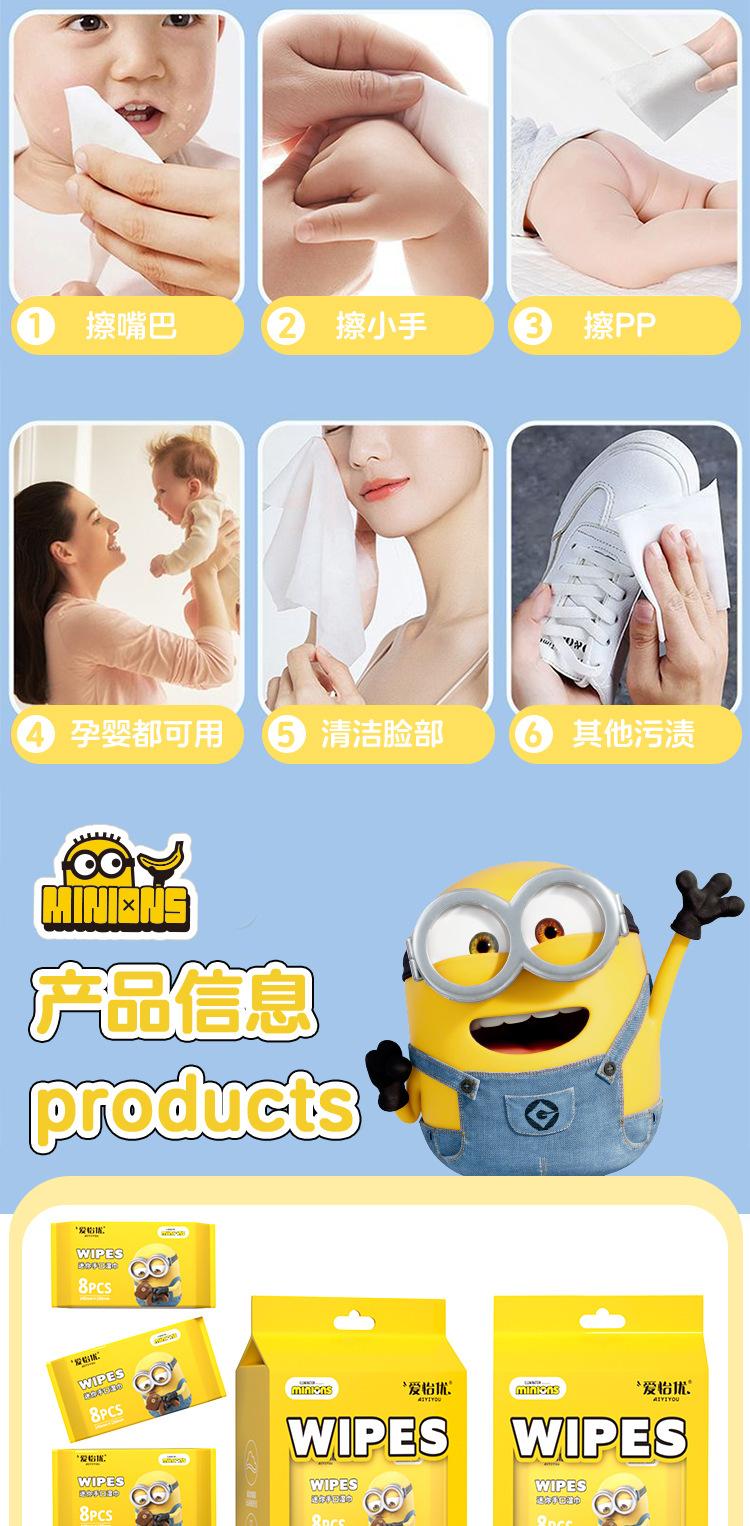 Toallitas Húmedas Paquete Pequeño Mini Extraíble para Bebé Mano y Boca Tipo Desechable a Toallitas Húmedas Portátil Limpieza Independiente Venta al por Mayor Especial