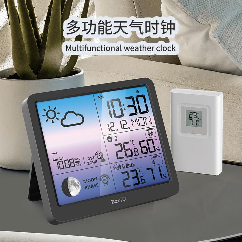 Reloj radio reloj con pantalla LCD a color transfronterizo, pronóstico del tiempo, multifunción, reloj electrónico para estudiantes, calendario perpetuo, reloj despertador meteorológico