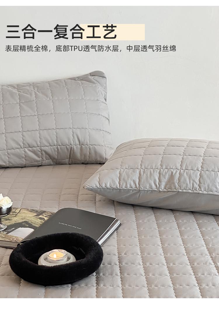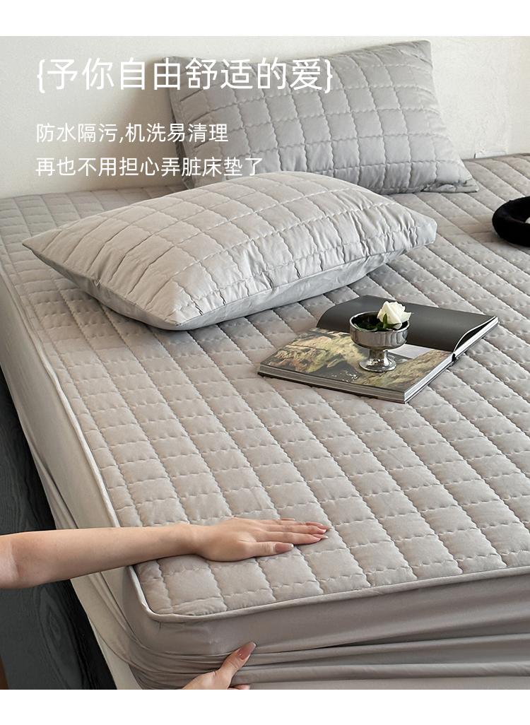 Sábana Ajustable Acolchada de Algodón Impermeable y a Prueba de Orina Gris Blanco Cuidado Lavable a Máquina Lavable a Máquina Cubrecama de Algodón Espesado Cubierta Protectora