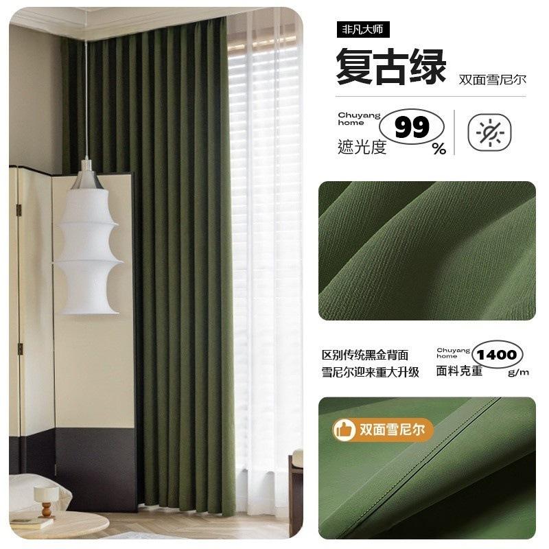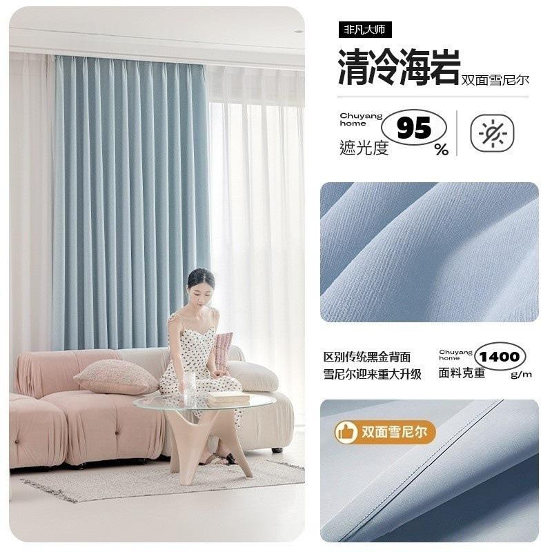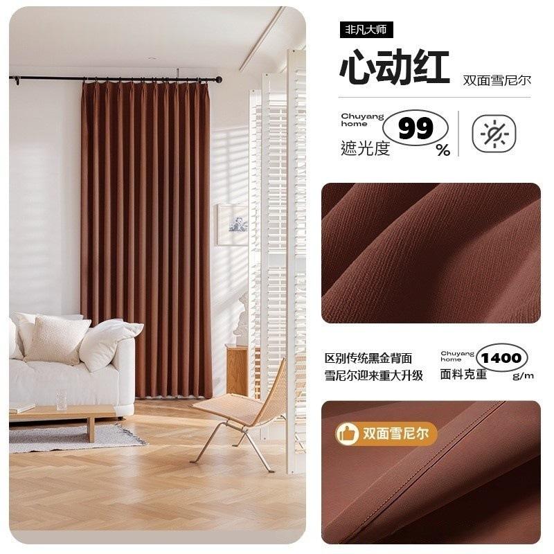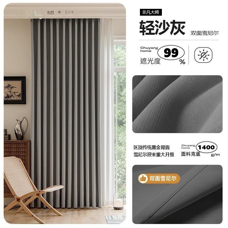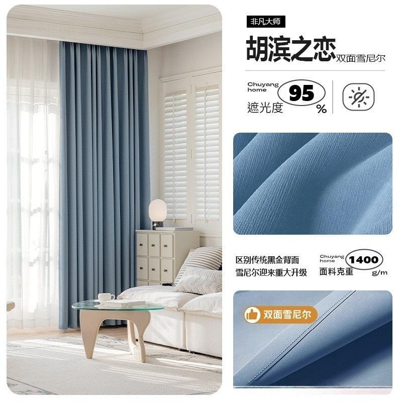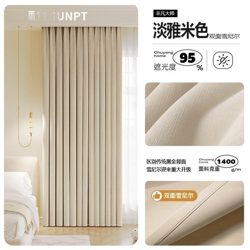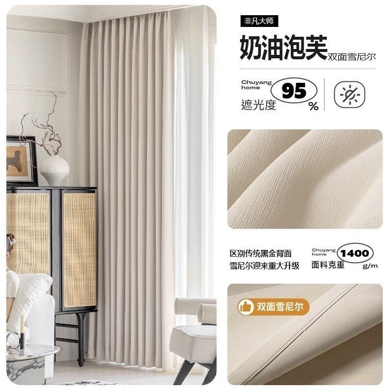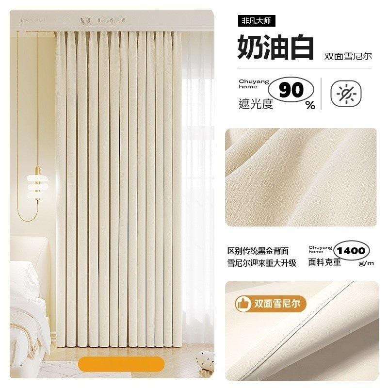 2025 nueva cortina de chenilla de doble cara del mismo color, sombreado para dormitorio, cachemira completa color crema, viento, sala de estar de alto sentido