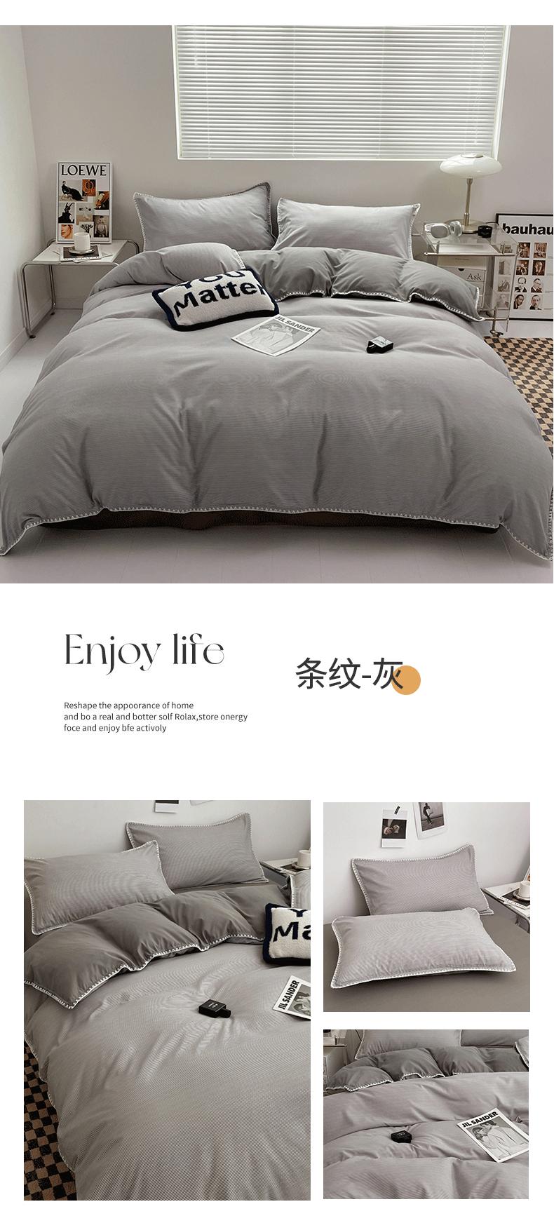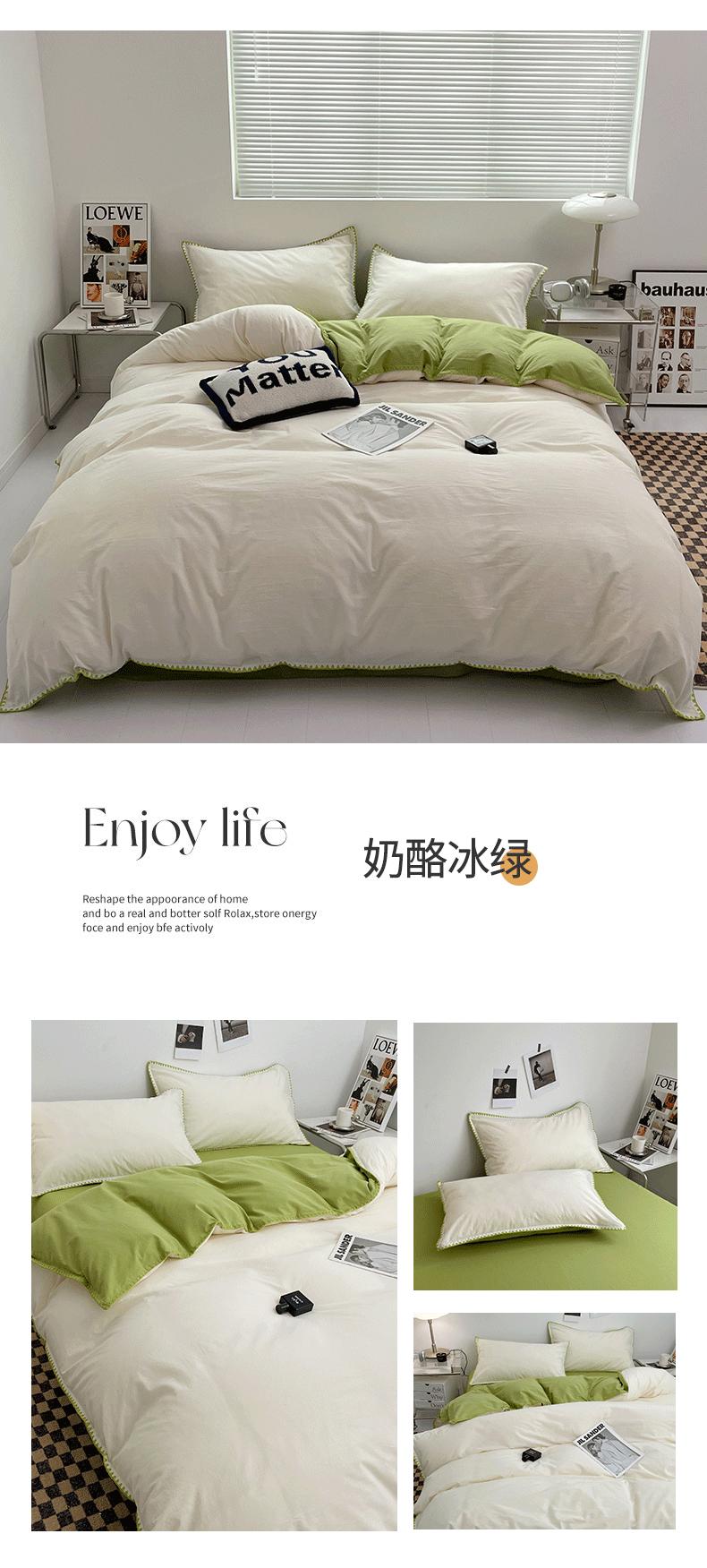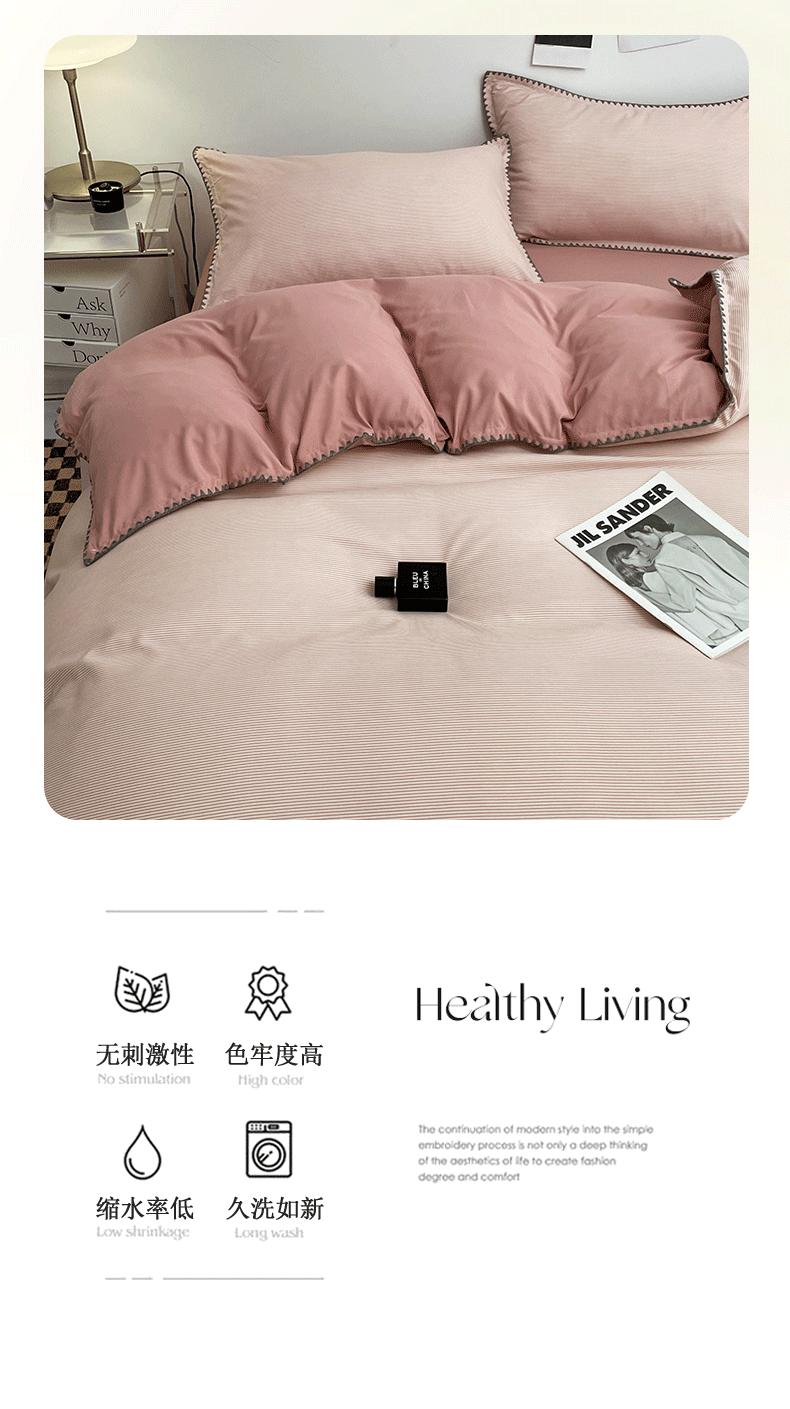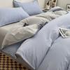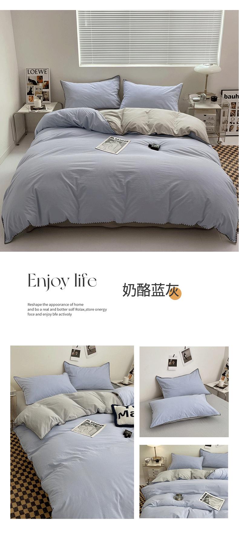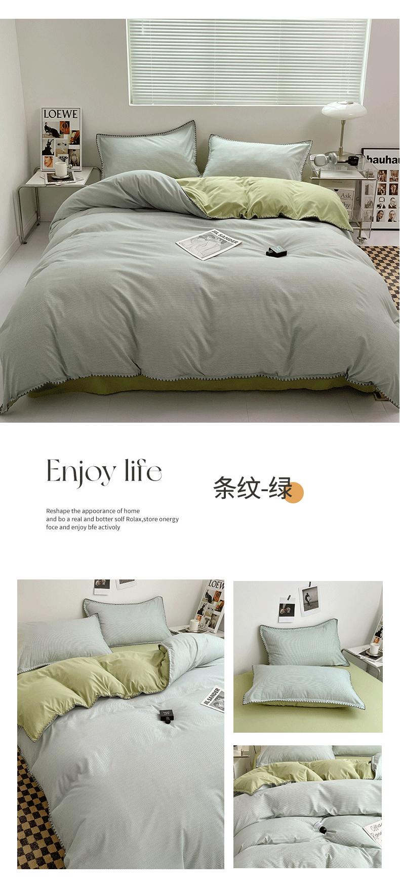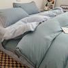 Juego de Cama de Algodón Lavado de Cuatro Piezas con Doble Raya Estilo Ins, Sábana Encimera Cepillada de Color Sólido, Funda de Edredón, Sábana Ajustable, Juego de Tres Piezas para Estudiante