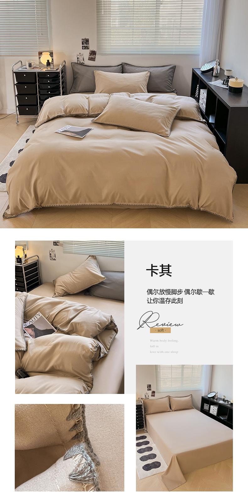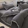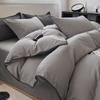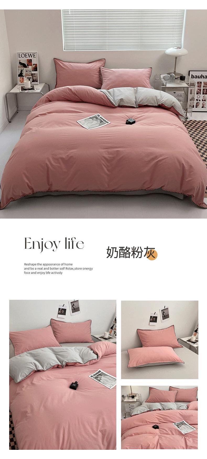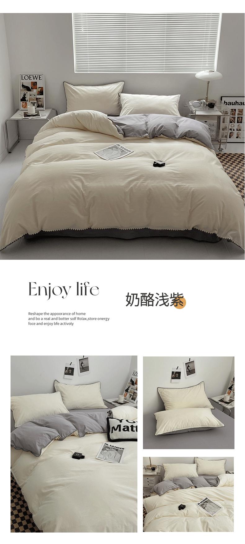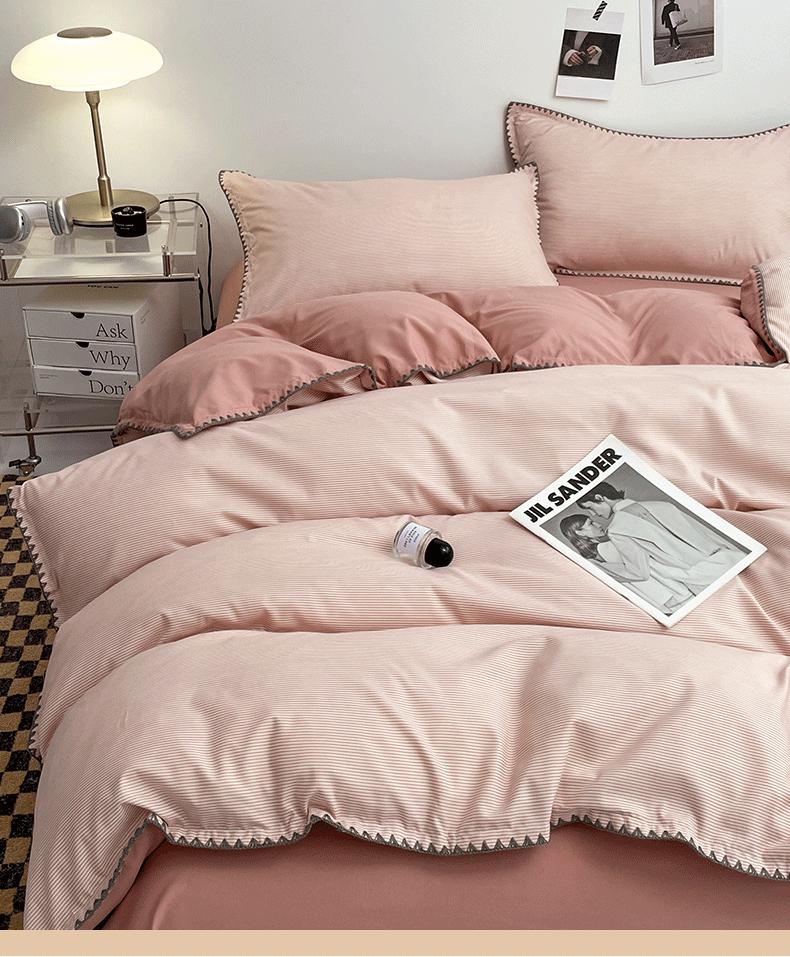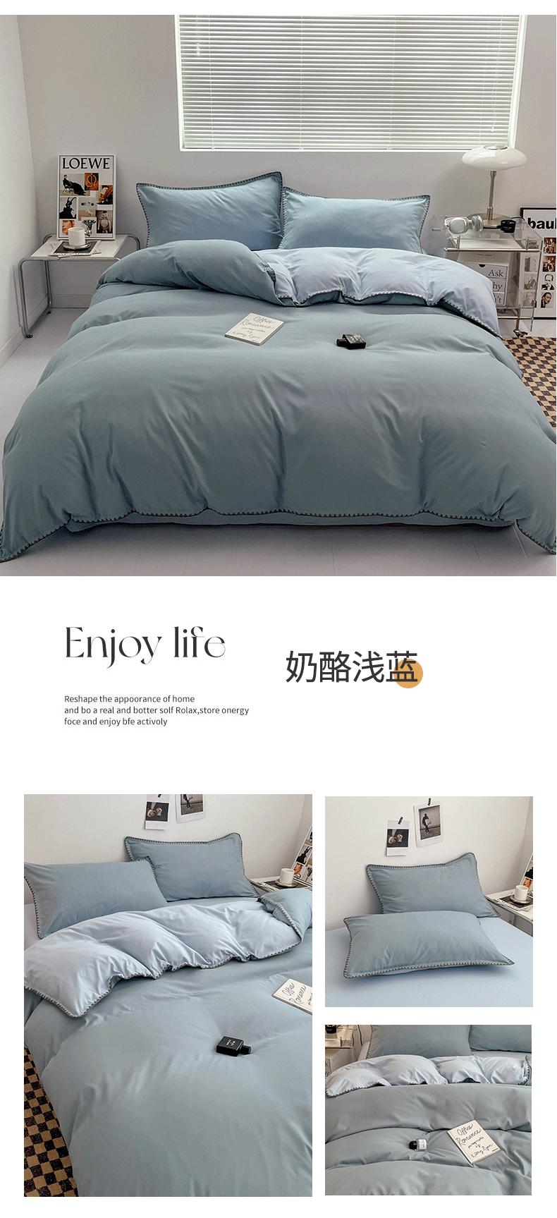 Juego de Cama de Algodón Lavado de Cuatro Piezas con Doble Raya Estilo Ins, Sábana Encimera Cepillada de Color Sólido, Funda de Edredón, Sábana Ajustable, Juego de Tres Piezas para Estudiante