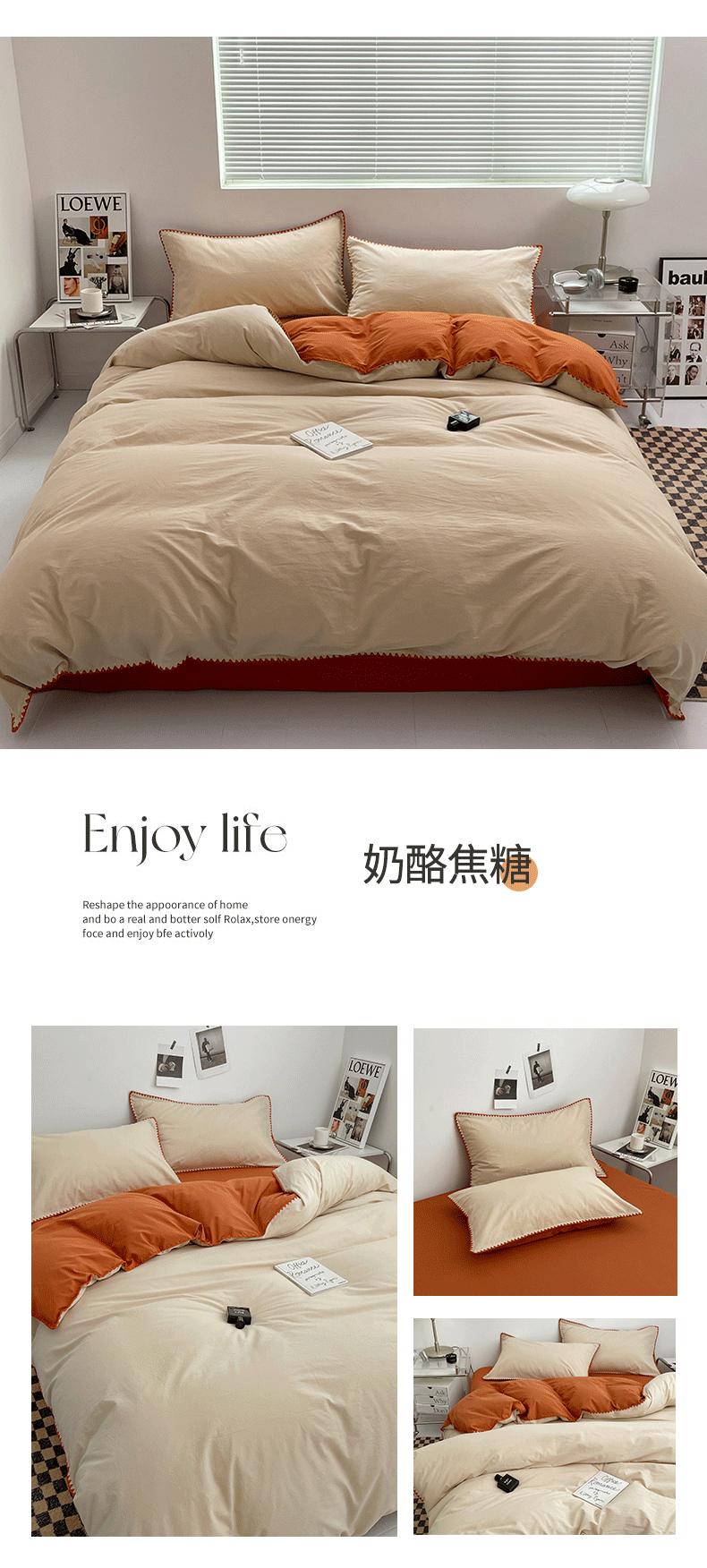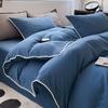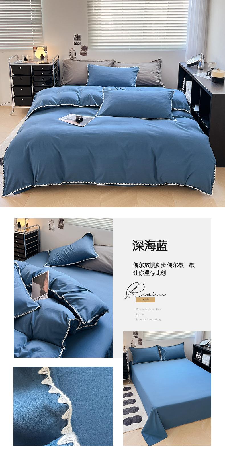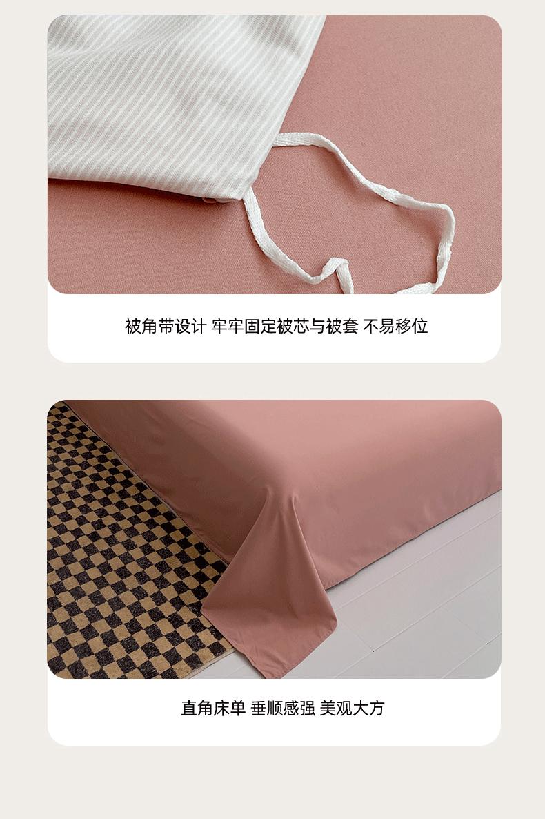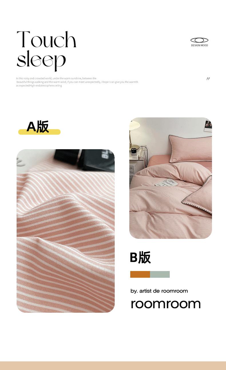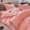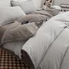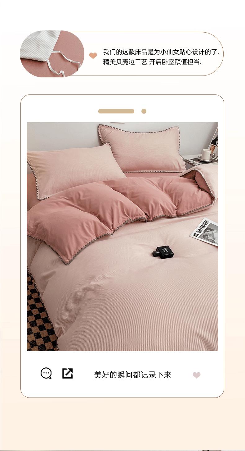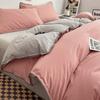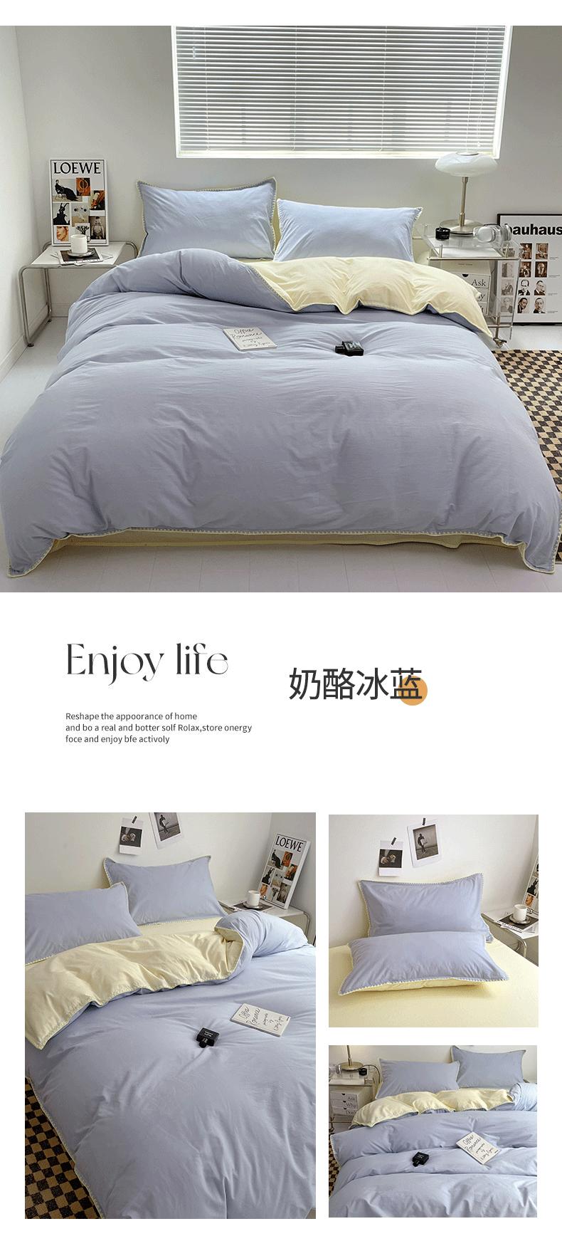 Juego de Cama de Algodón Lavado de Cuatro Piezas con Doble Raya Estilo Ins, Sábana Encimera Cepillada de Color Sólido, Funda de Edredón, Sábana Ajustable, Juego de Tres Piezas para Estudiante