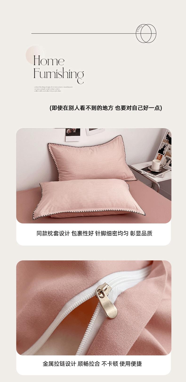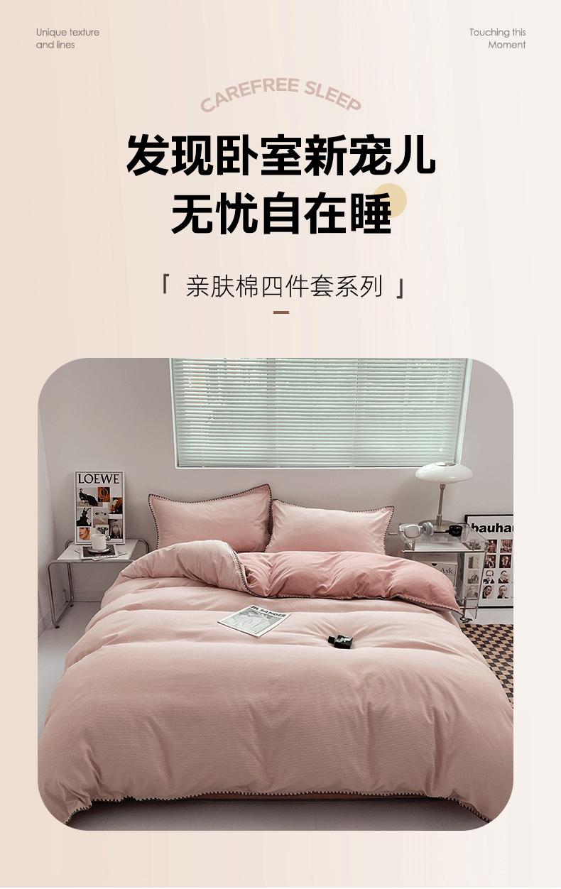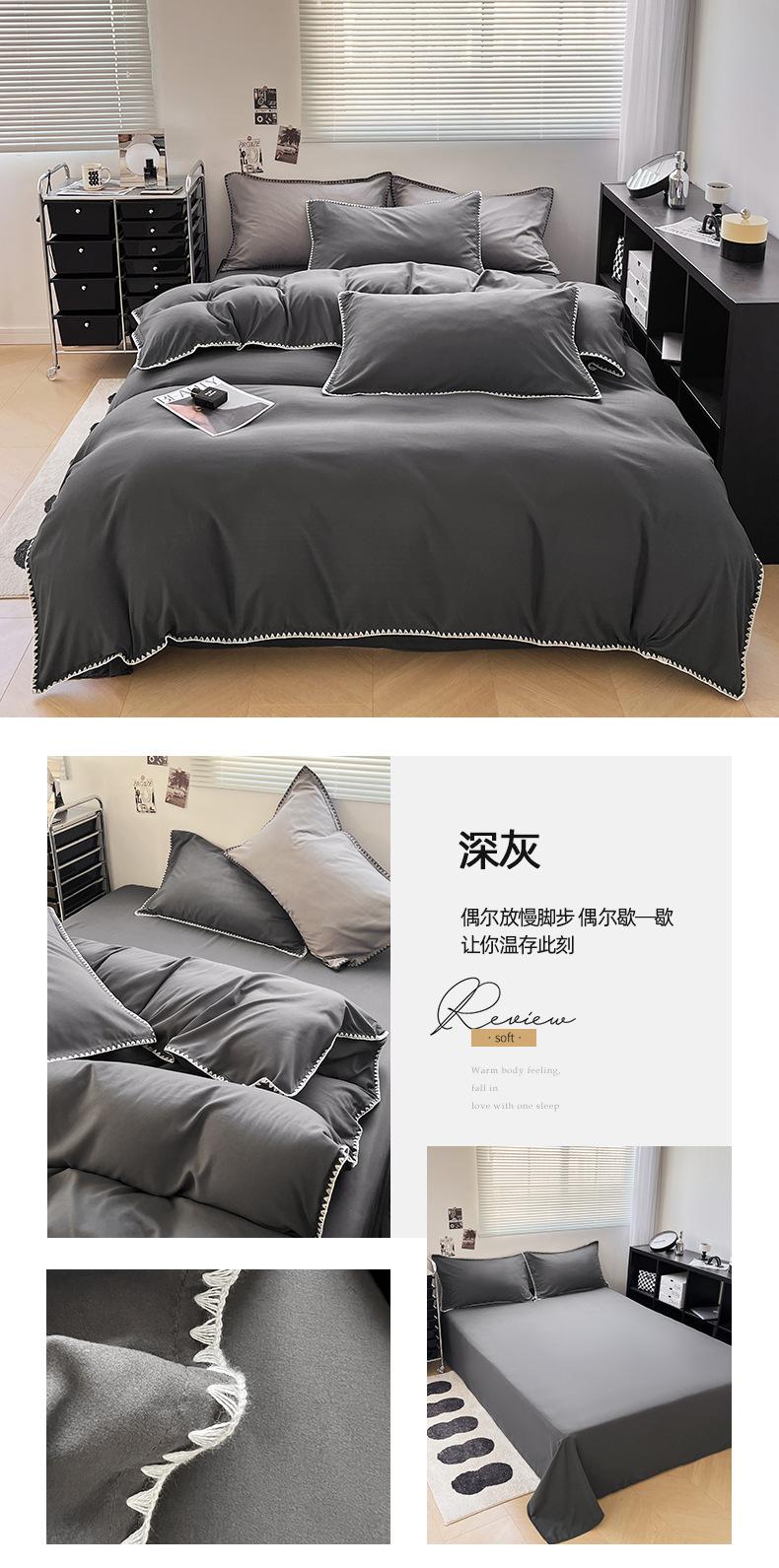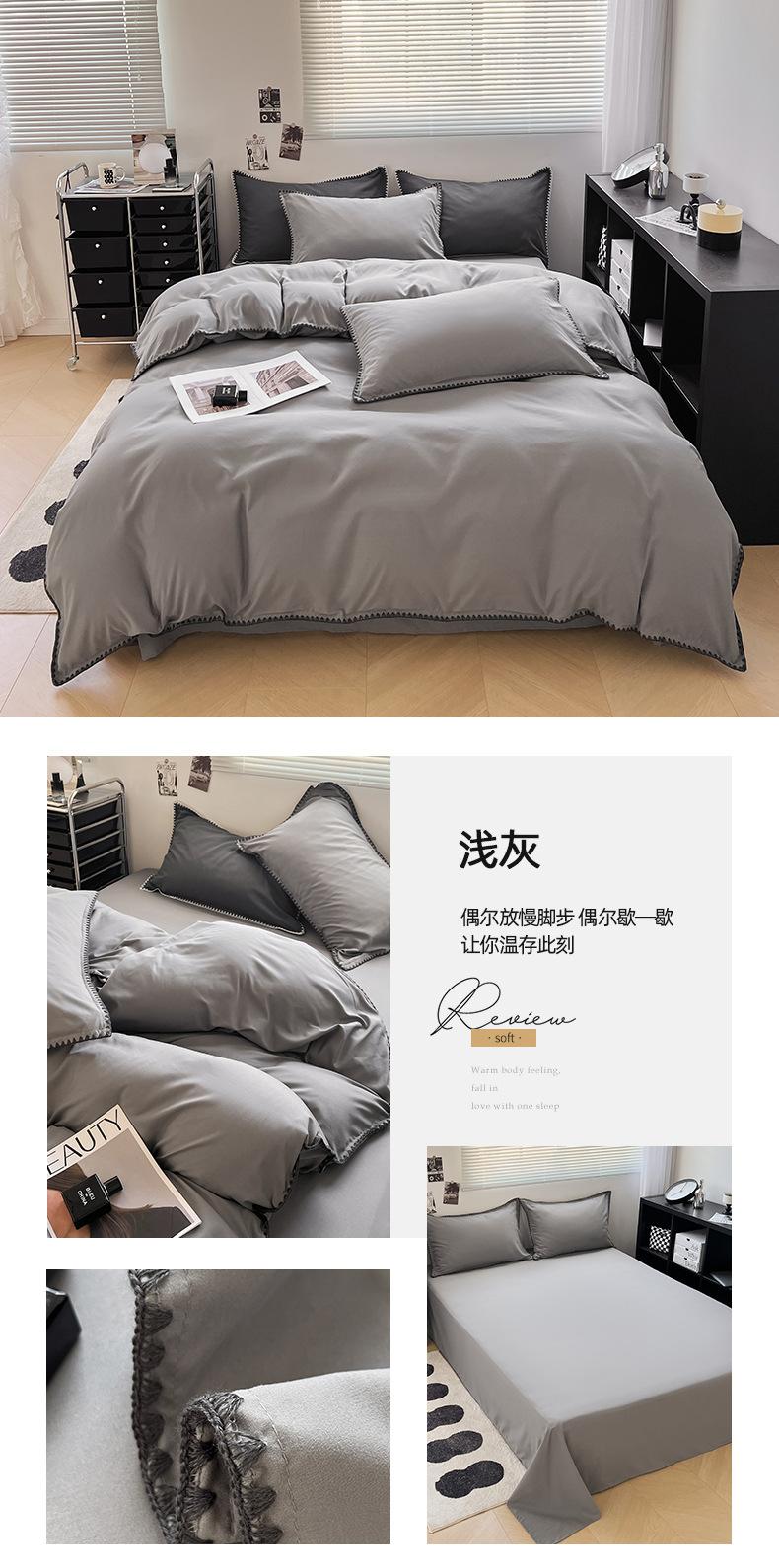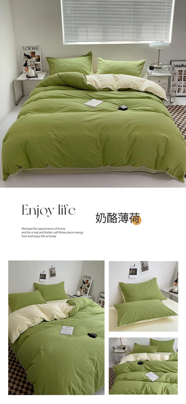 Juego de Cama de Algodón Lavado de Cuatro Piezas con Doble Raya Estilo Ins, Sábana Encimera Cepillada de Color Sólido, Funda de Edredón, Sábana Ajustable, Juego de Tres Piezas para Estudiante
