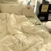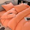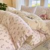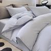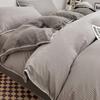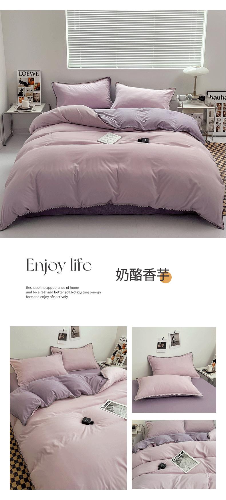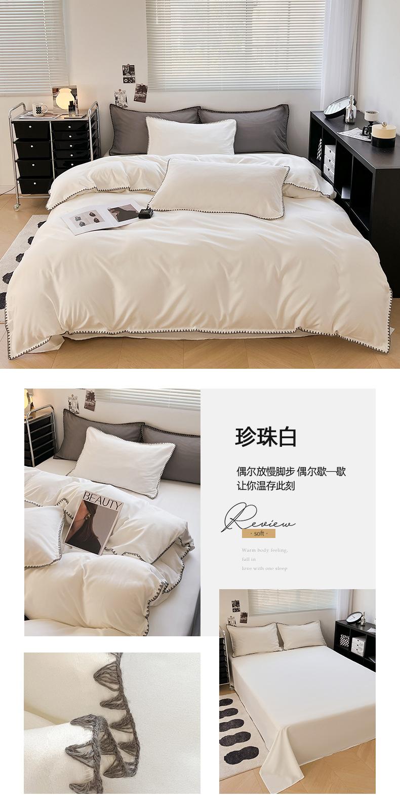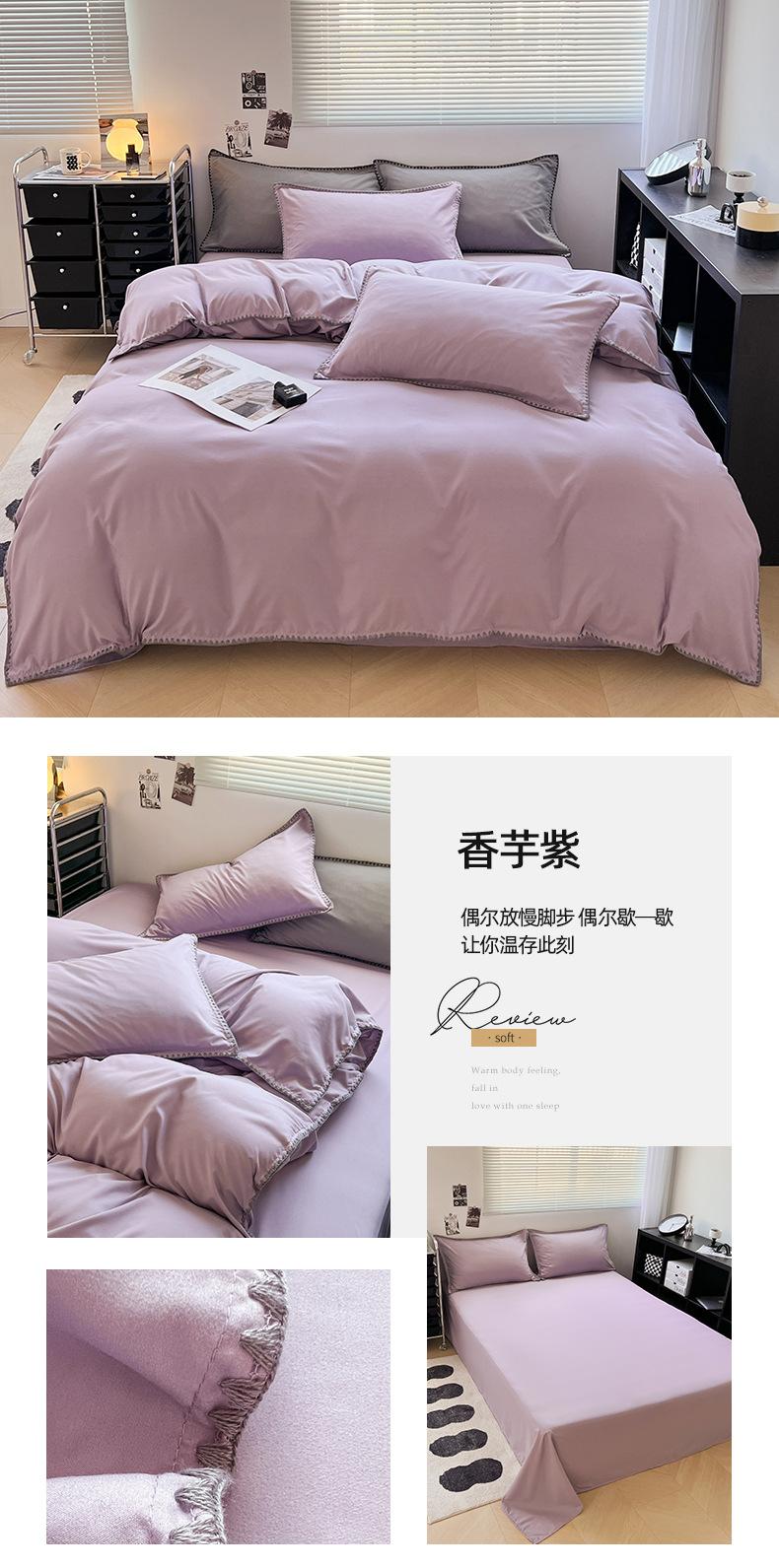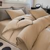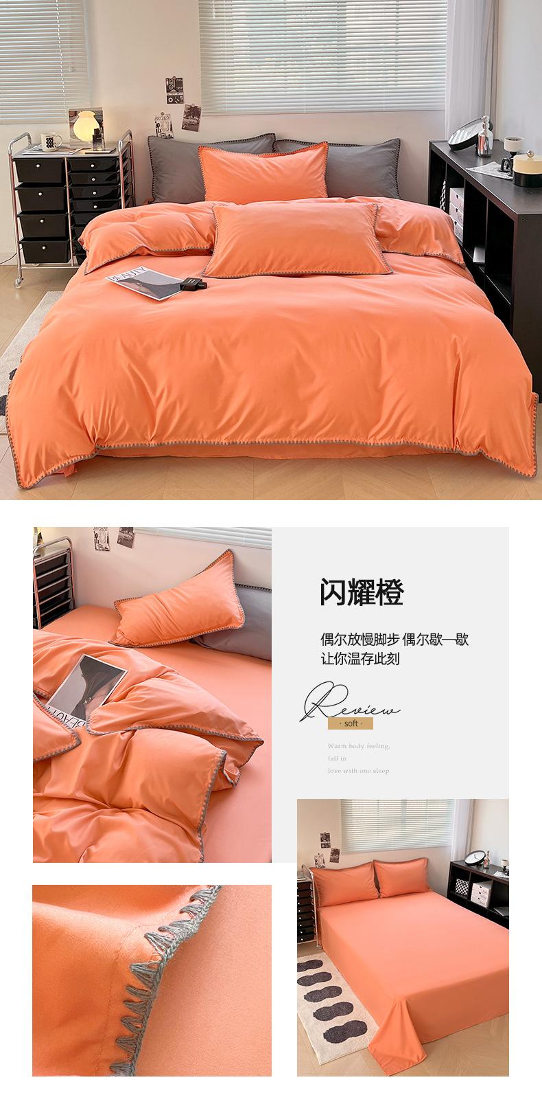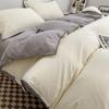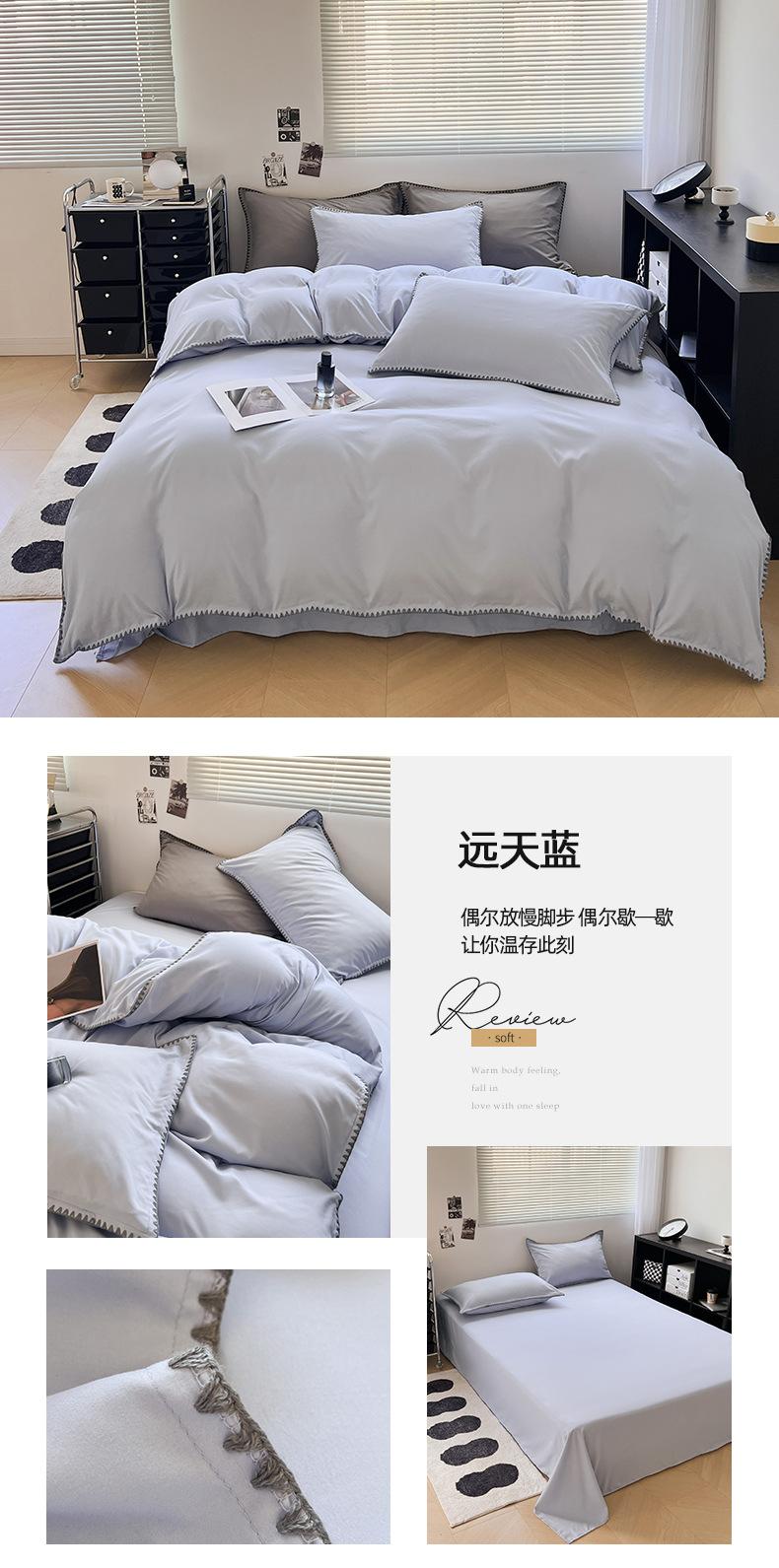 Juego de Cama de Algodón Lavado de Cuatro Piezas con Doble Raya Estilo Ins, Sábana Encimera Cepillada de Color Sólido, Funda de Edredón, Sábana Ajustable, Juego de Tres Piezas para Estudiante