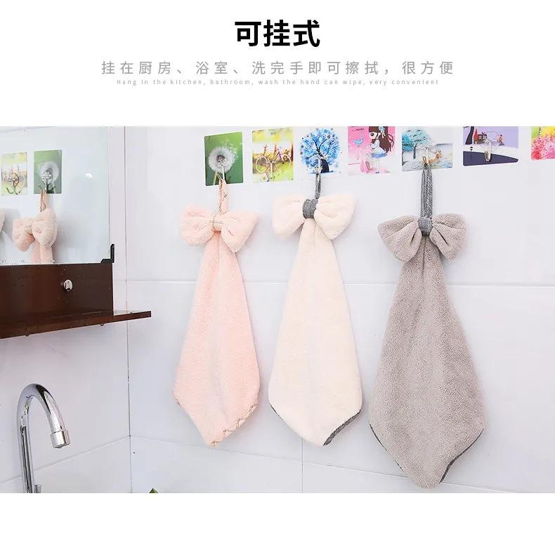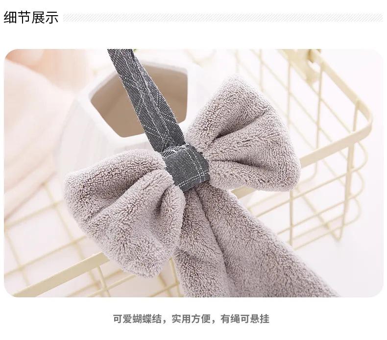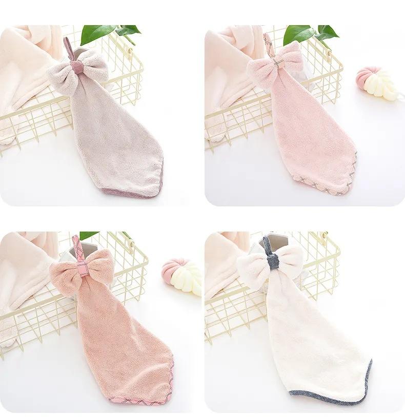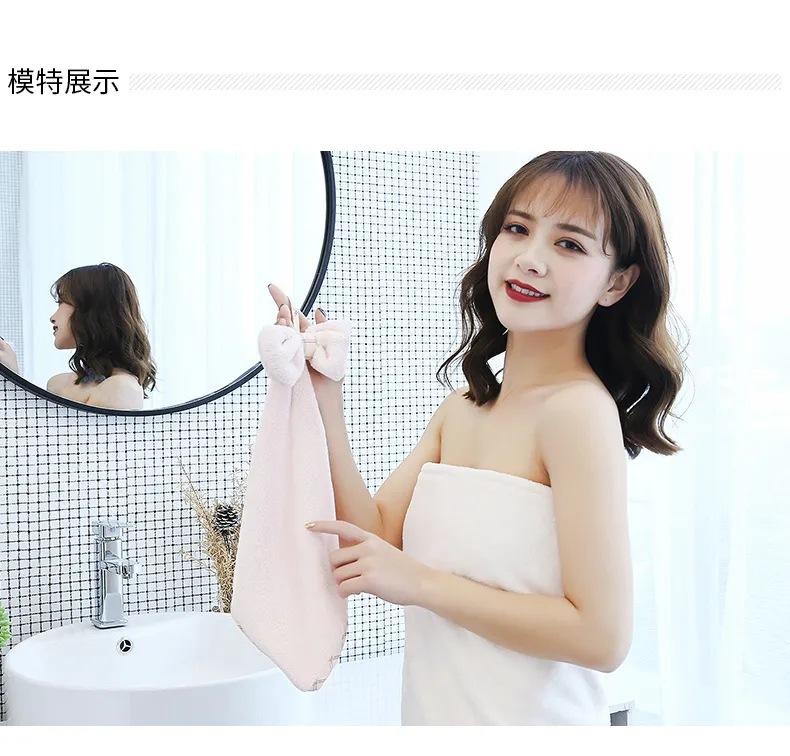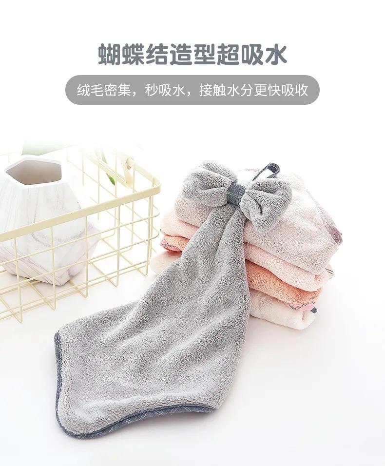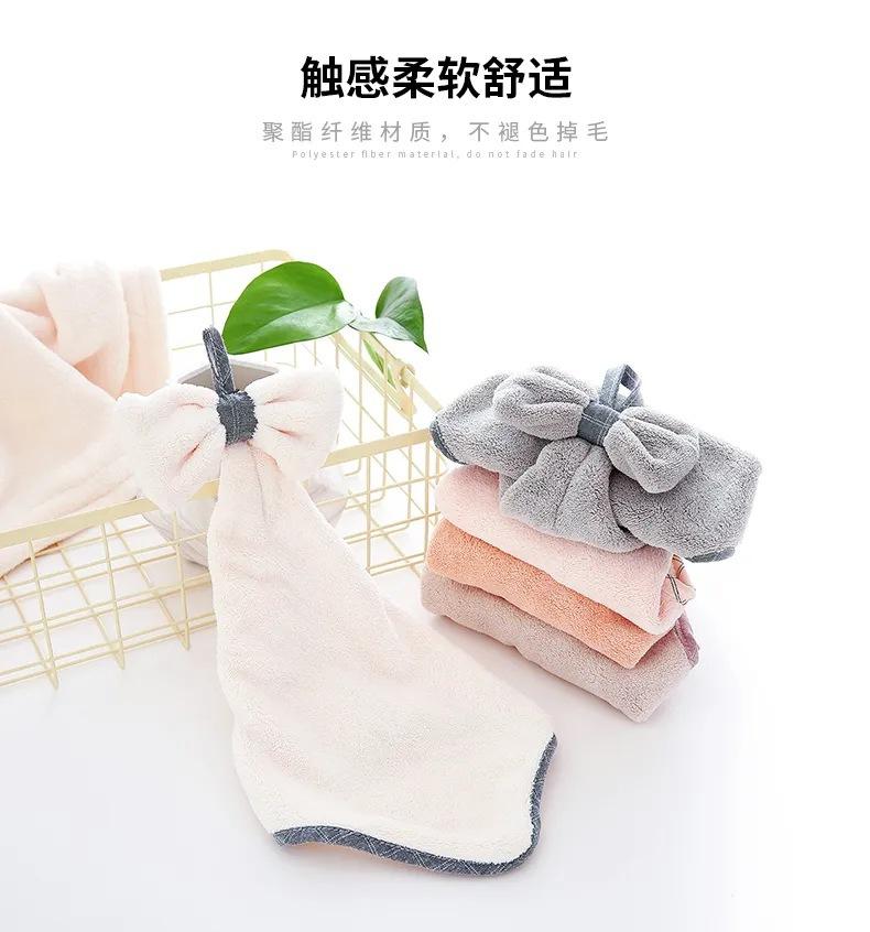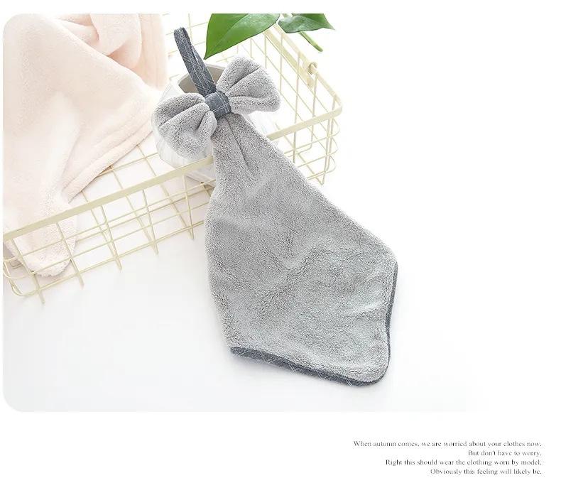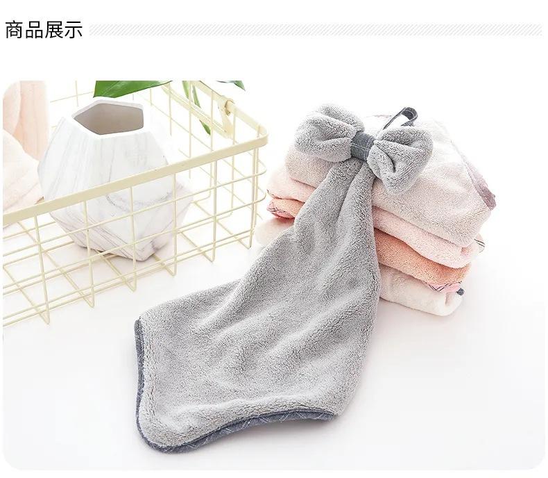 Toalla de Baño Colgable Linda de Terciopelo Coral con Lazo Sin Pelusa Engrosada Absorbente Toalla Facial y de Mano al por Mayor