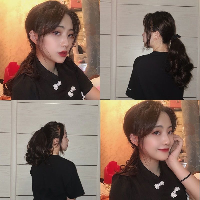 Peluca para Mujer Corta Rizo Flor de Pera Cola de Caballo con Correa Cola de Caballo Corta Cola de Caballo Larga Cabello Rizado Trenza Simulación Cabello Rizo Cola de Caballo Cabello Largo