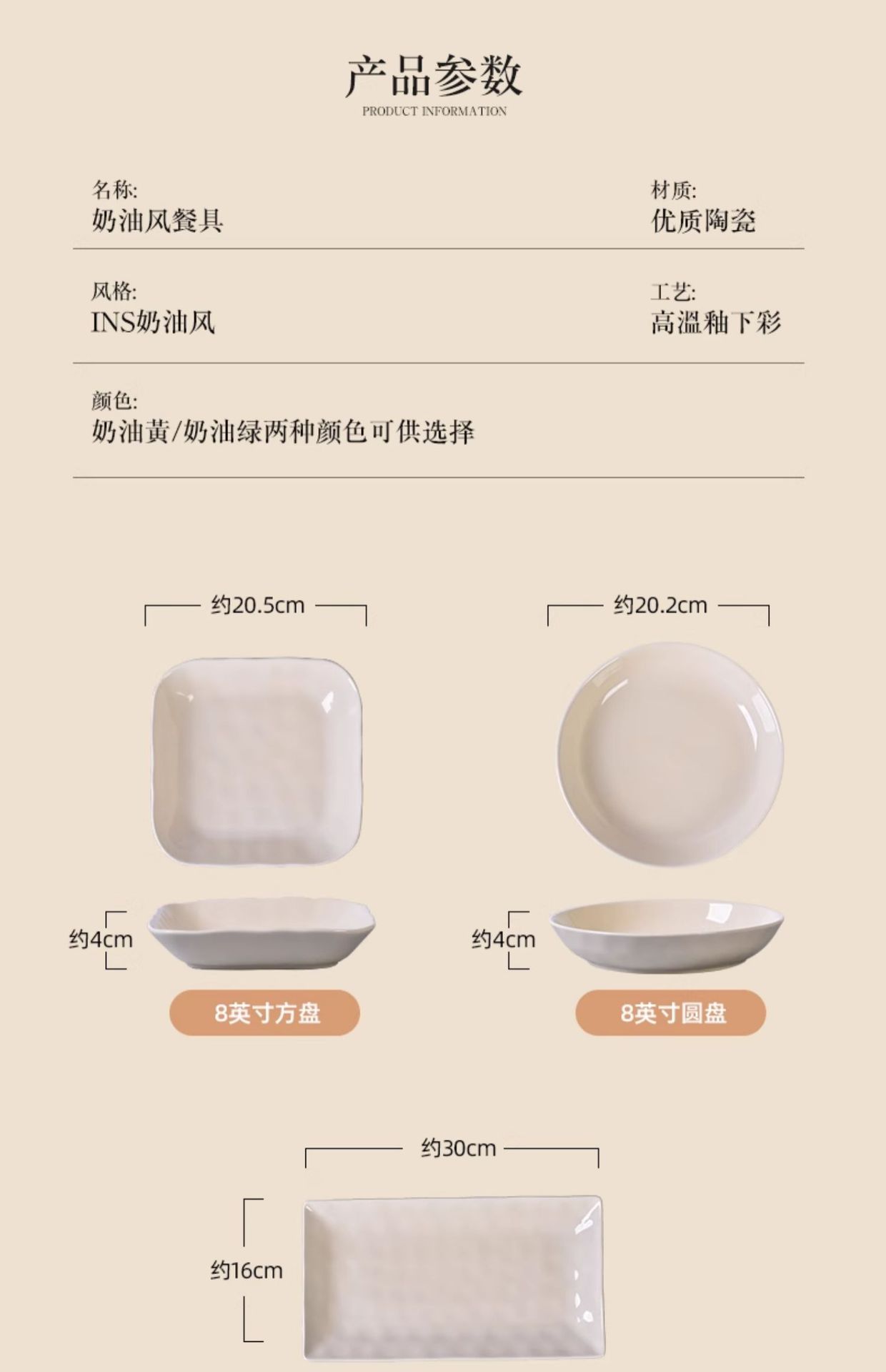 8inch round plate-custard [2 pieces], 8inch discs-milk green [2 pieces], 8inch discs - custard + milk green, 8...