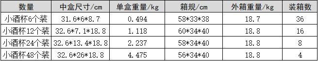 Especificaciones de embalaje