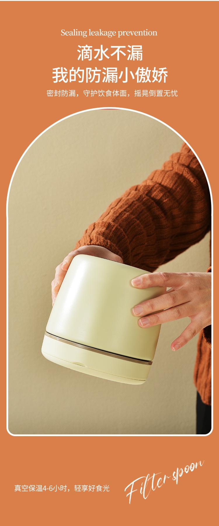 Cream white 1.2l Sus304 vacuum (built-in folding spoon)