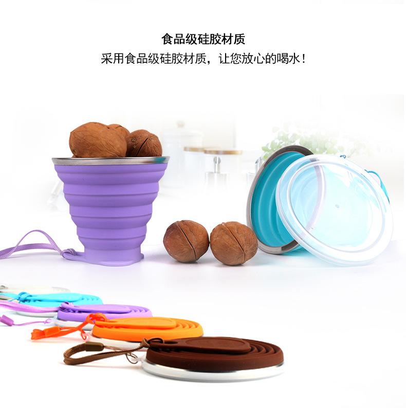Mini Taza de Montañismo con Tapa, Botella de Agua Deportiva Creativa Multifuncional, Vaso de Agua Plegable de Silicona para Exteriores de 270 ml, Plegable