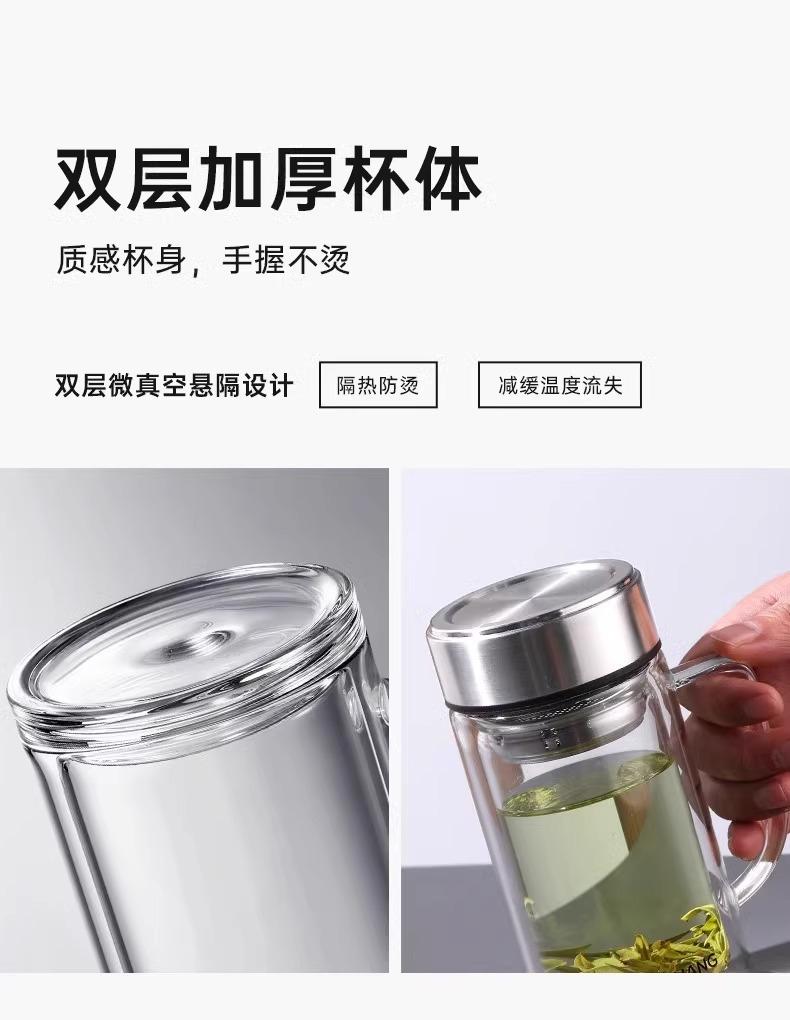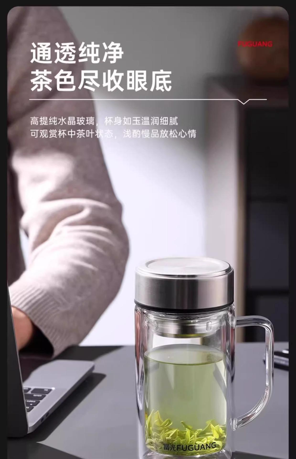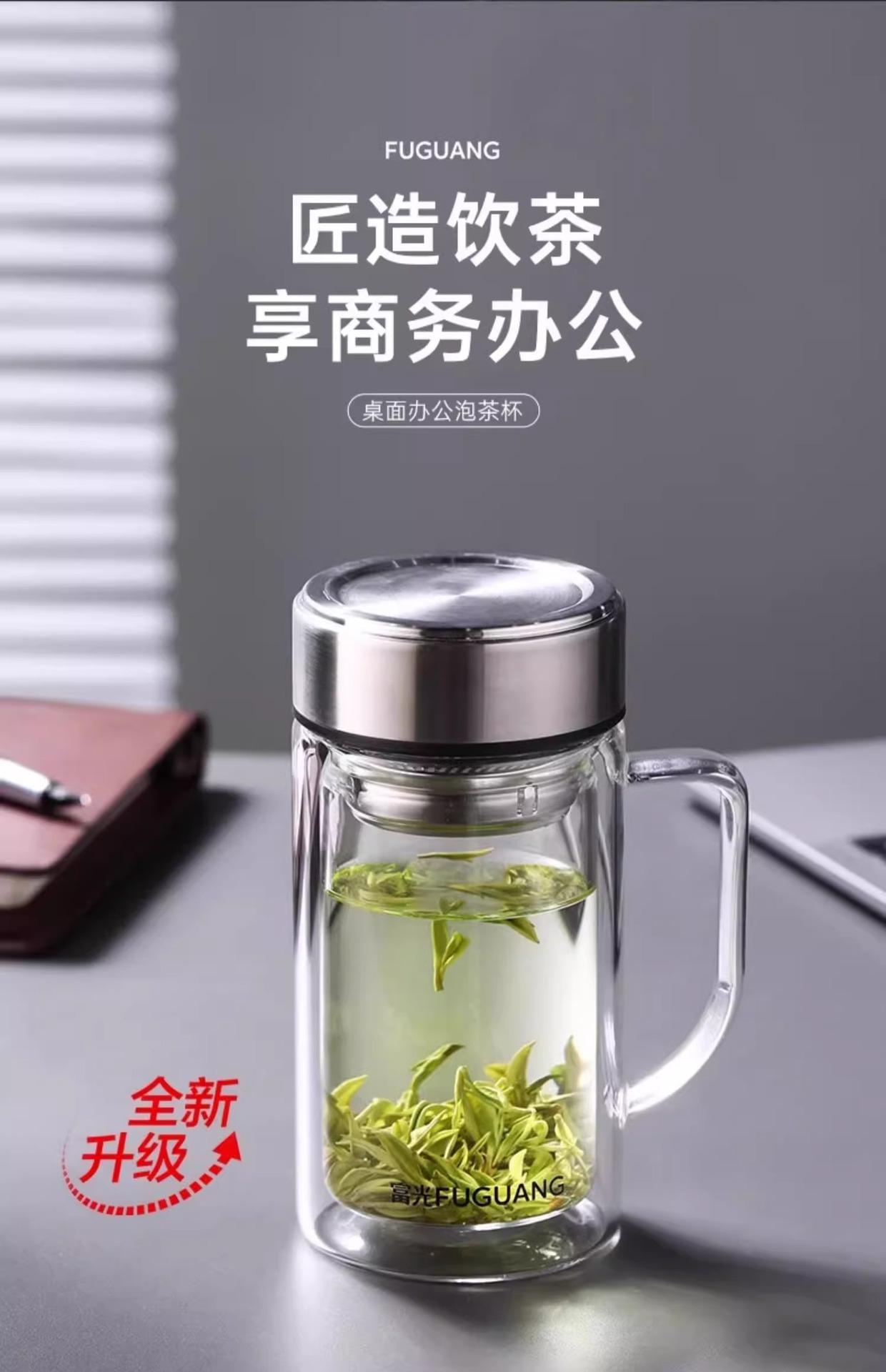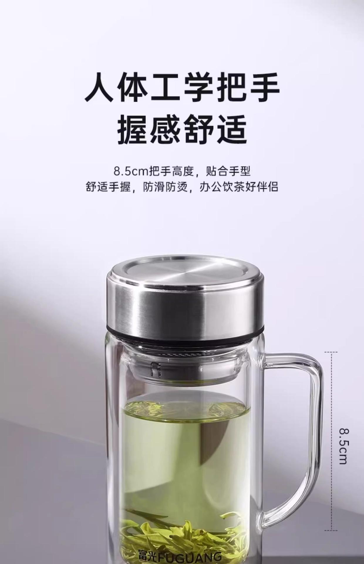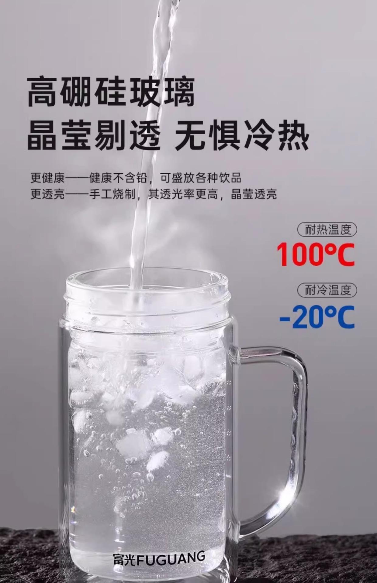 Compra Vaso de vidrio de doble capa Fuguang con asa para oficina, taza de agua de borosilicato alto, gran capacidad para beber agua, taza de té para hombres, venta al por mayor al por mayor en Joom.pro