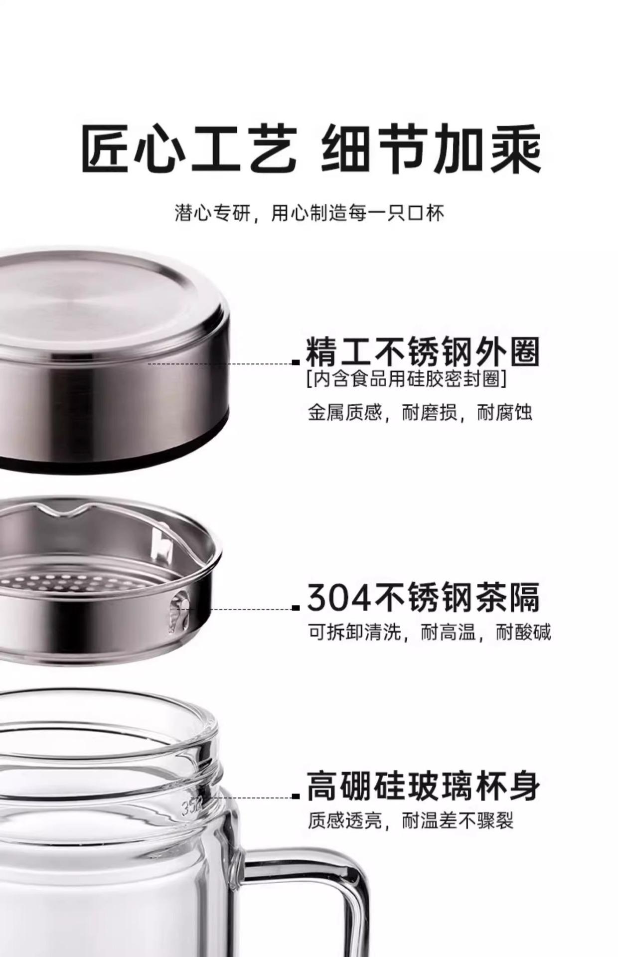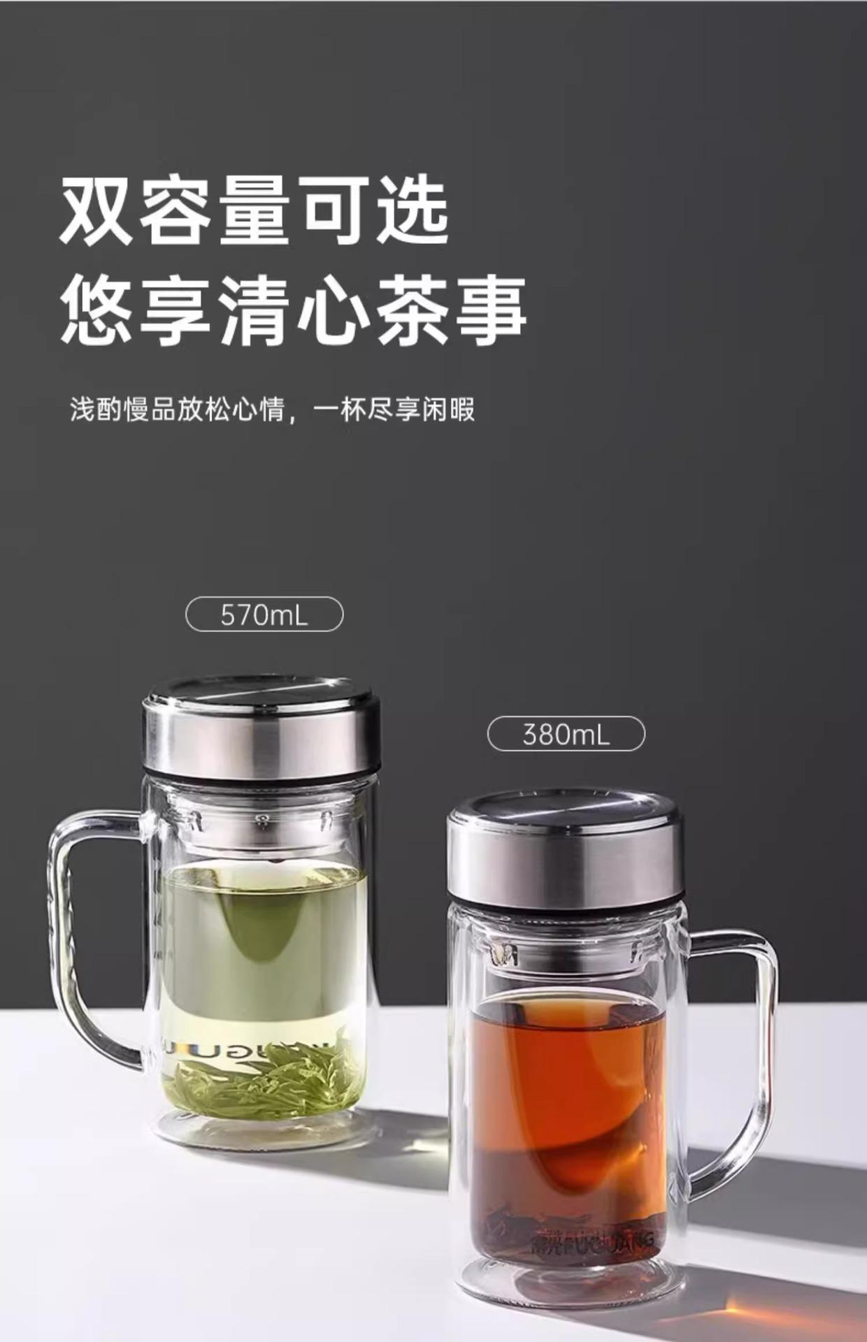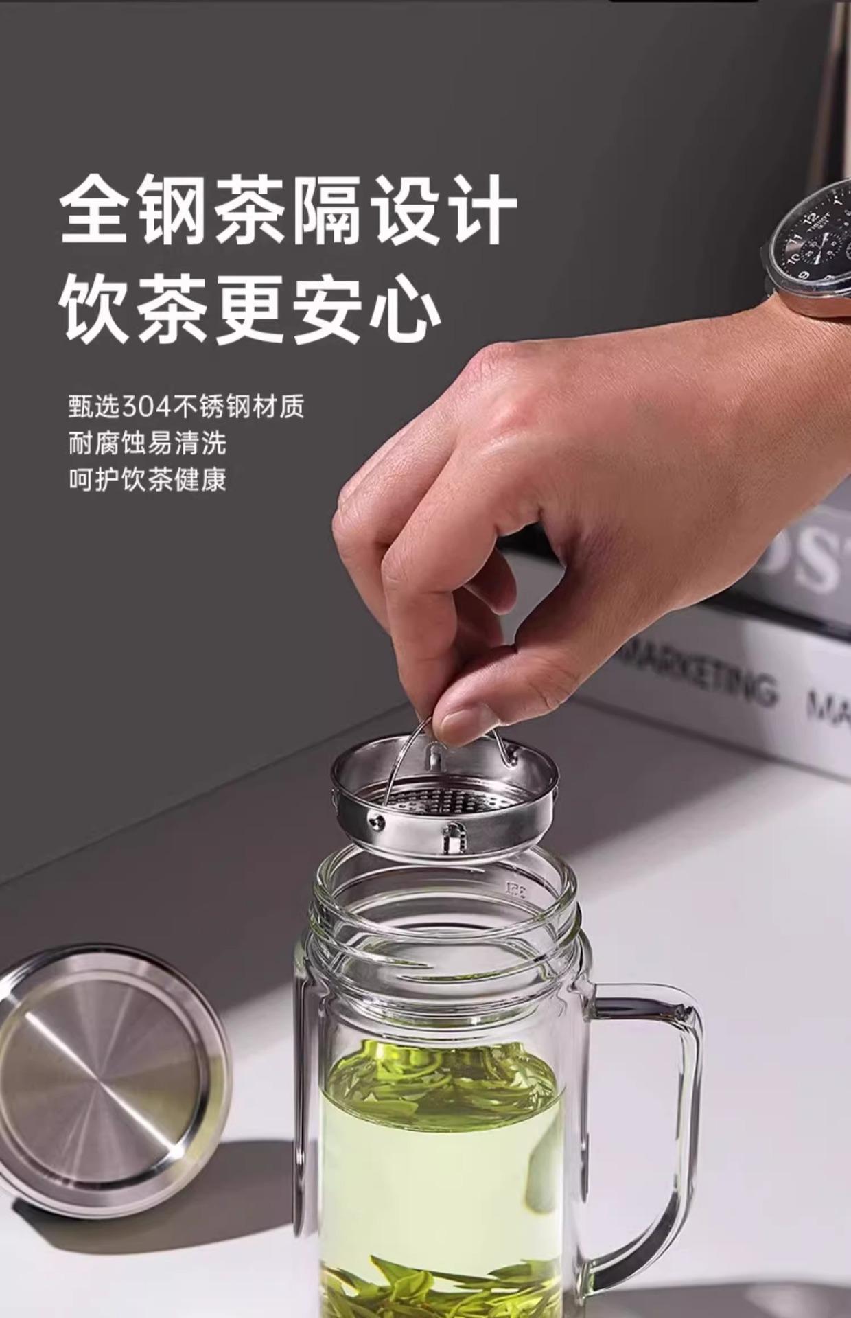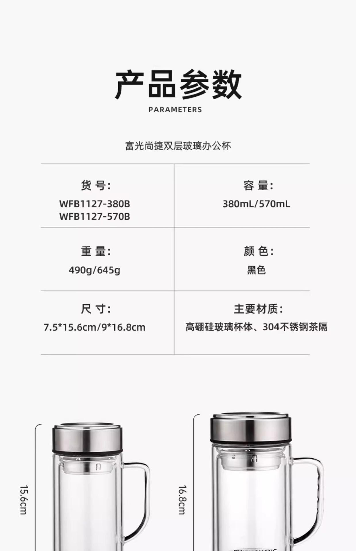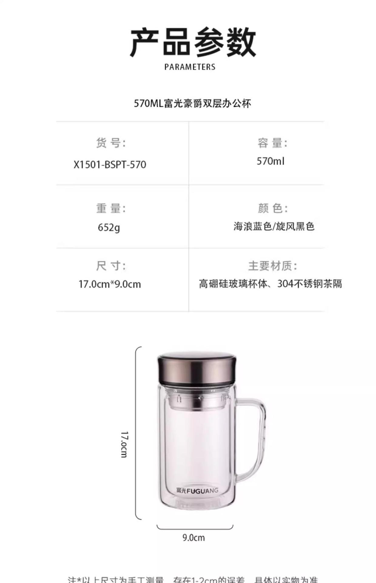 Compra Vaso de vidrio de doble capa Fuguang con asa para oficina, taza de agua de borosilicato alto, gran capacidad para beber agua, taza de té para hombres, venta al por mayor al por mayor en Joom.pro