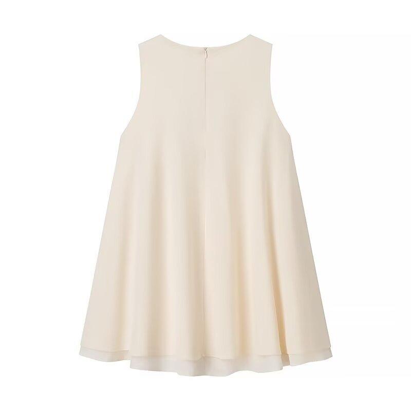 Verano 2025 Nuevo Ropa de Mujer Transfronteriza Europea y Americana Elegante Moderna Cuello Redondo Dobladillo Ancho Vestido Corto W091 2677