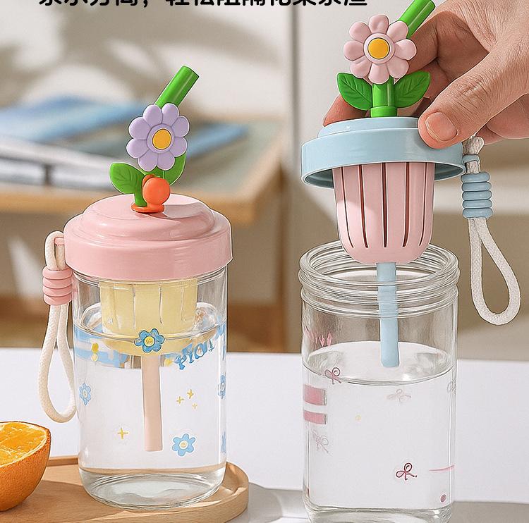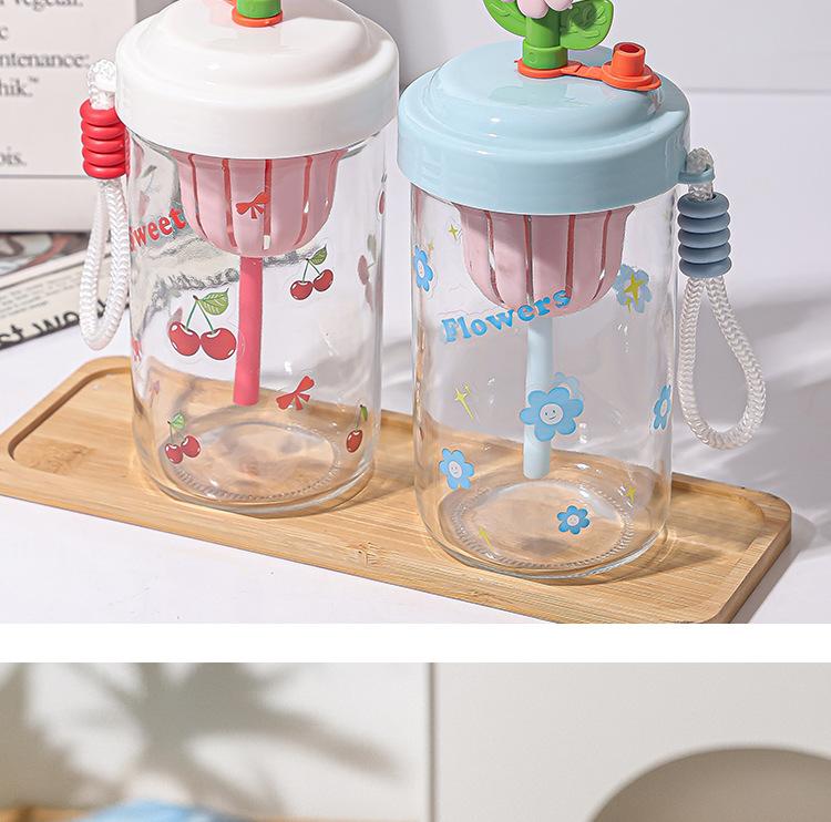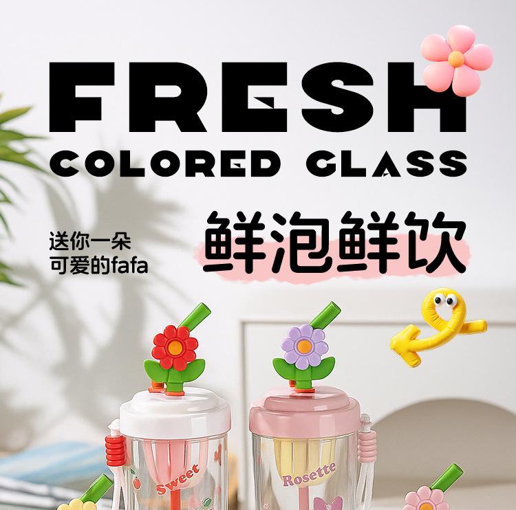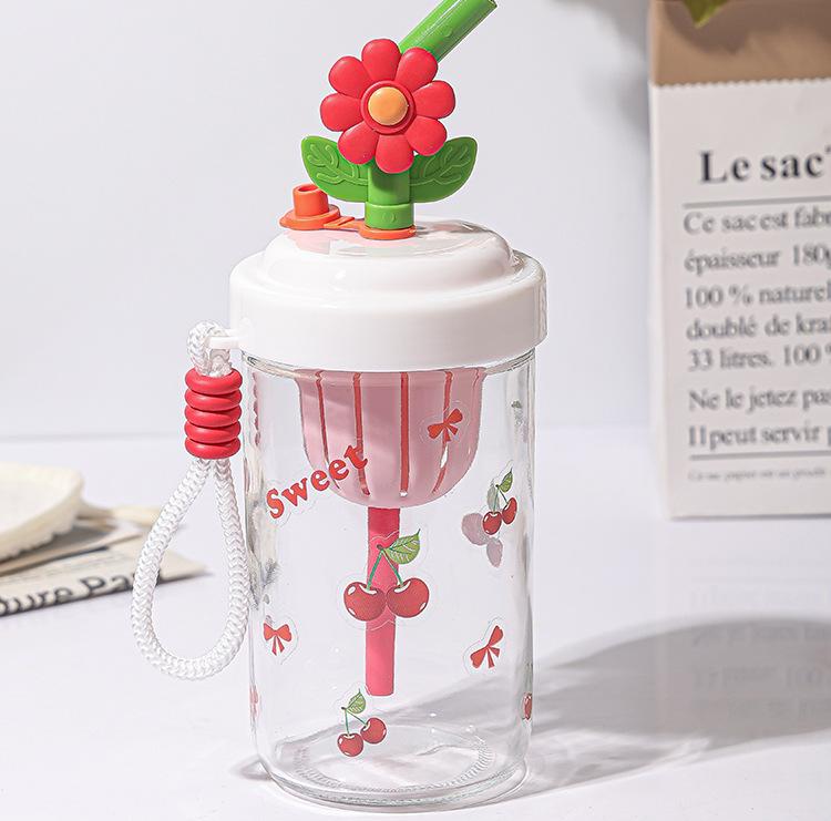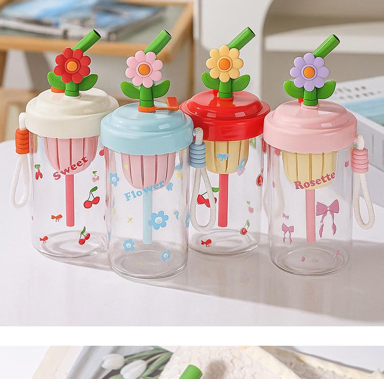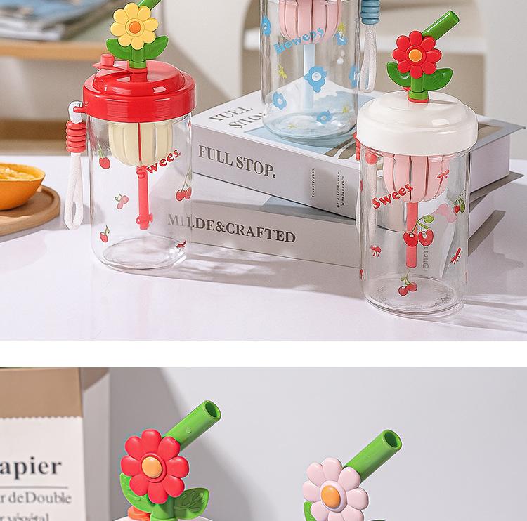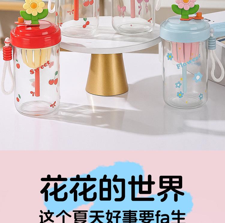 Vaso de Agua para Niños, Nuevo Vaso con Pajita Lindo, Vaso Mezclador Portátil de Celebridad de Internet de Aspecto Sofisticado, Vaso de Agua de Verano, Vaso de Vidrio