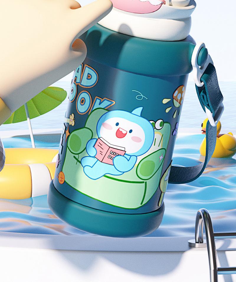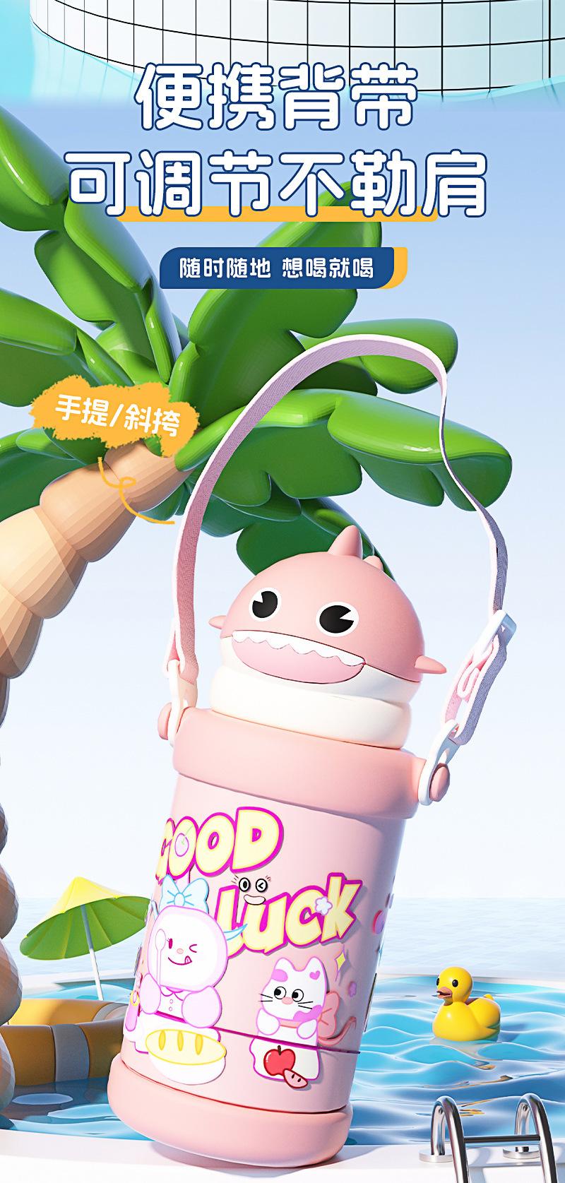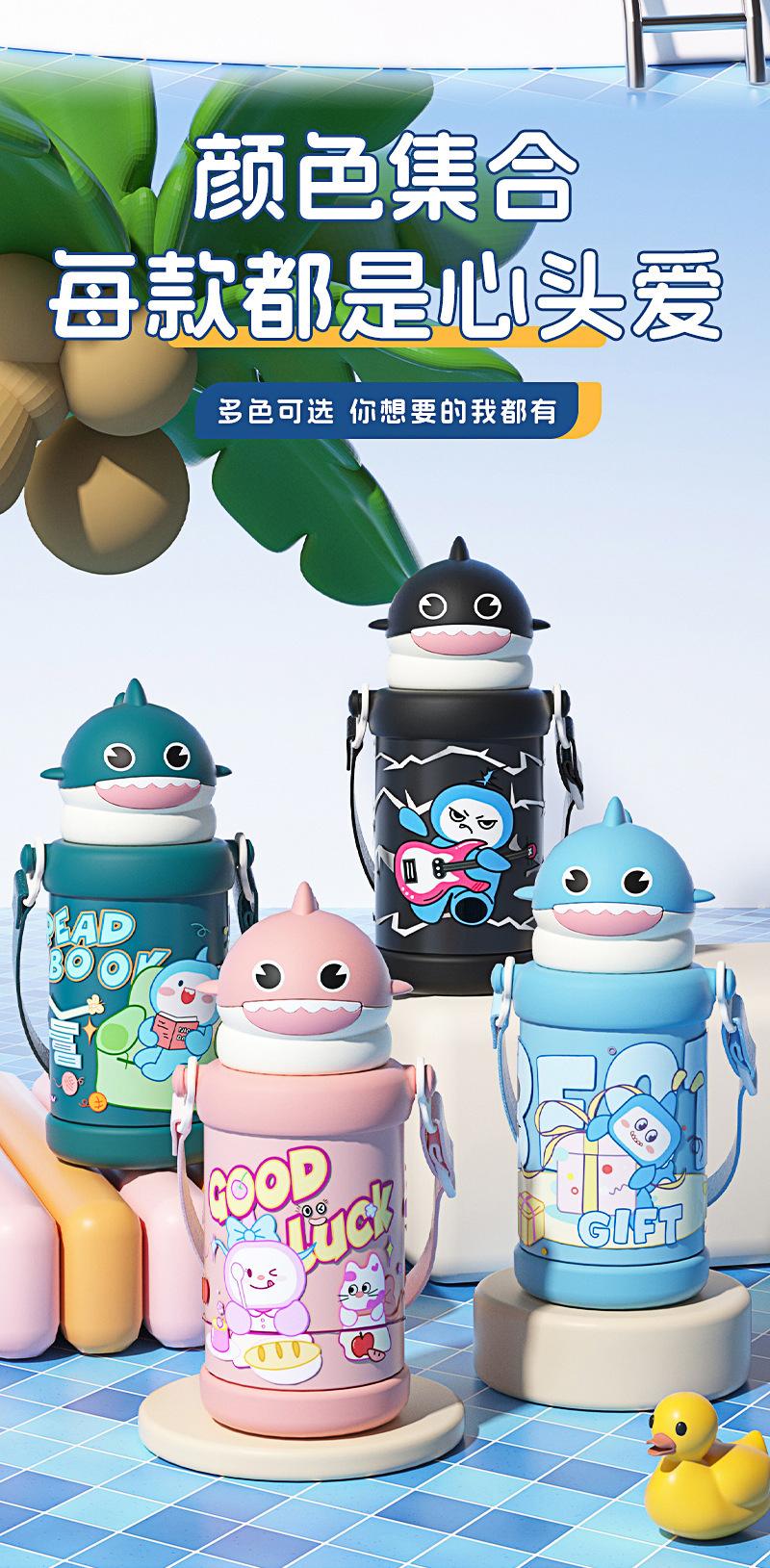 Nuevo Vaso de Agua con Popote de Tiburón de Dibujos Animados para Hombres y Mujeres de Alto Valor Acero Inoxidable 316 Vaso Aislado Portátil con Correa Ajustable