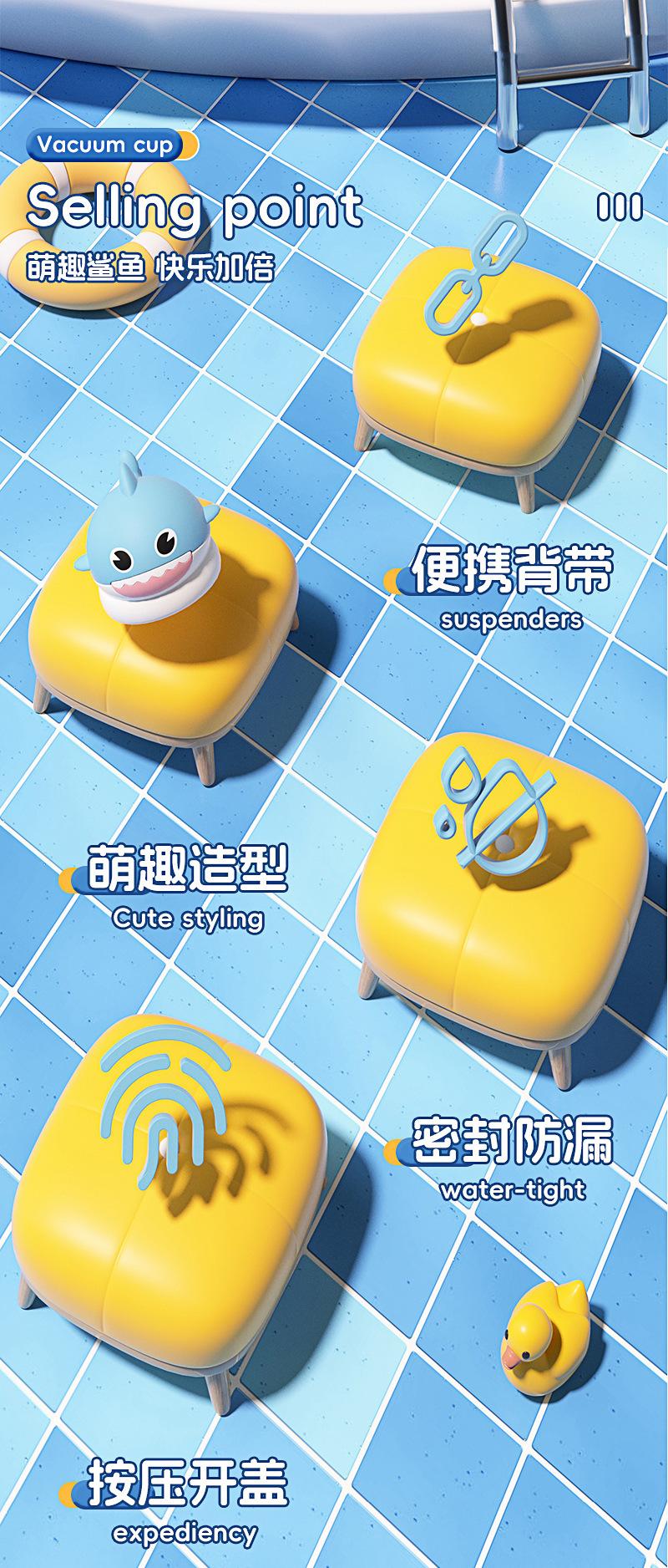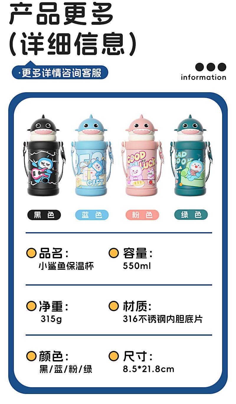 Nueva Taza Popote de Tiburón Pequeño Lindo de Invierno con Correa Portátil de Acero Inoxidable Aislada para Niños Resistente y a Prueba de Caídas para Exteriores