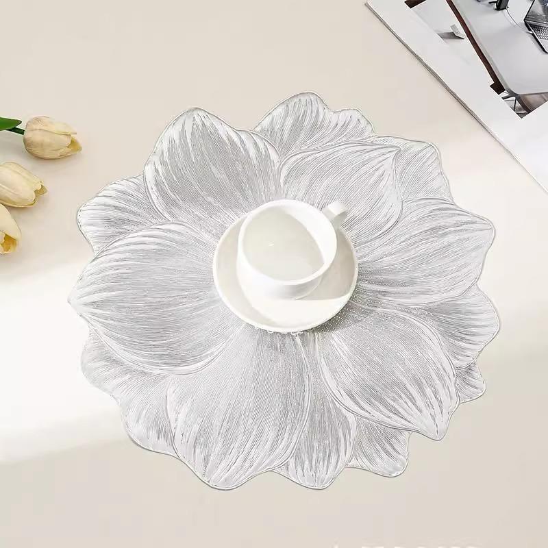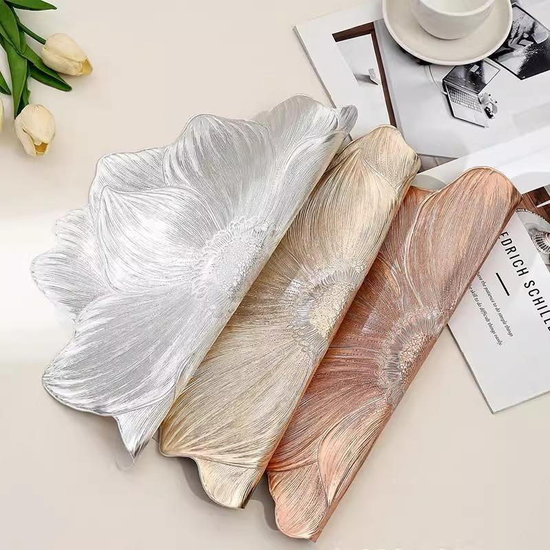 Mantel Individual de Lujo Ligero Loto Antideslizante Pvc Aislamiento Mat Hotel Hogar Plato de Comida Occidental Mat Estilo Ins Mantel de Mesa Mat para Tazón Mat Decorativo