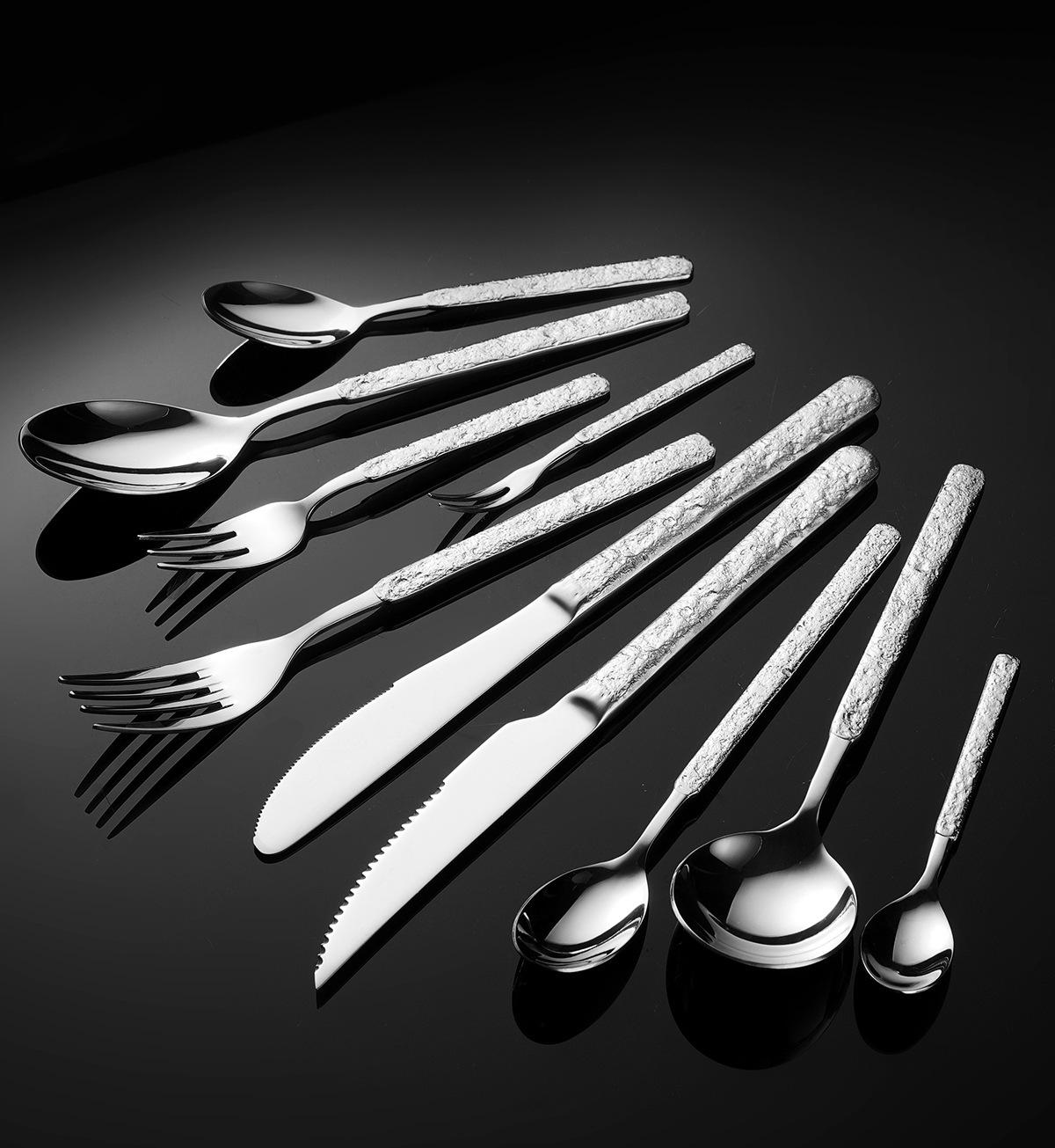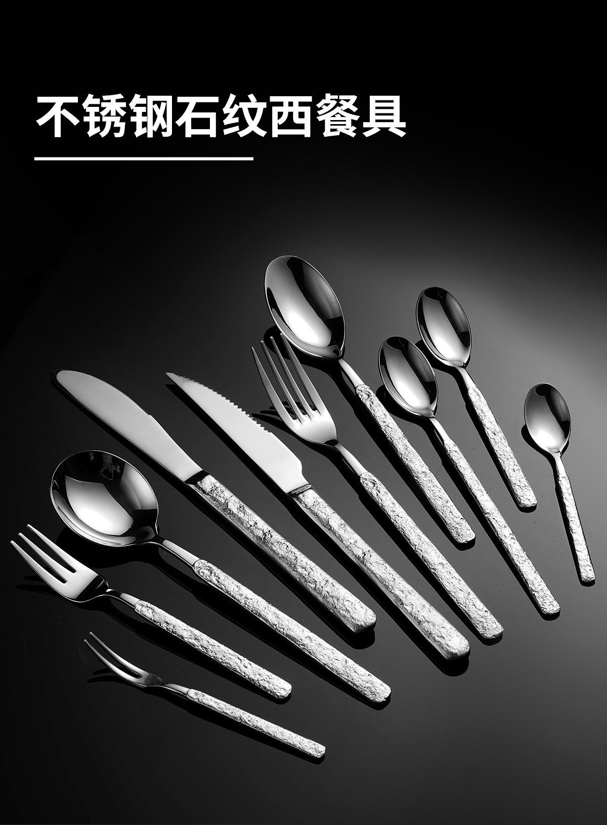Vajilla de Acero Inoxidable 304 con Patrón de Piedra Vajilla para Comida Occidental de Alta Gama Juego de Cuchillo para Bistec y Tenedor de Hotel de Alta Gama Cuchillo para Bistec Tenedor de Acero Inoxidable