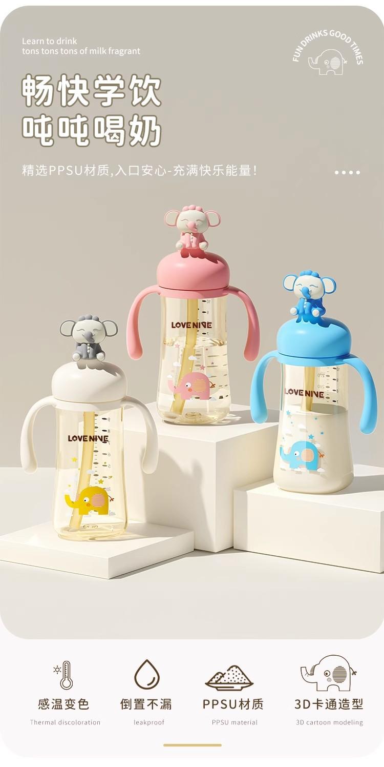 Compra Biberón PPSU para bebé un biberón de tres usos para mayores de un año taza con boquilla para niños adorable lindo para salir vaso portátil para beber al por mayor en Joom.pro
