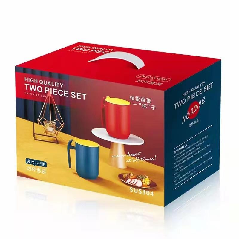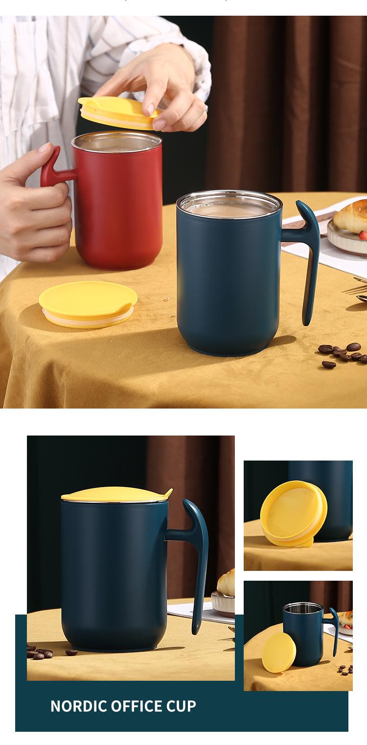 Taza de gran capacidad con tapa, taza de café de acero inoxidable 304 para hombre, taza de agua para mujer, taza de té para el hogar, caja de regalo