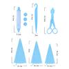 (1 espátula recta para crema) (1 espátula acodada para crema) (2 clavos para flores) (1 juego de alisadores para pastel)