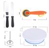 Lista de productos; (1 plato giratorio decorador antideslizante) (50 boquillas decoradoras) (3 mangas pasteleras) (Juego de raspadores de 6 piezas) (50 mangas pasteleras desechables) (5 convertidores de boquillas decoradoras) (1 cepillo de limpieza) (1 tijera decoradora)