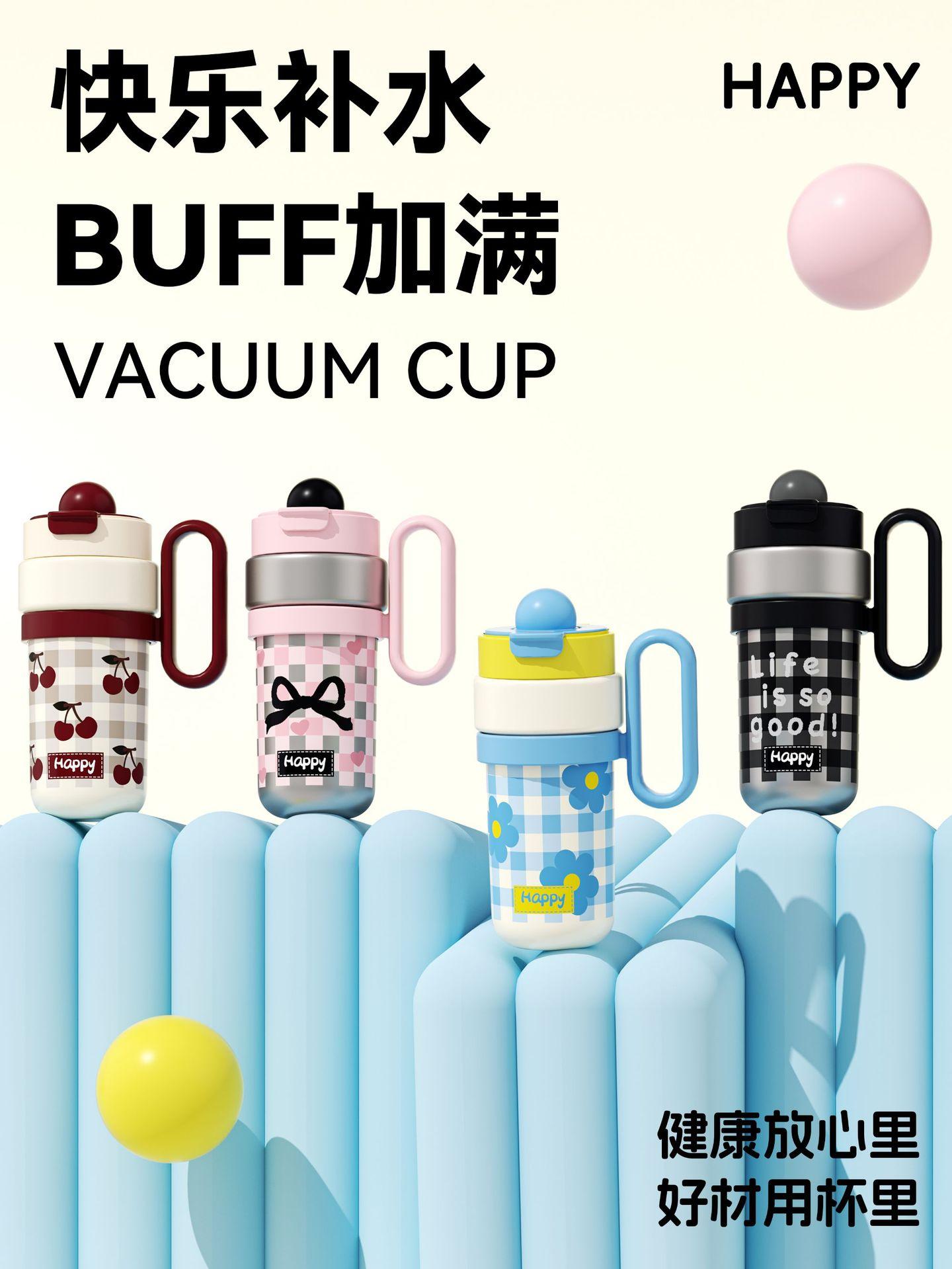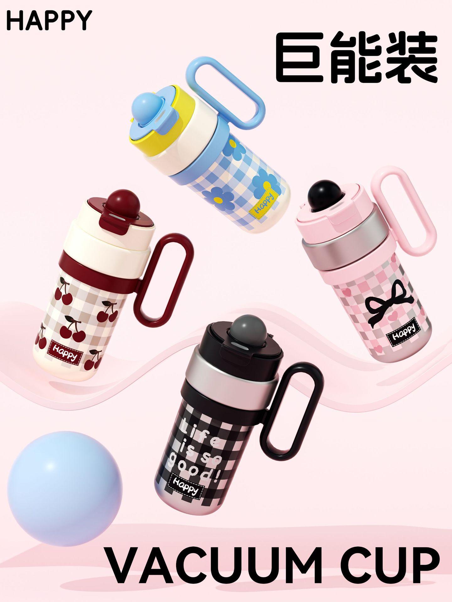 Nuevo Vaso Termo a Cuadros, Asa Portátil, Vaso para Coche, Vaso con Pajita Big Mac, Vaso para Doble Bebida de Aspecto Elegante, Gran Capacidad
