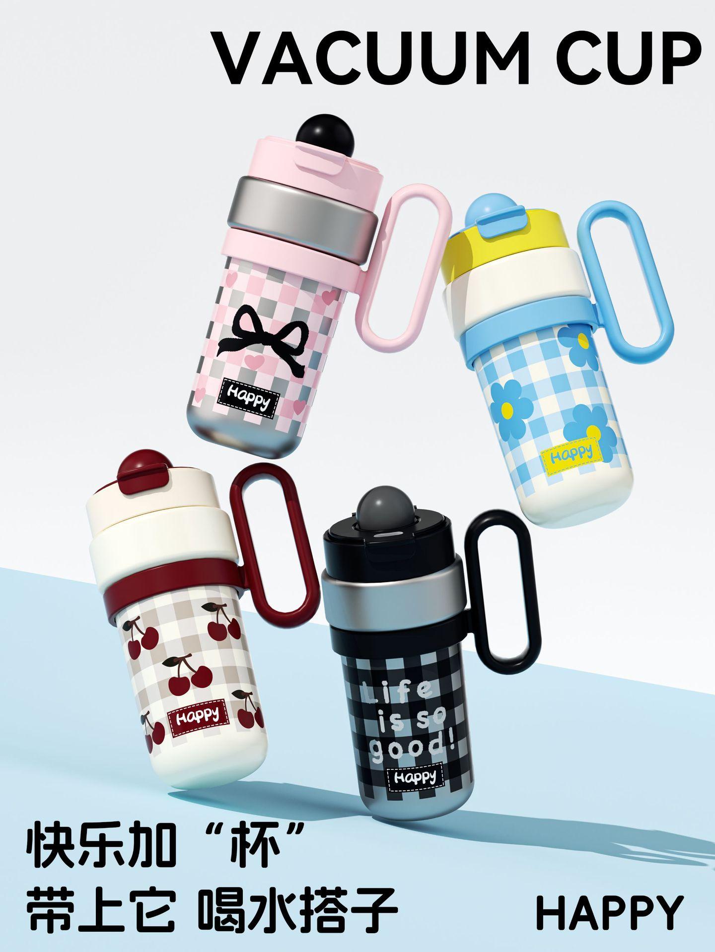 Plaid thermos cup-pink, Plaid thermos cup-black, Plaid thermos cup-blue, Plaid thermos cup-red