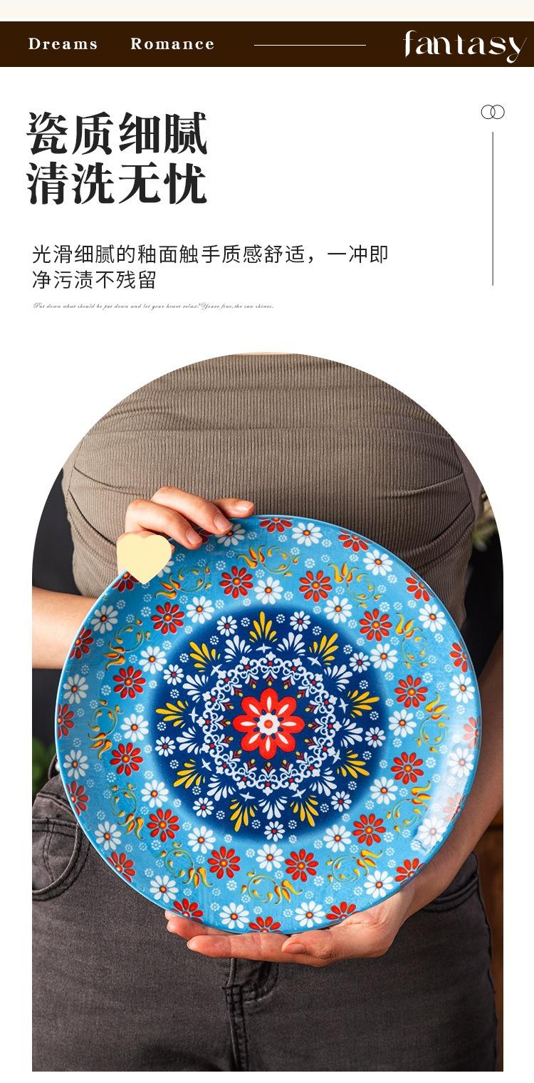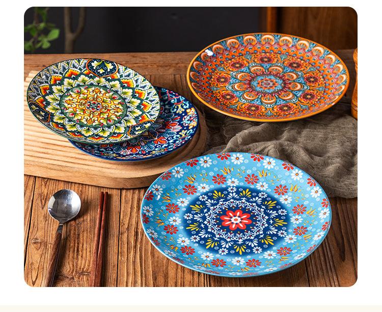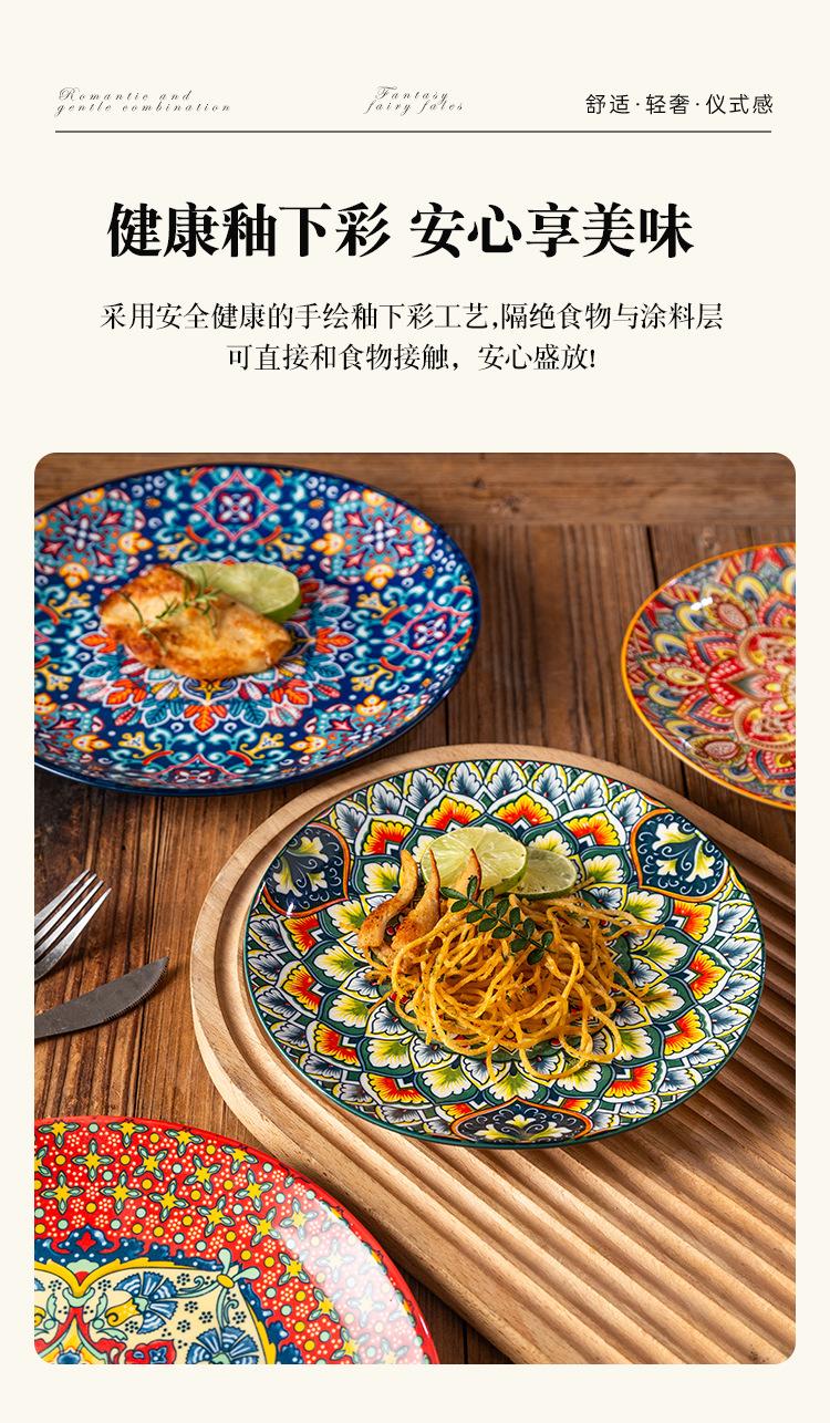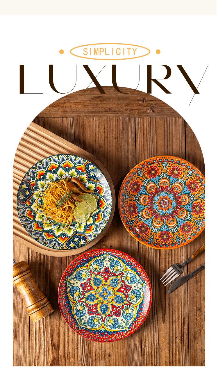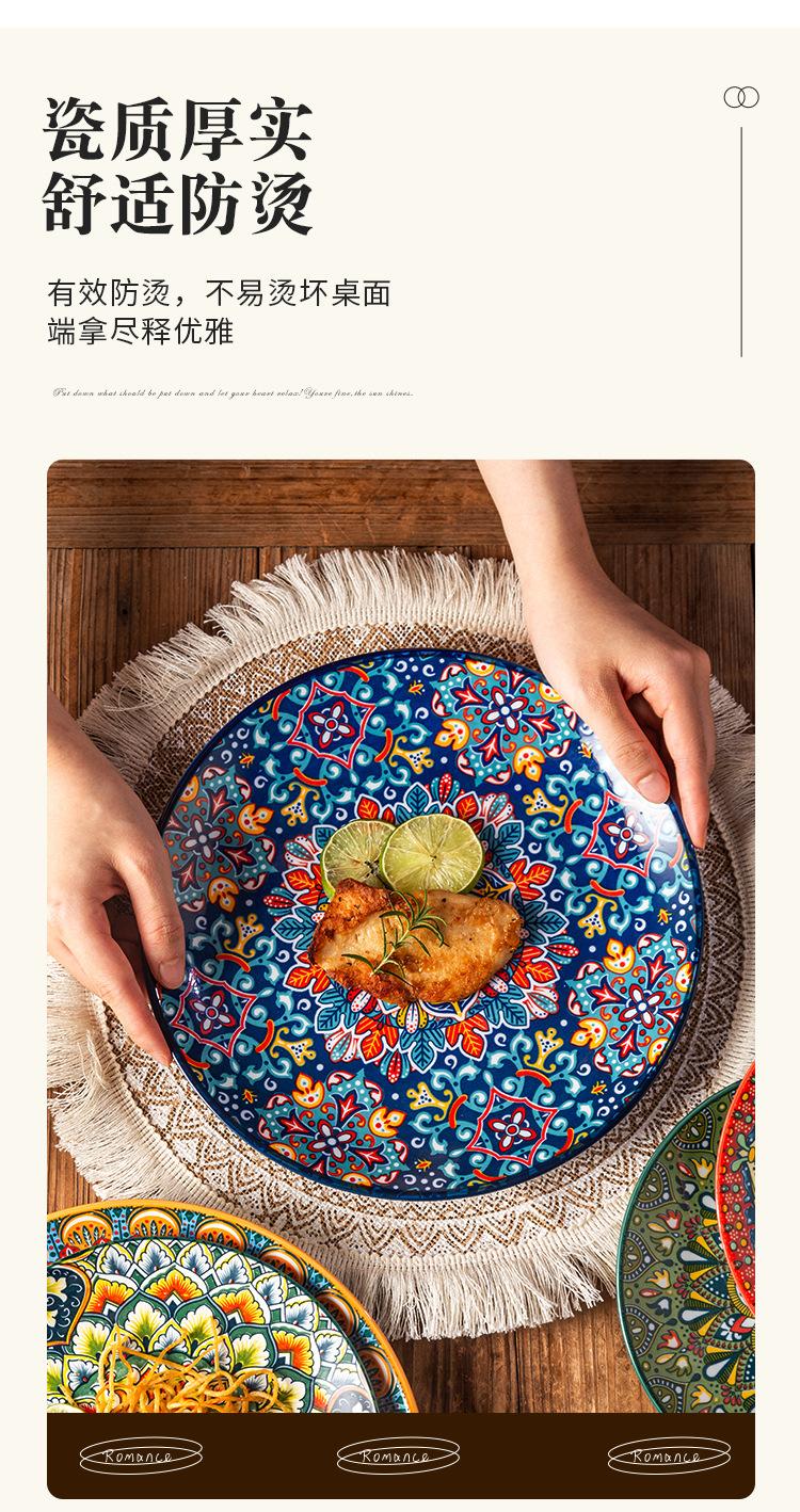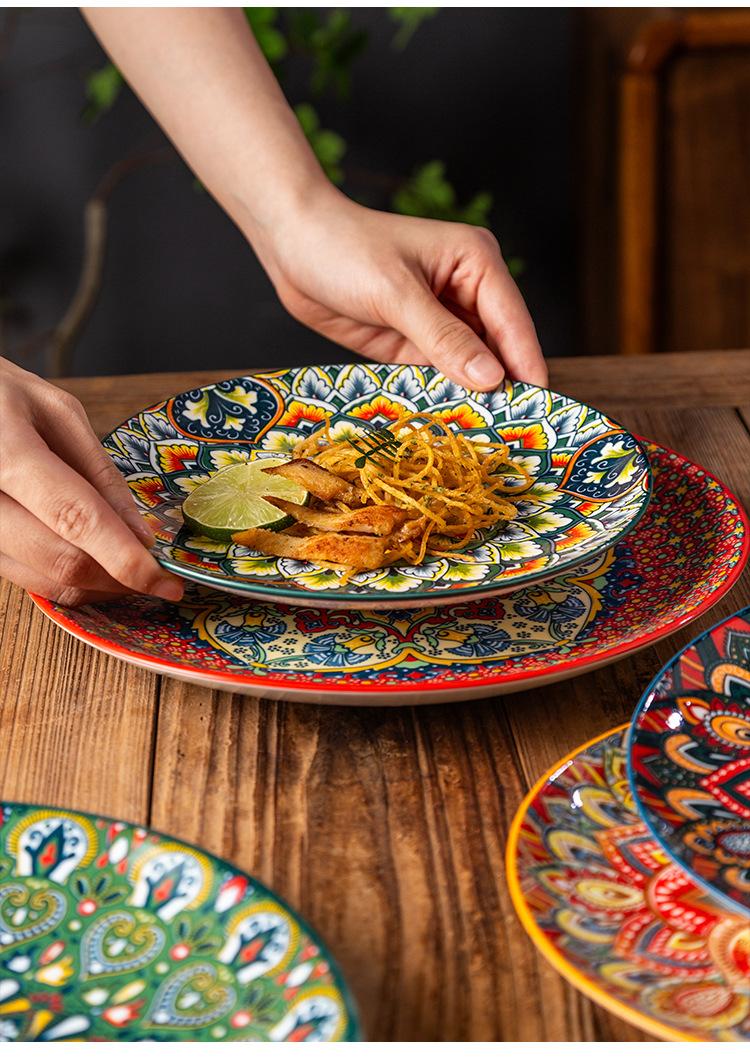 Plato Bohemio de Cerámica Tipo Plato para el Hogar Plato Grande Plato para Comida Occidental Plato para Bistec Plato Hondo Plato Plano Comercial