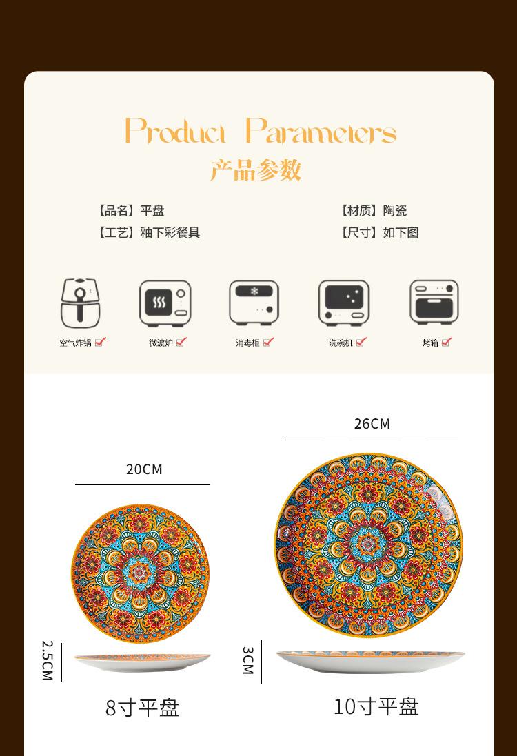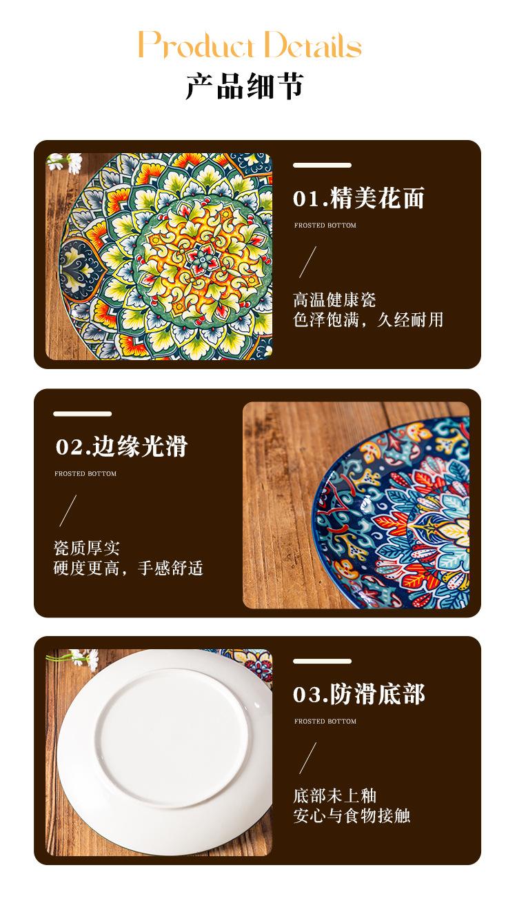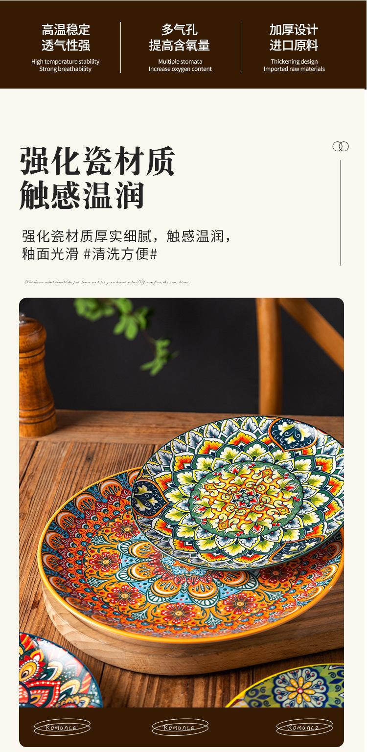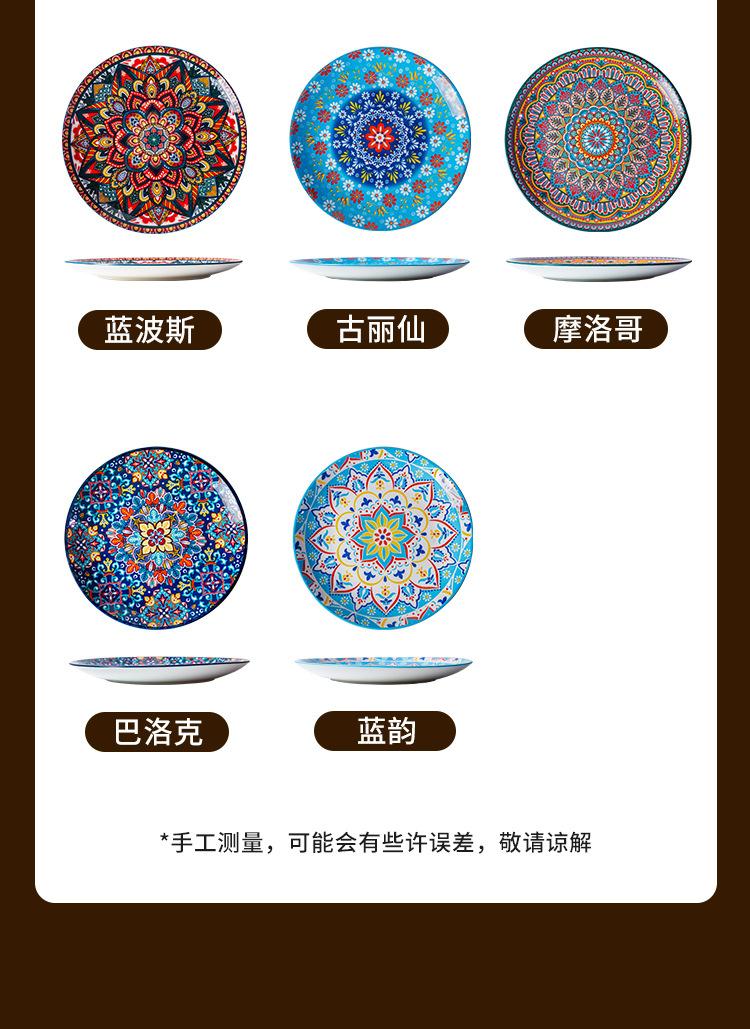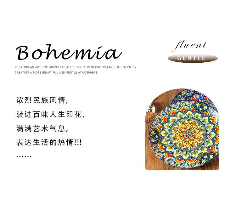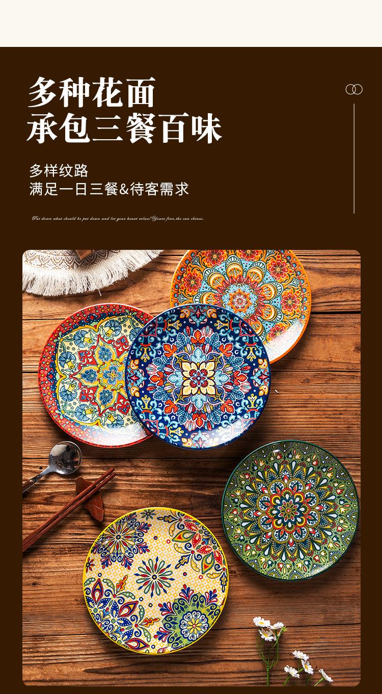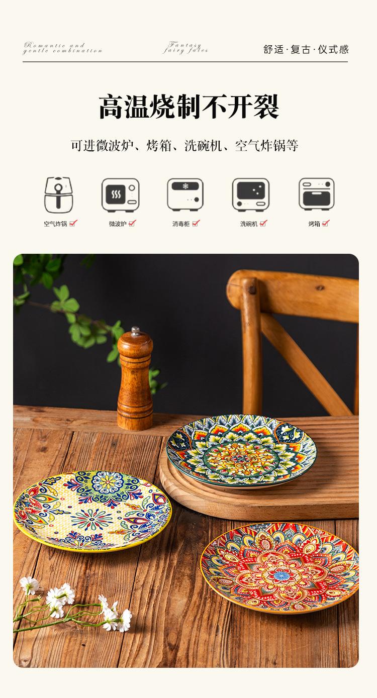 Plato Bohemio de Cerámica Tipo Plato para el Hogar Plato Grande Plato para Comida Occidental Plato para Bistec Plato Hondo Plato Plano Comercial