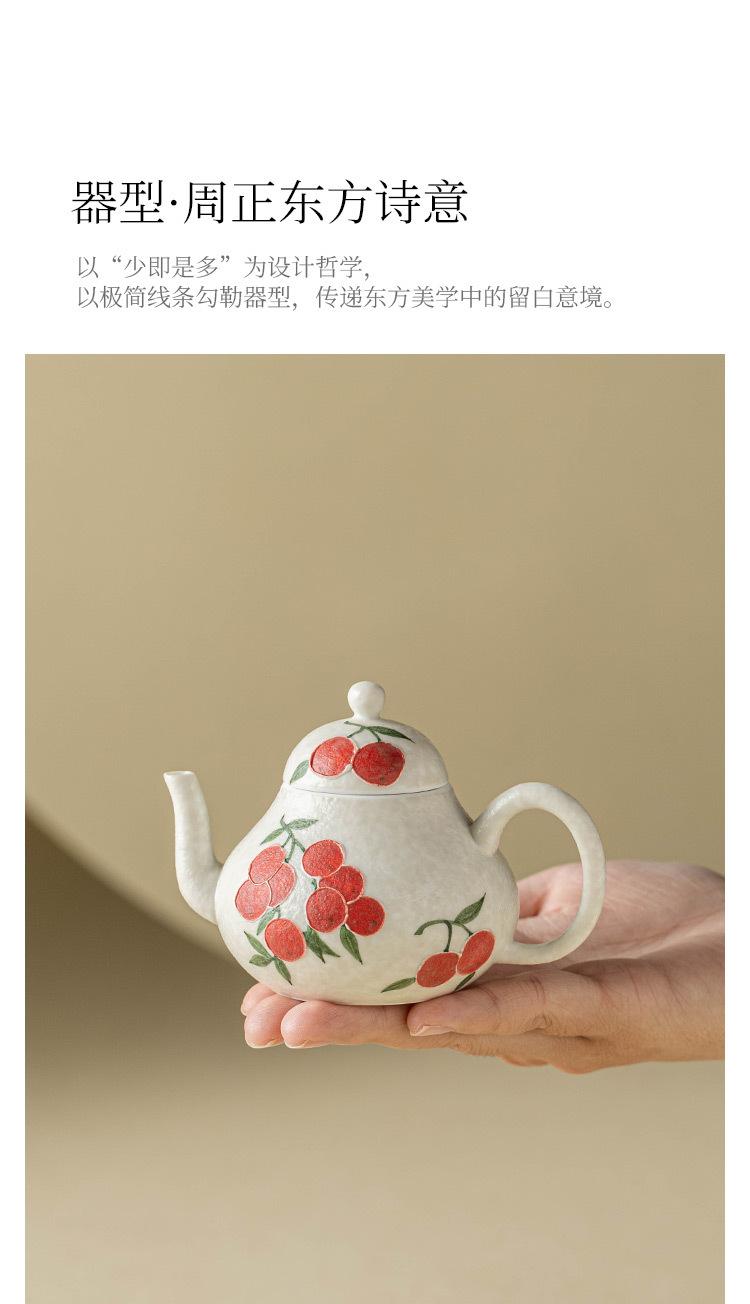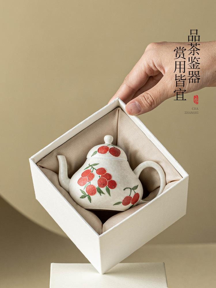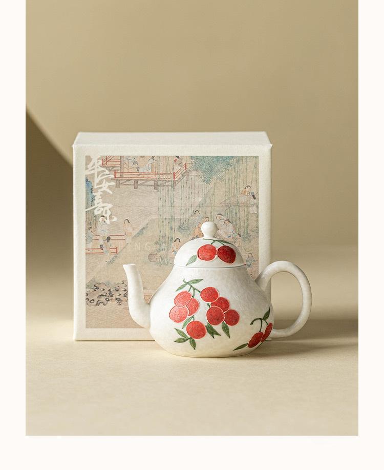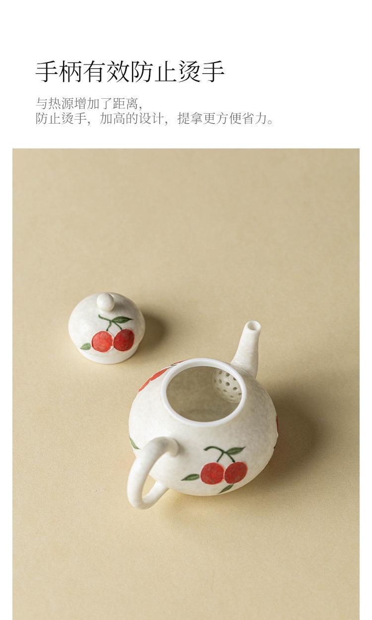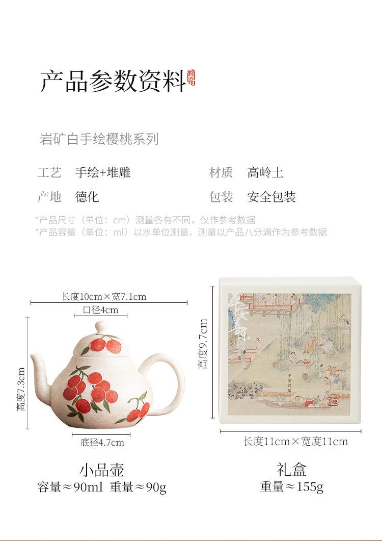 Tetera Blanca Mineral Roca de Fábrica para Hacer Té, Tetera Pequeña para el Hogar, Juego de Té Kung Fu, Tetera de una Sola Olla Cerezo Pintada a Mano para Hacer Té