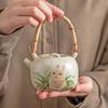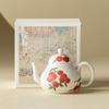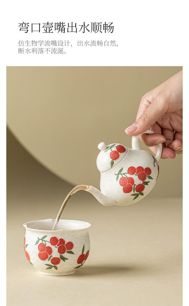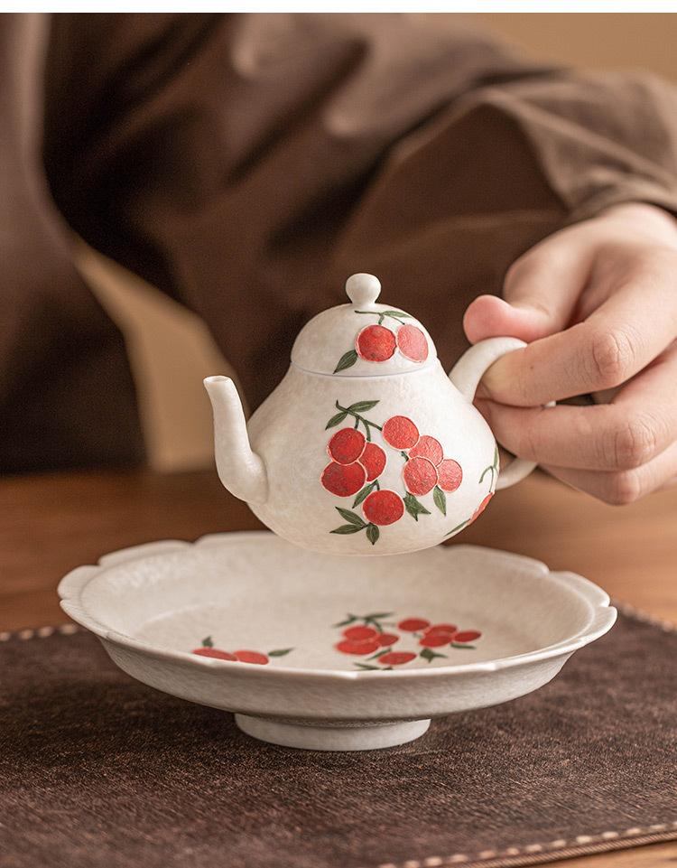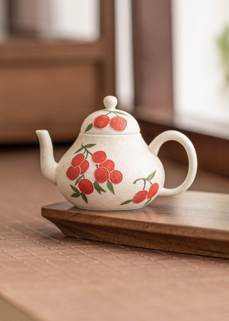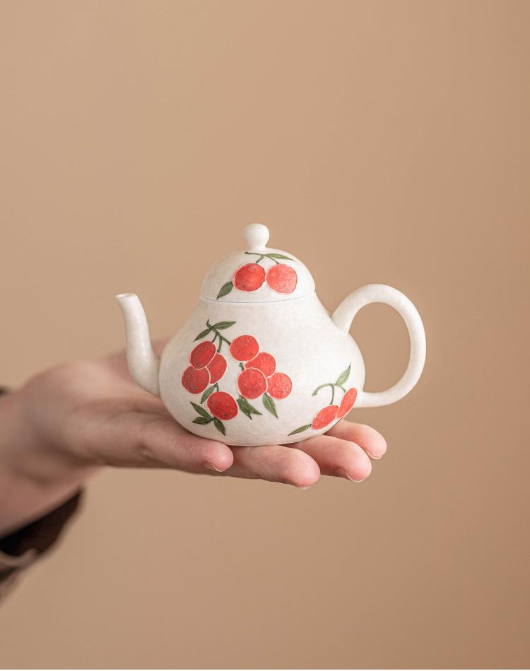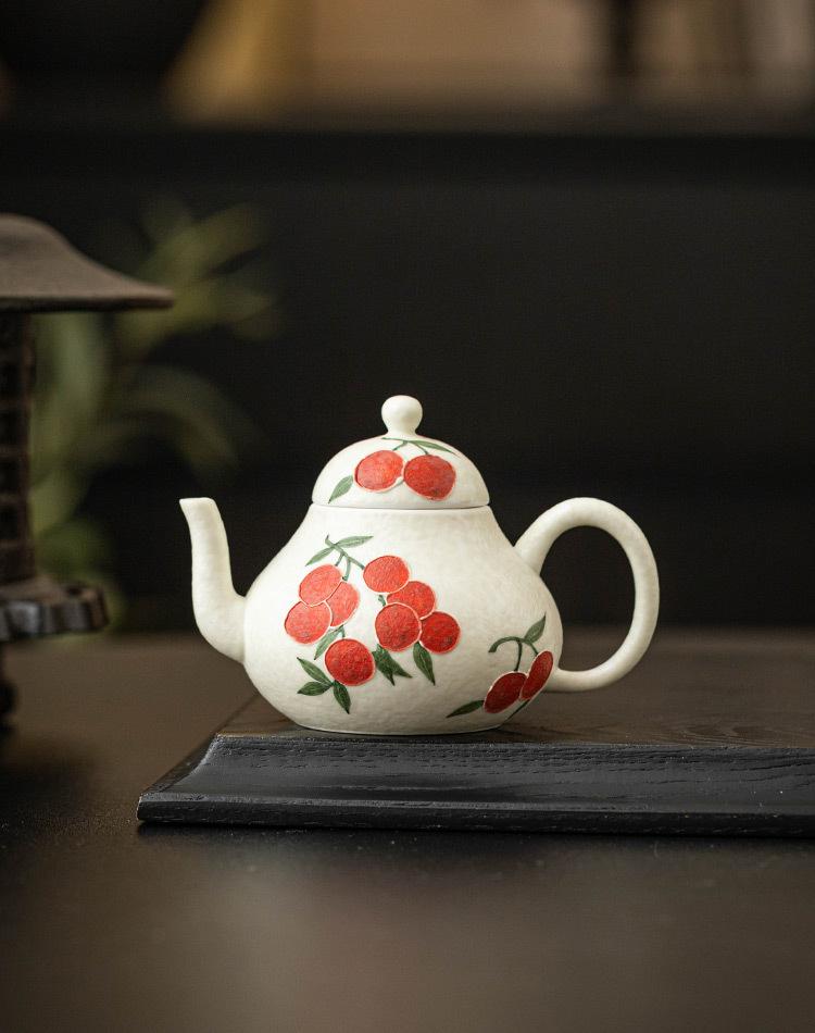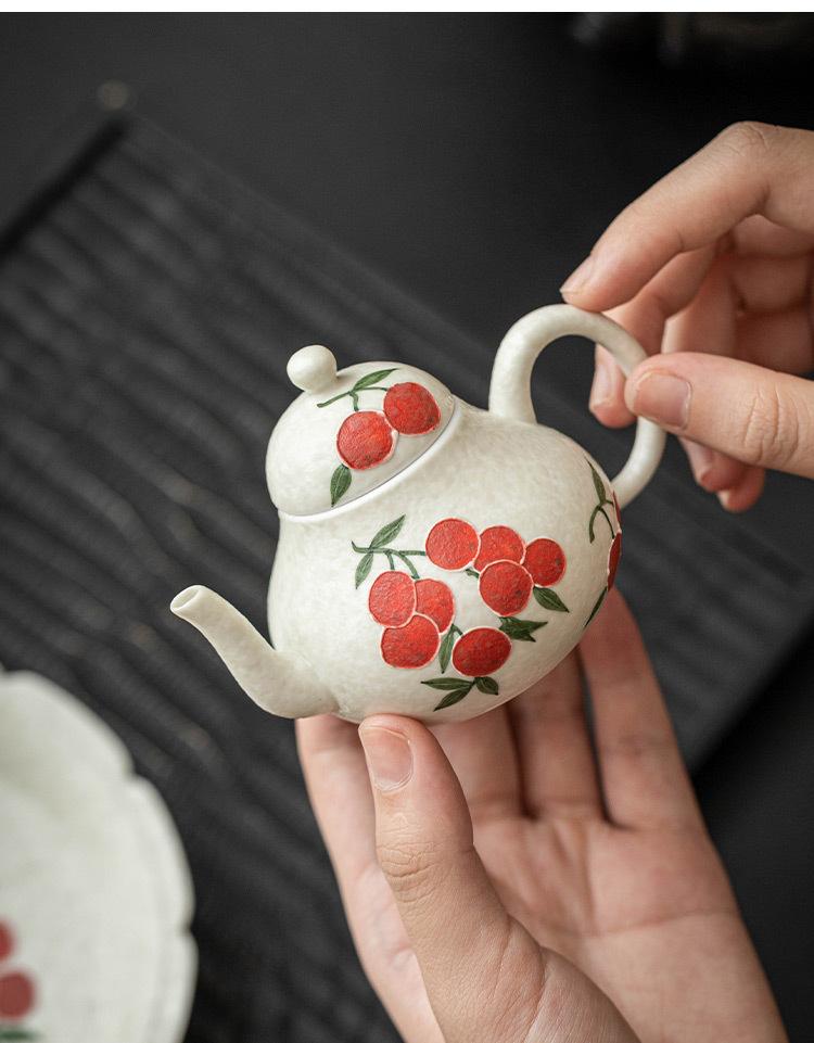 Tetera Blanca Mineral Roca de Fábrica para Hacer Té, Tetera Pequeña para el Hogar, Juego de Té Kung Fu, Tetera de una Sola Olla Cerezo Pintada a Mano para Hacer Té