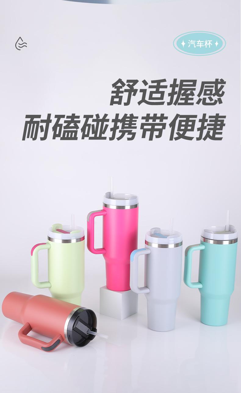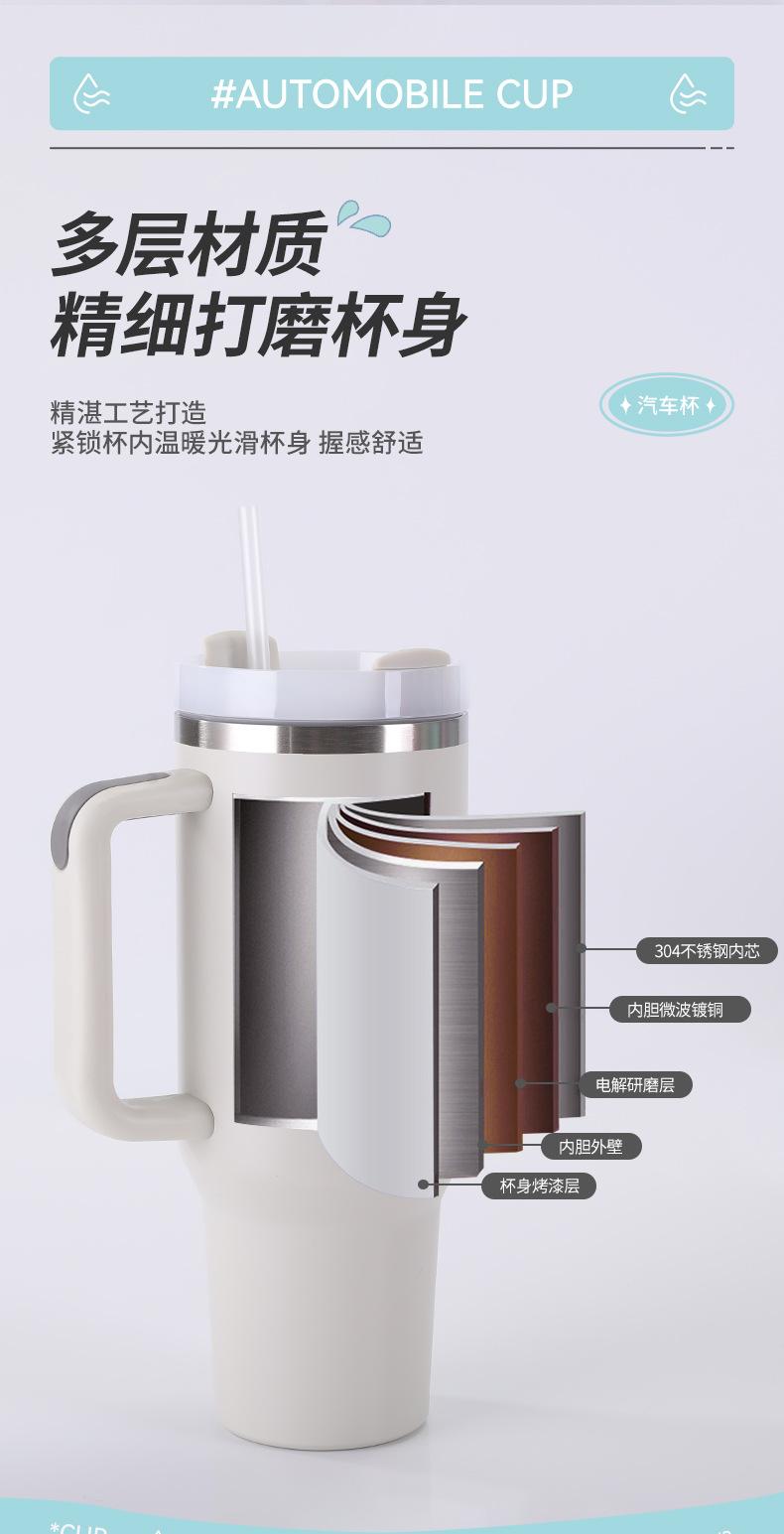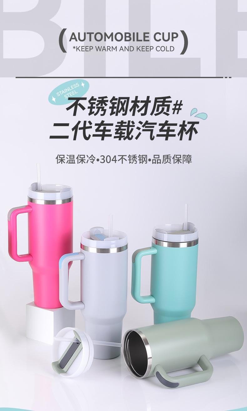 Vaso para coche de segunda generación de 40 oz con asa transfronterizo, taza termo al vacío de acero inoxidable 304, vaso para hielo con popote Big Mac