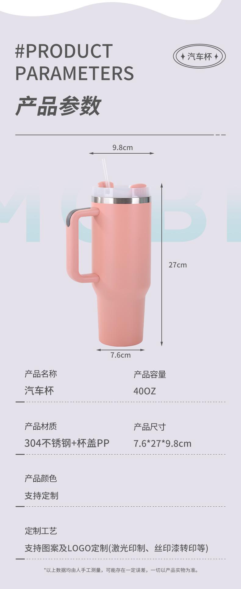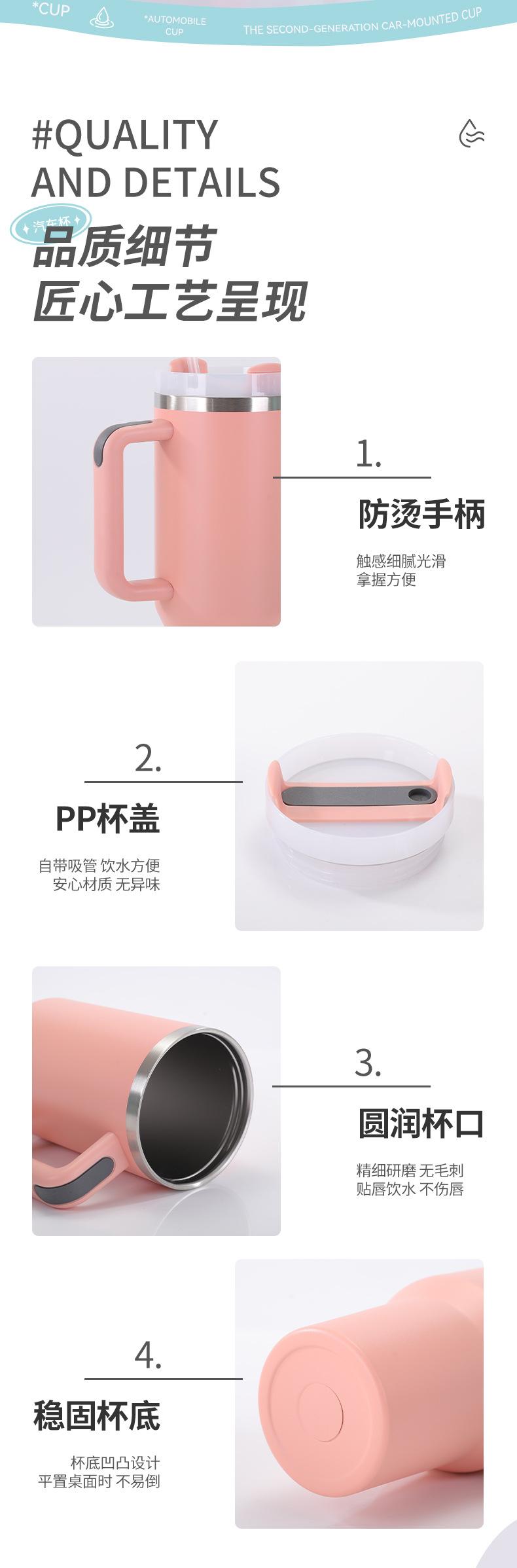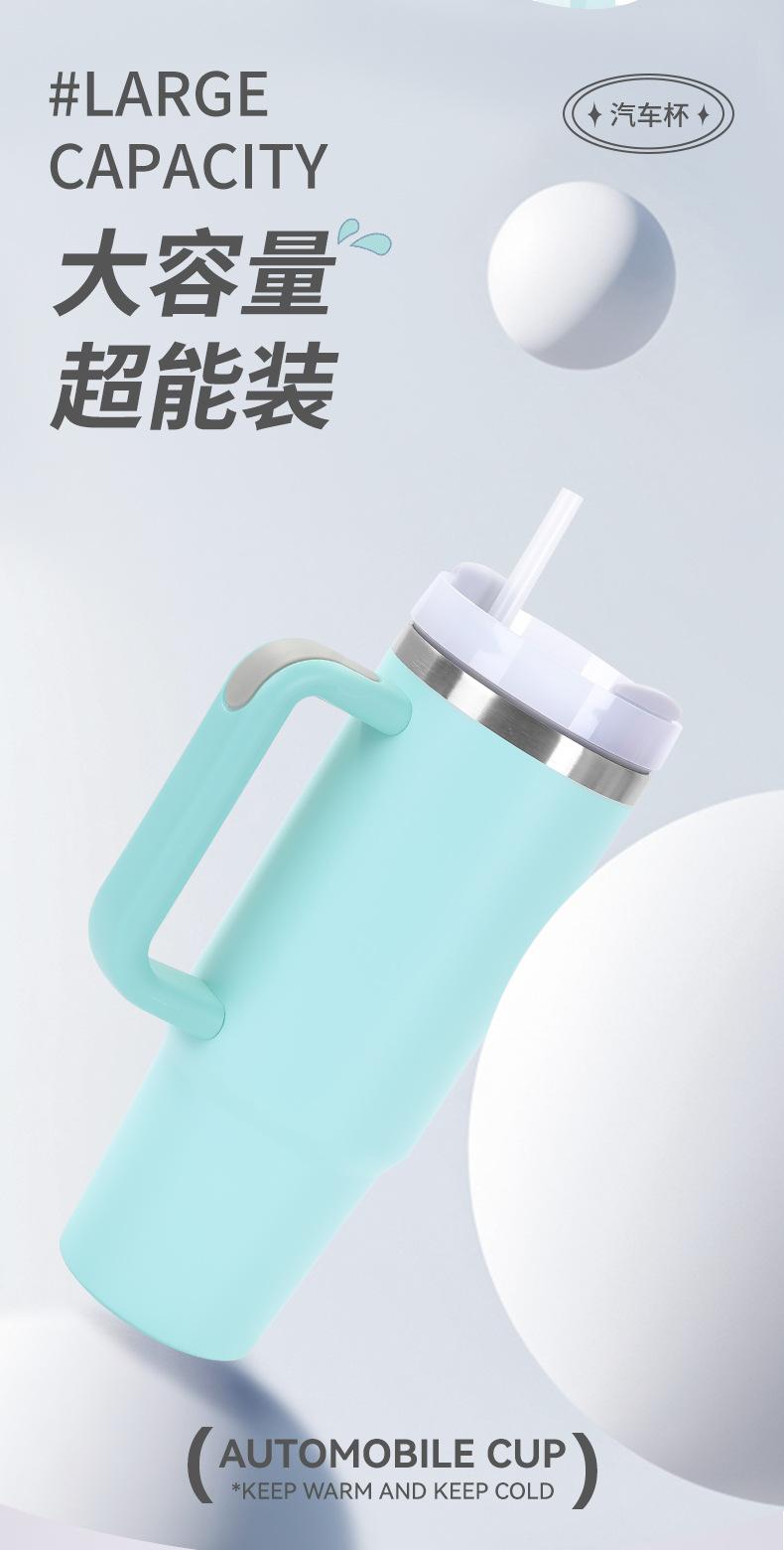 Vaso para coche de segunda generación de 40 oz con asa transfronterizo, taza termo al vacío de acero inoxidable 304, vaso para hielo con popote Big Mac