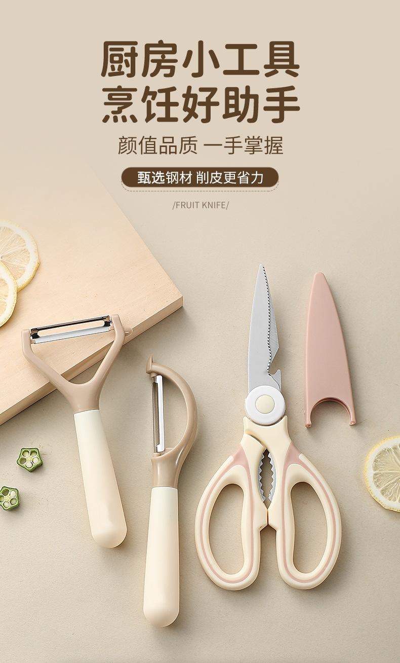 Mika (horizontal + vertical) paring knife + mika panda scissors [three-piece set], Mika vertical paring knife ...