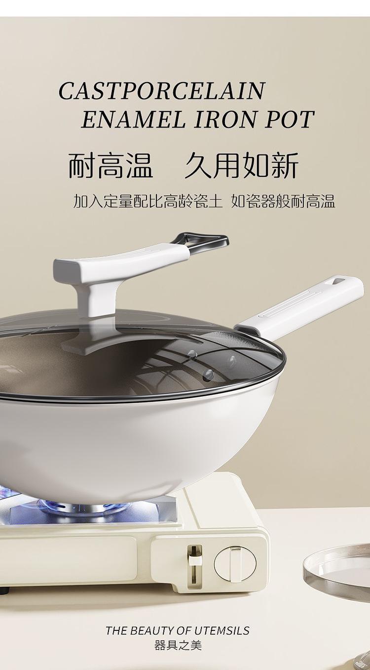 30-milk white wok, 30-milk white wok + tempered lid + silicone spatula + sponge wipe, 32-milk white wok + sili...