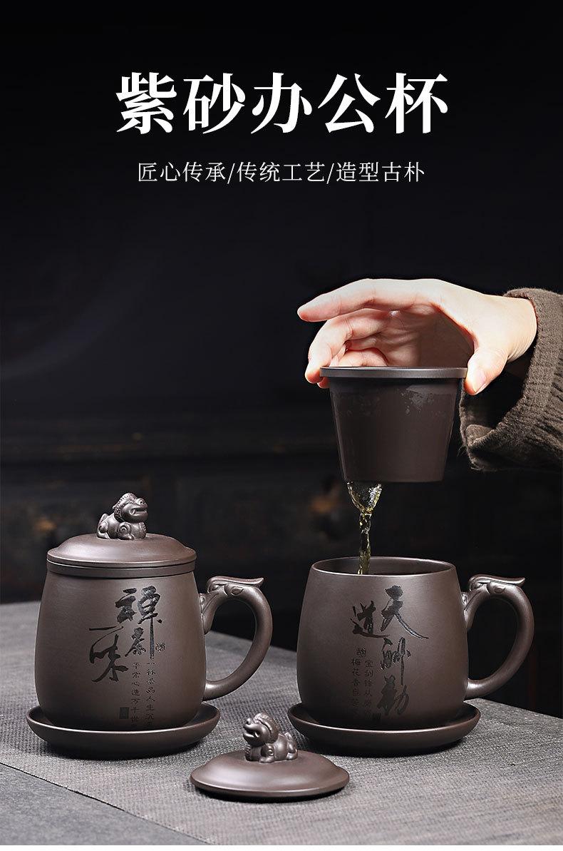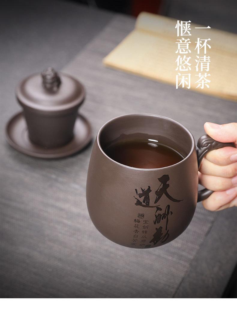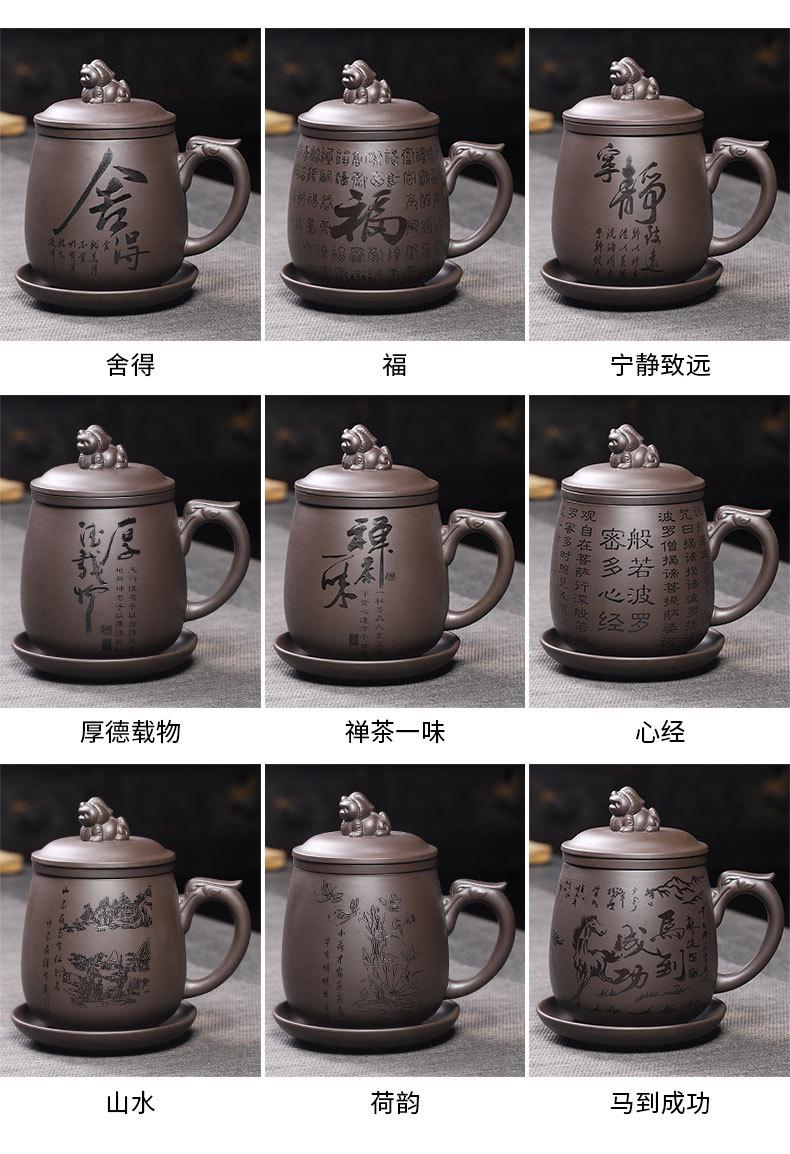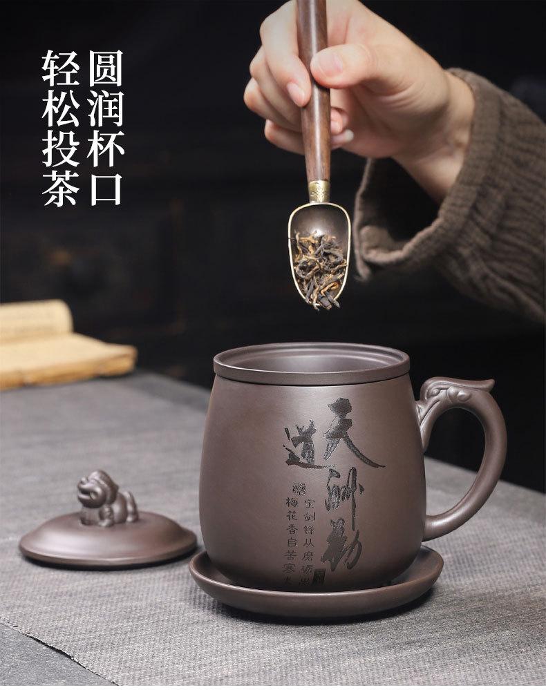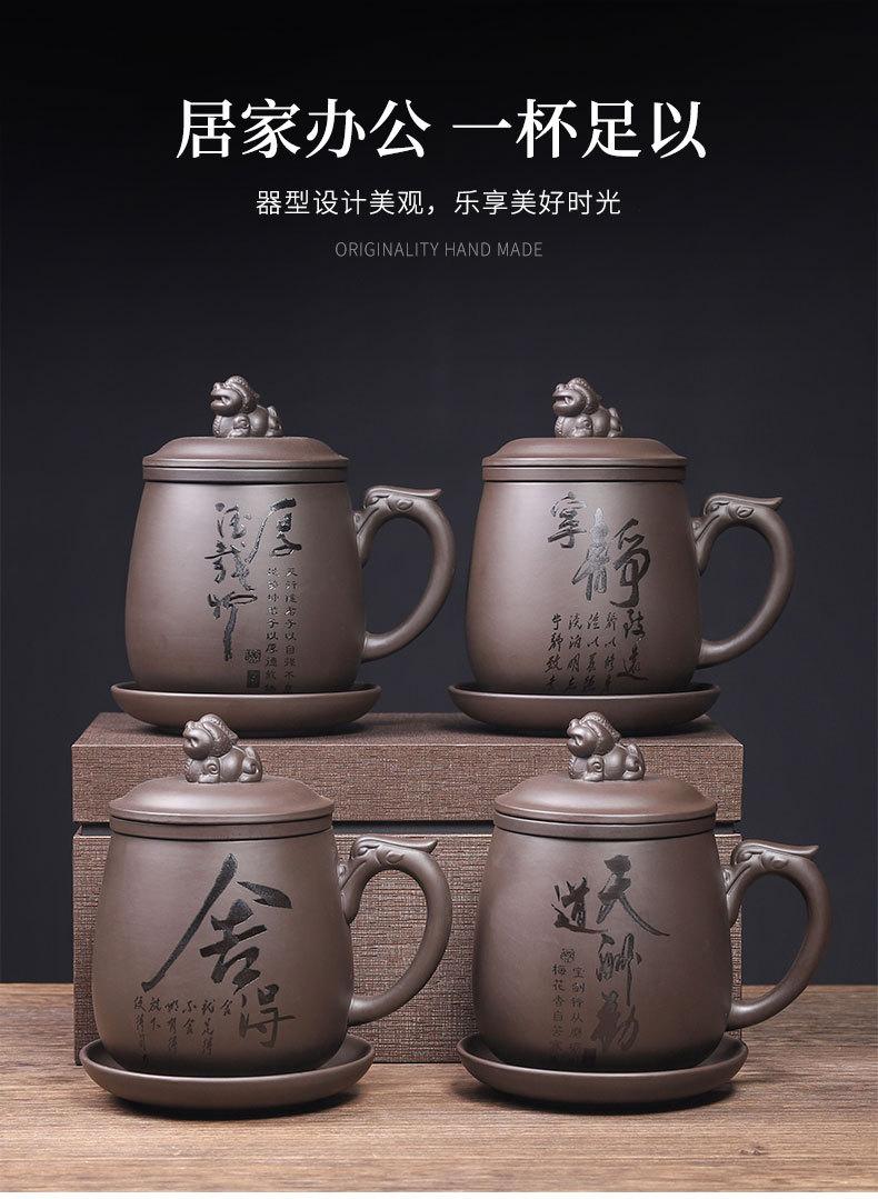 Taza de agua de oficina Zisha de gran capacidad para hombres, taza de oficina, taza de té con tapa, taza personal, grabado de personalidad