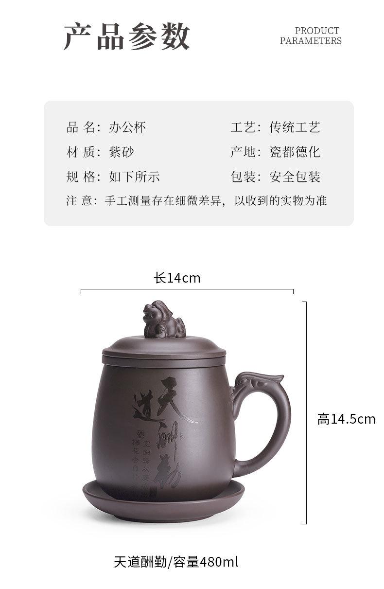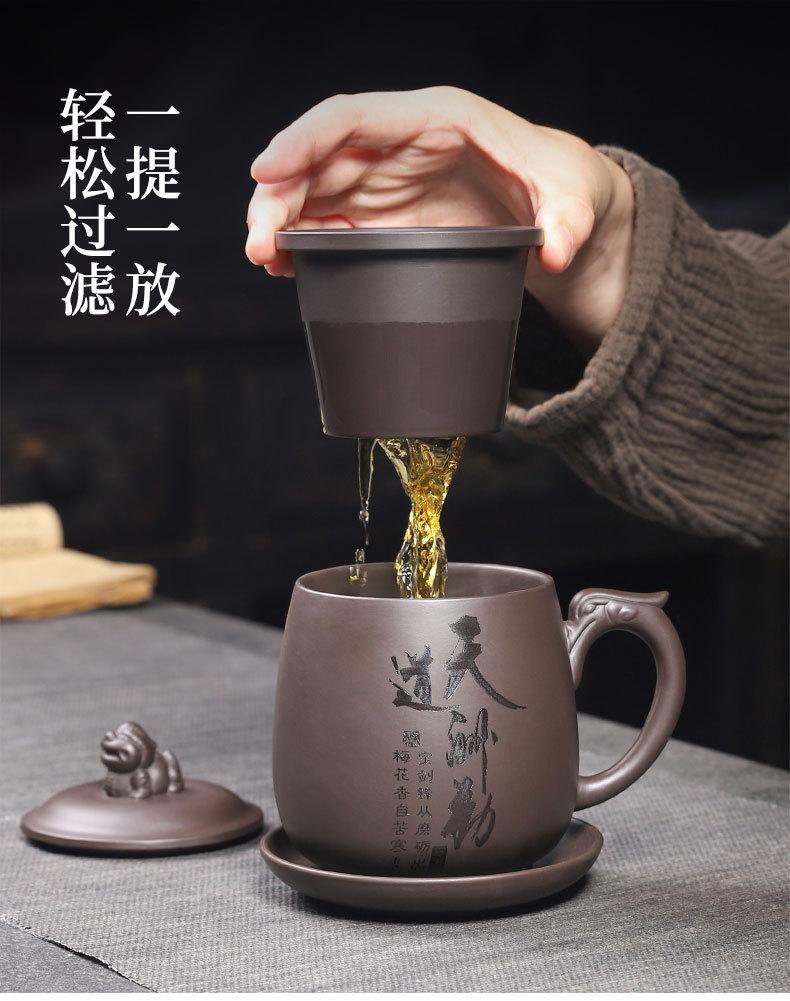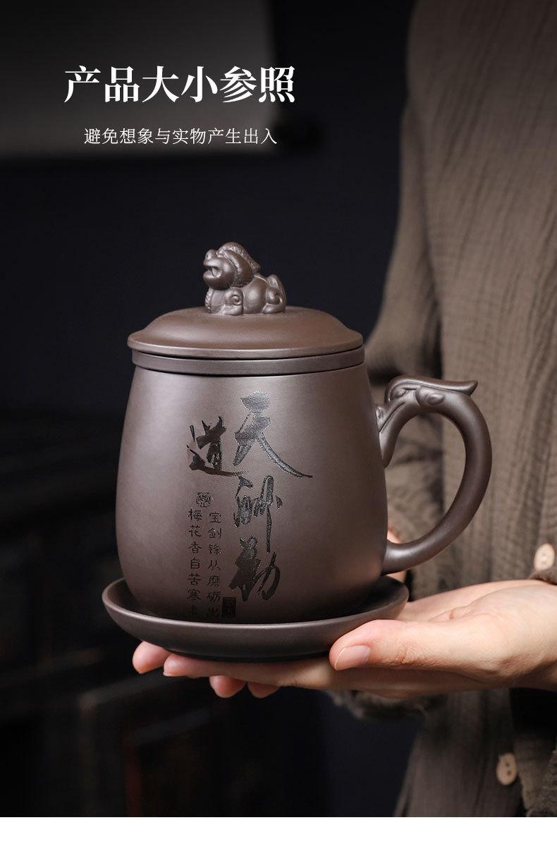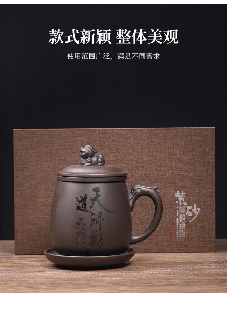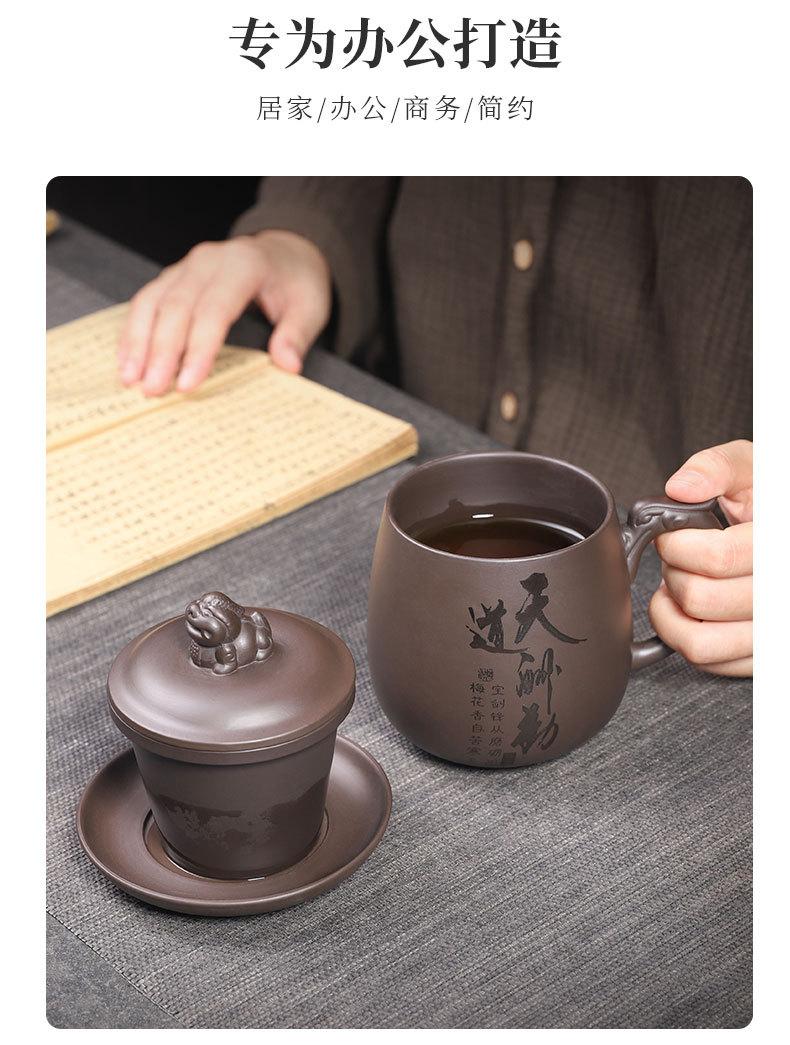 Taza de agua de oficina Zisha de gran capacidad para hombres, taza de oficina, taza de té con tapa, taza personal, grabado de personalidad