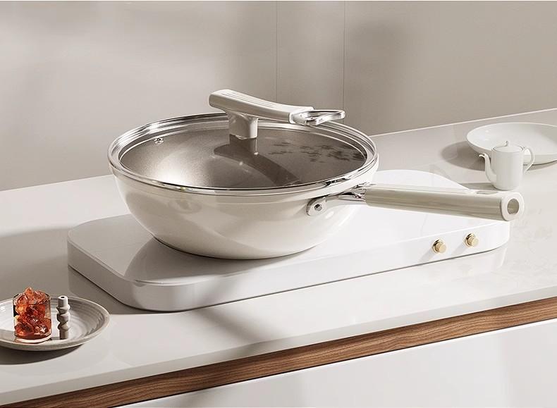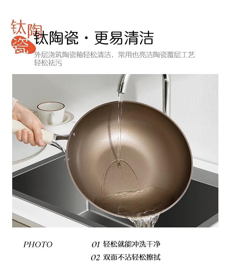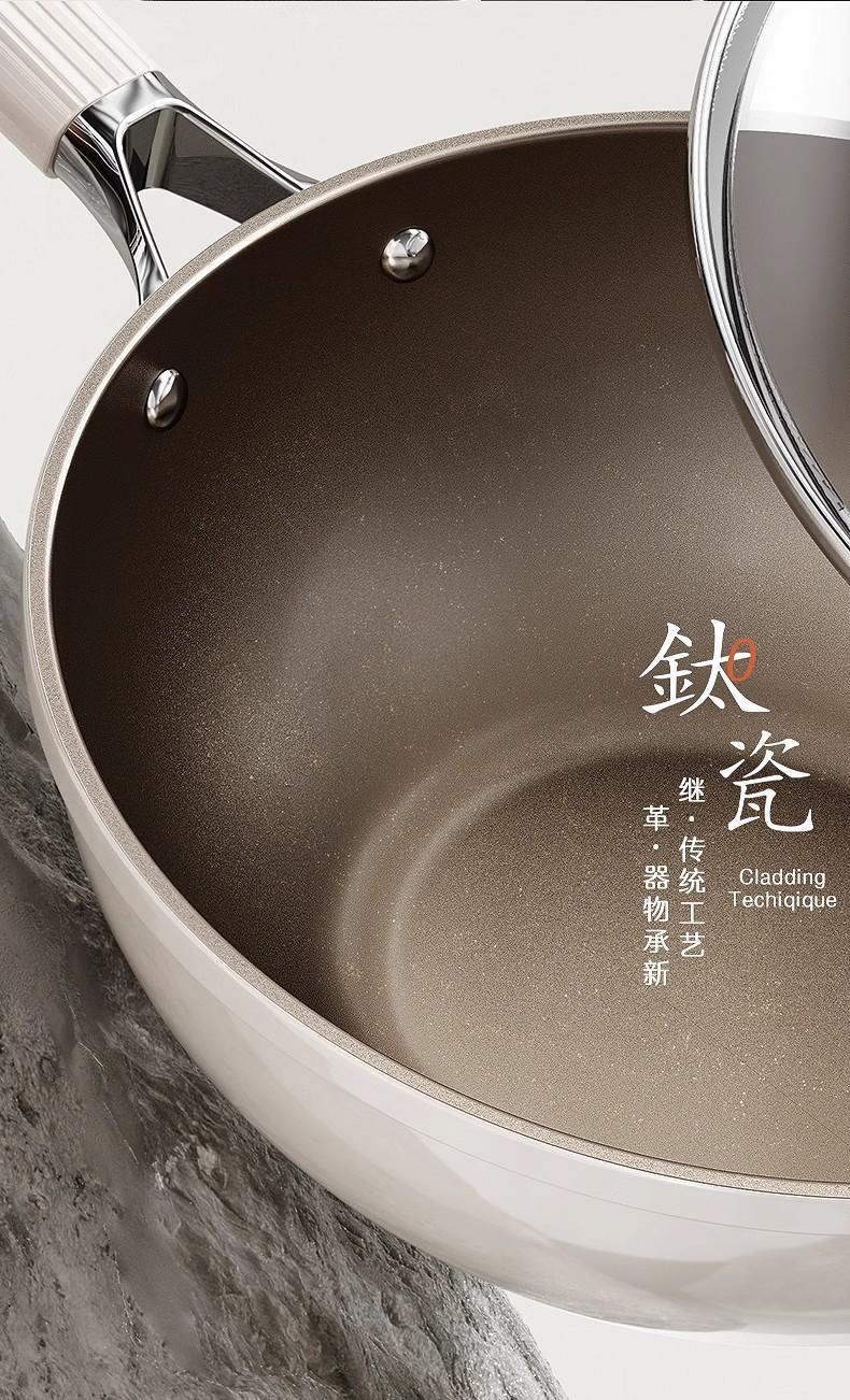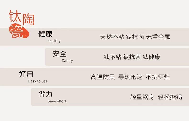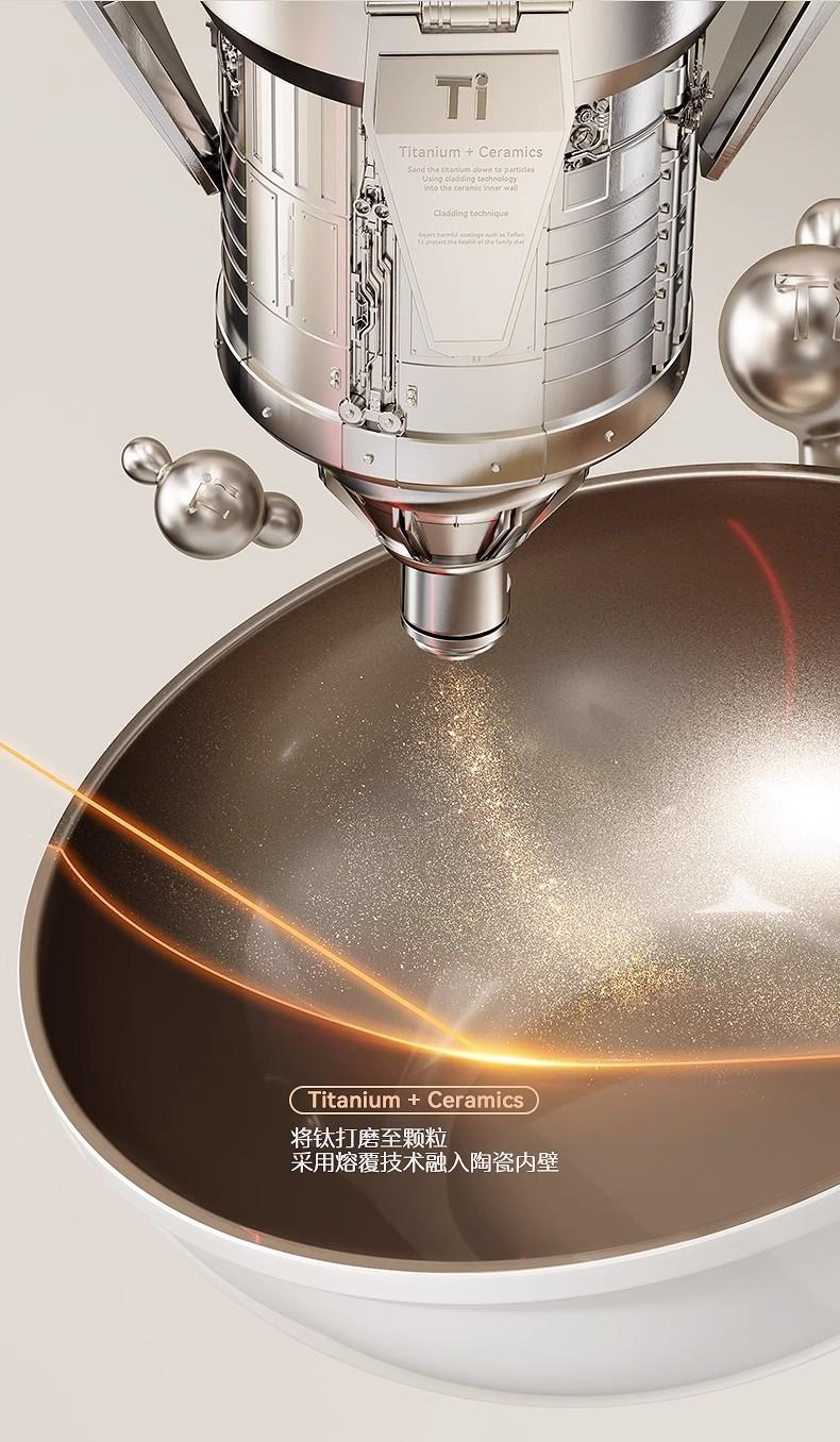 El cuerpo de la olla está engrosado, con cerámica inorgánica de titanio por dentro y por fuera, resistente al raspado y al desgaste.