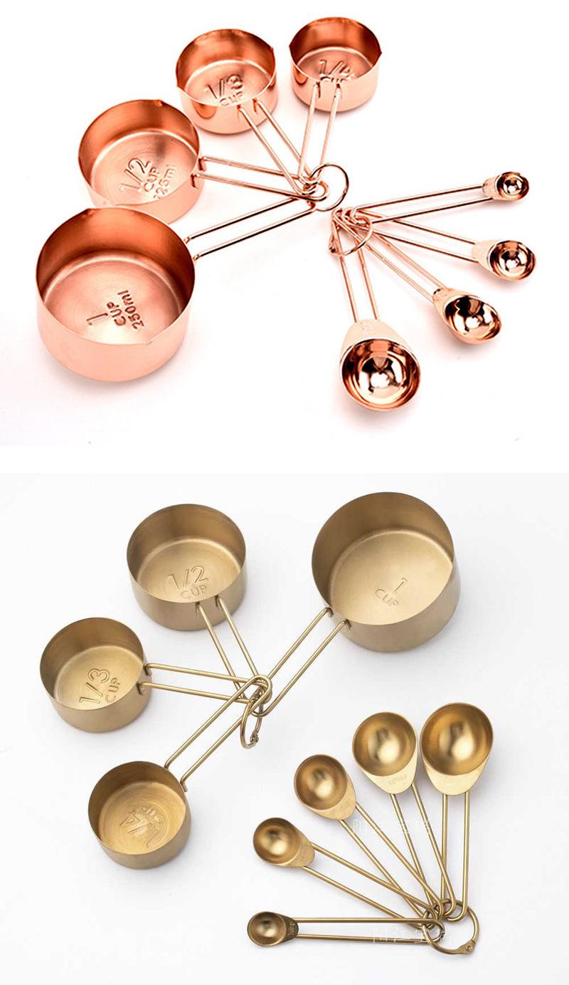 Juego de Cuatro Piezas Escandinavo Ins Cuchara Medidora Oro Rosa Taza Medidora Juego de 4 Piezas Cuchara Medidora Latón Cuchara Medidora Acero Inoxidable Cuchara Medidora Cobre Chapado