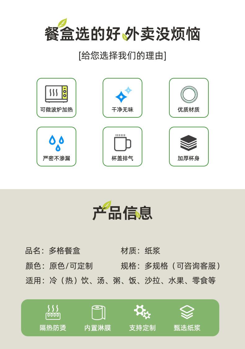 Six-compartment 1400ml lunch box without lid, Six-compartment 1400ml lunch box + paper lid, Three-compartment ...