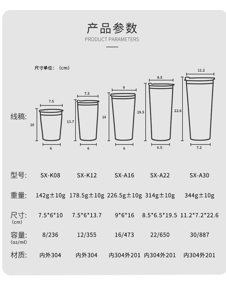 4) Suministro suficiente: el modelo de taza, la capacidad, las especificaciones, etc. son claros a simple vista y hay una variedad de estilos de empaque para que elija para satisfacer sus diferentes necesidades.