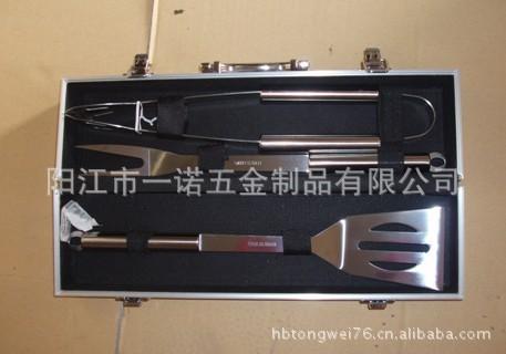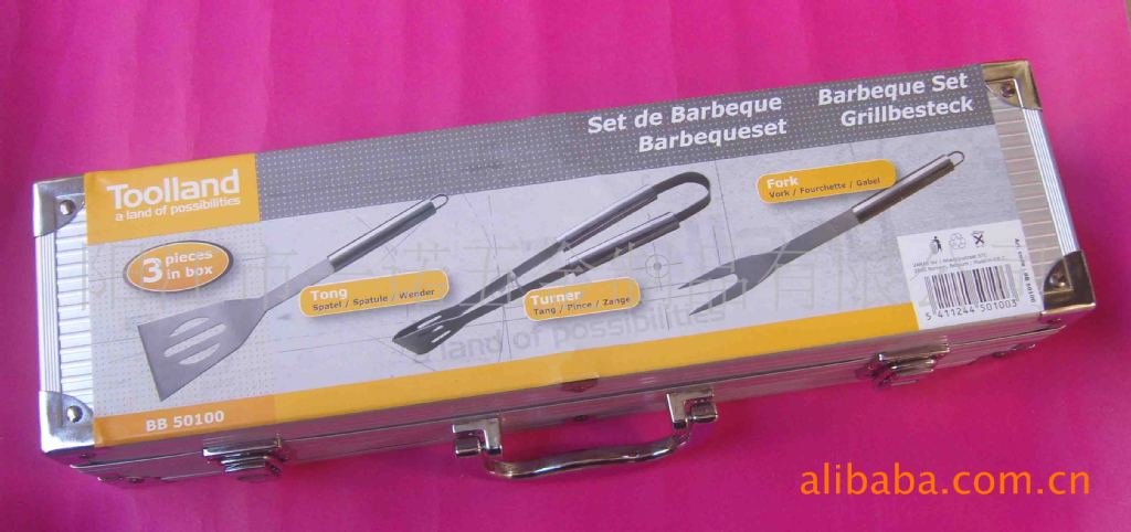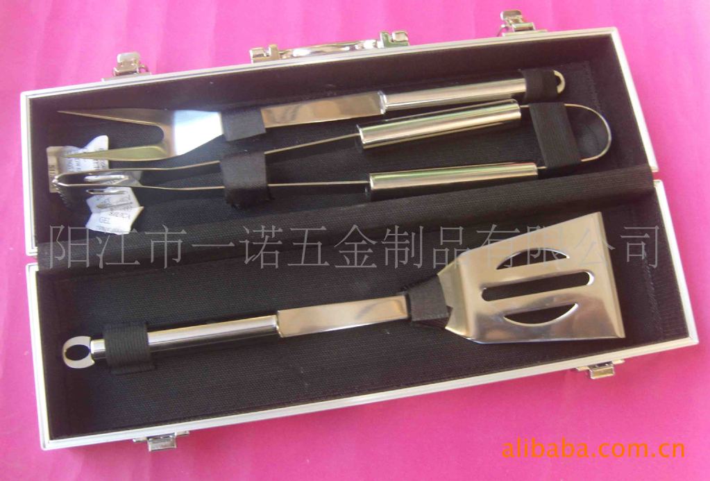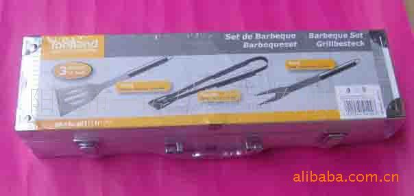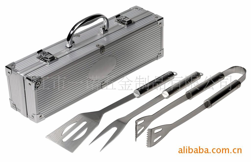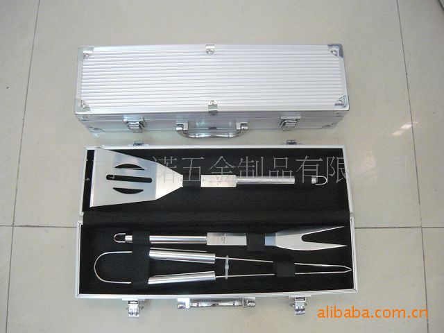 3juego de piezas herramientas para barbacoa de acero inoxidable, en estuche de aluminio, incluyendo: