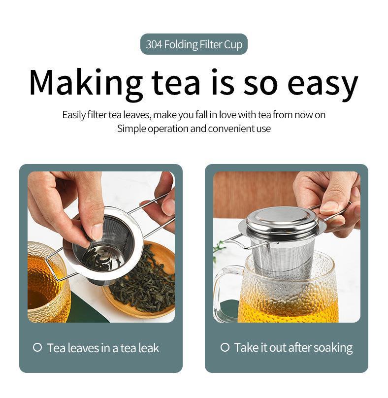 Compra Amazon 304 Compartimento para Té Cafetera Acero Inoxidable Filtro de Té Accesorios para Juego de Té con Tapa Colador de Té Plegable al por mayor en Joom.pro