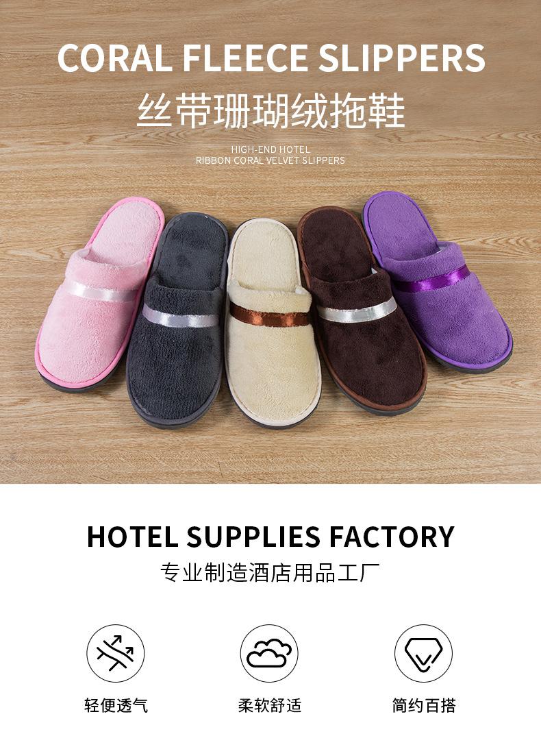 Zapatillas de Hospitalidad Desechables Star Hotel B&B Salón de Belleza Venta al por Mayor Terciopelo Coral Lavables Antideslizantes Espesor